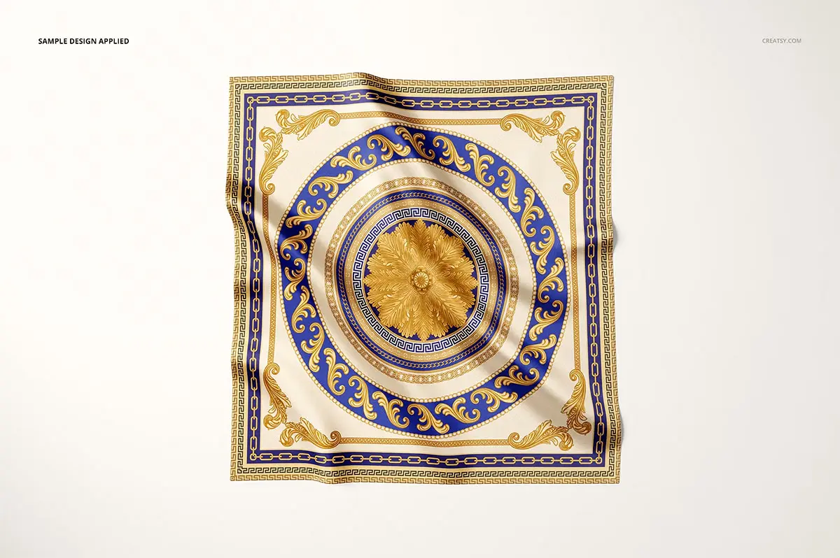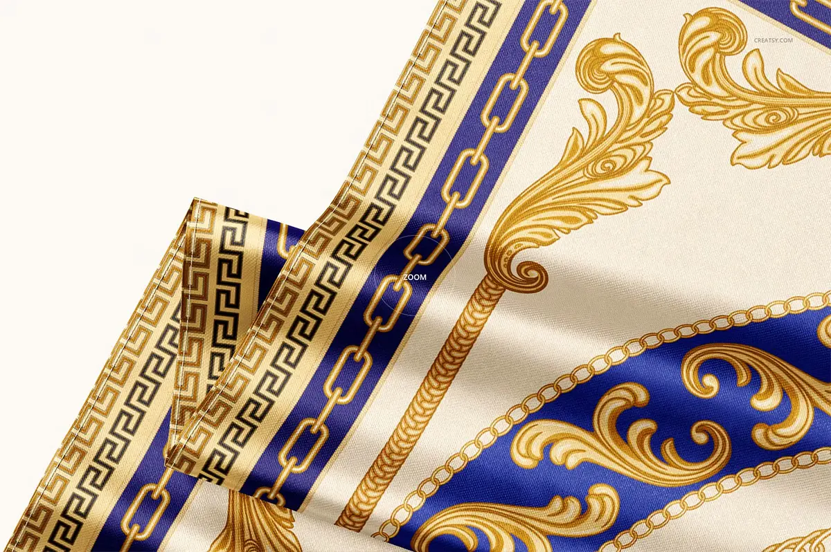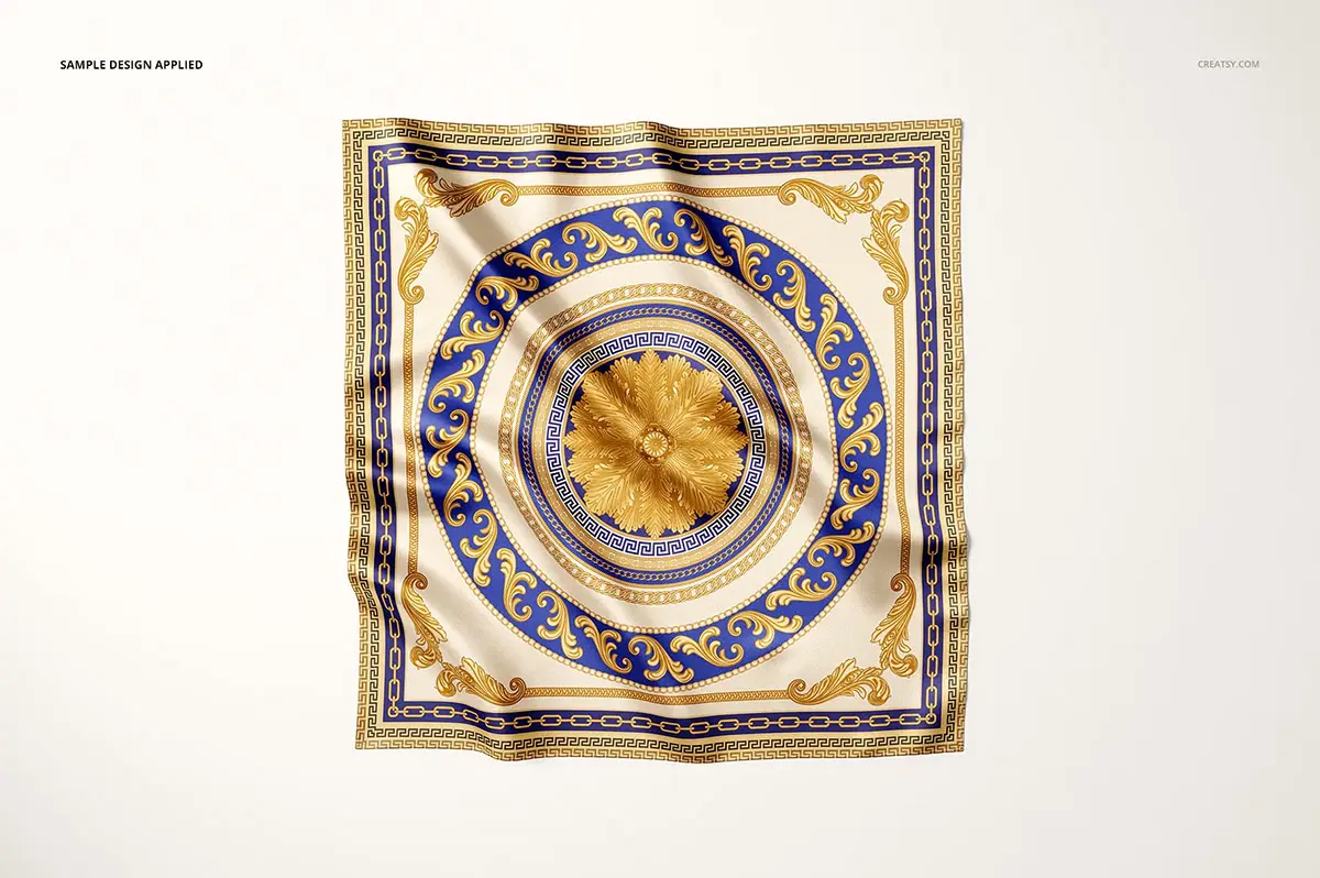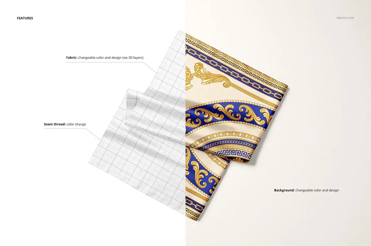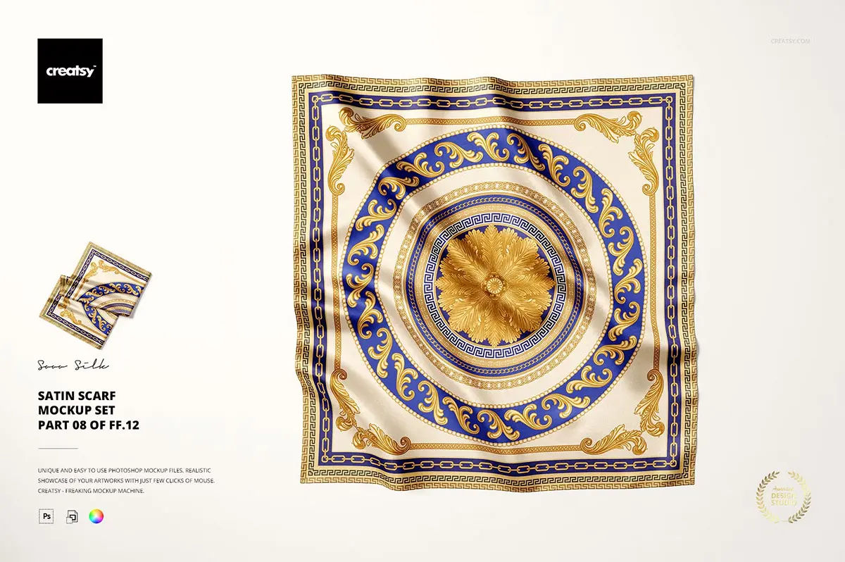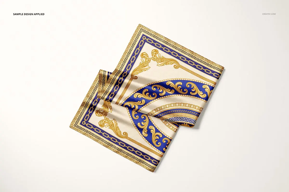 Satin Scarf Mockup Set 3款真丝围巾披肩头巾丝绸面料丝巾ps样机素材印花图案展示效果图