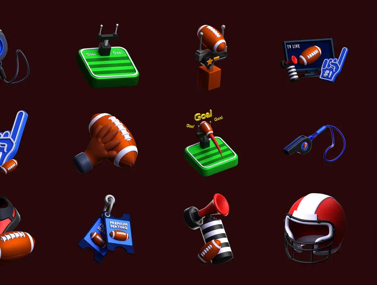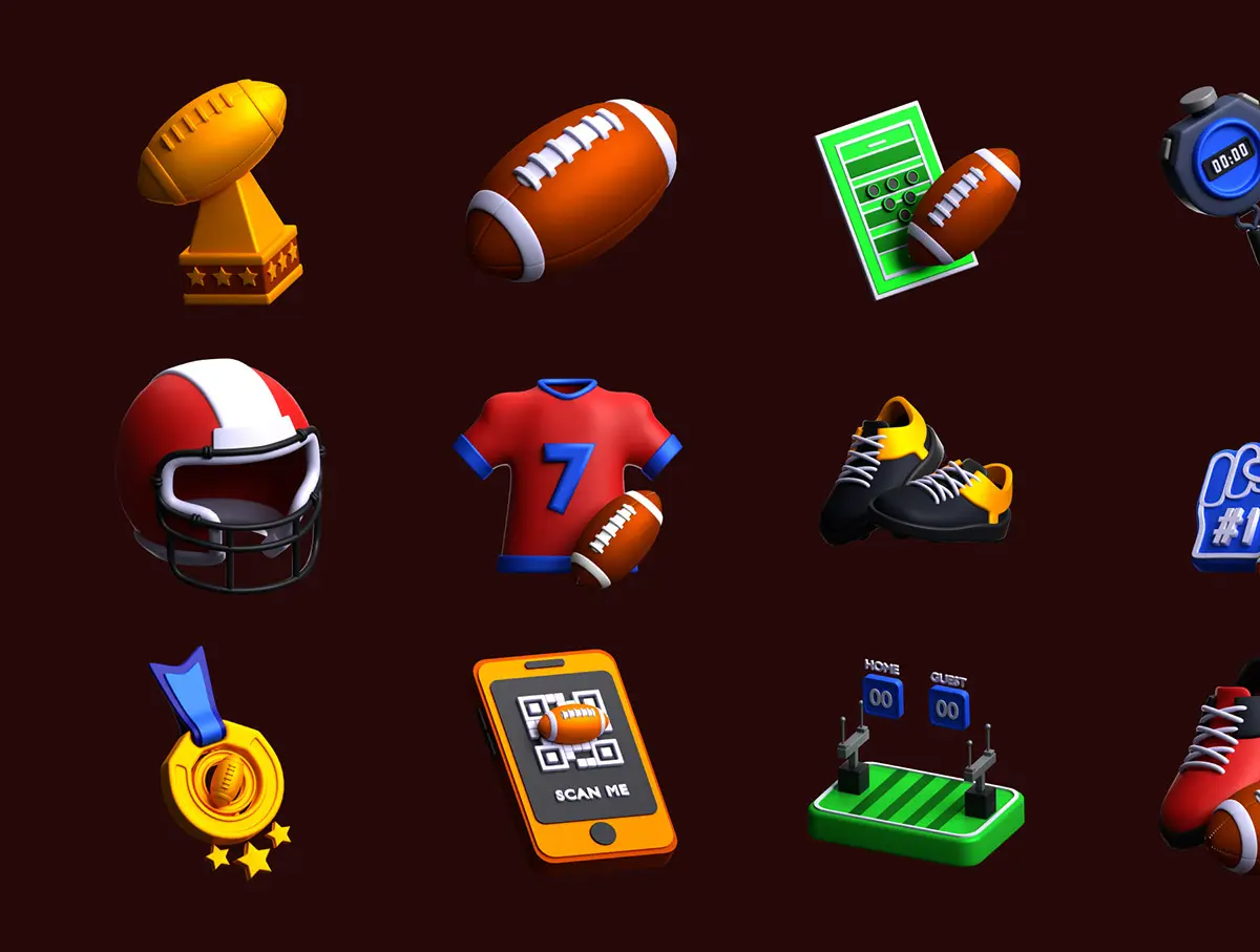 American Football 3D Icon Pack 20款美式足球橄榄球运动元素3D图标icon设计素材webp免抠图片