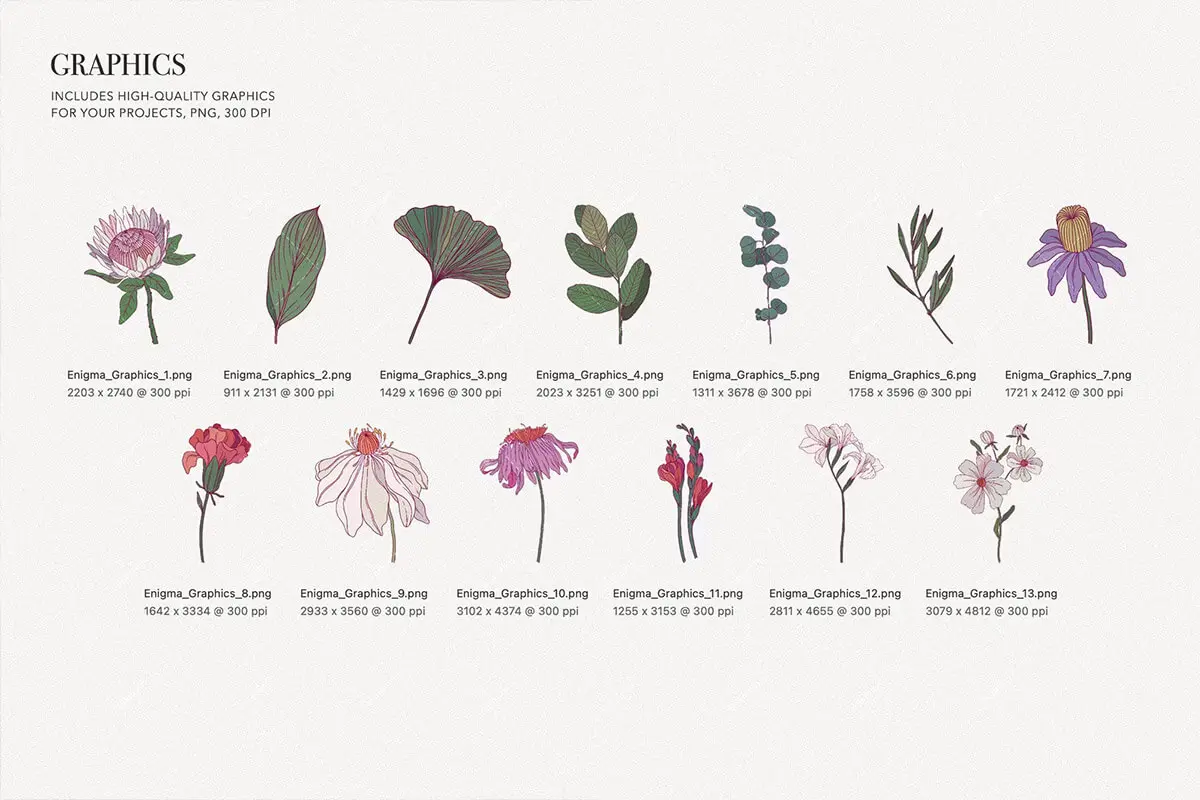 Enigma. Floral Pattern and Graphics 复古优雅神秘手绘植物花卉鲜花插图插画图案设计webp免抠图片素材