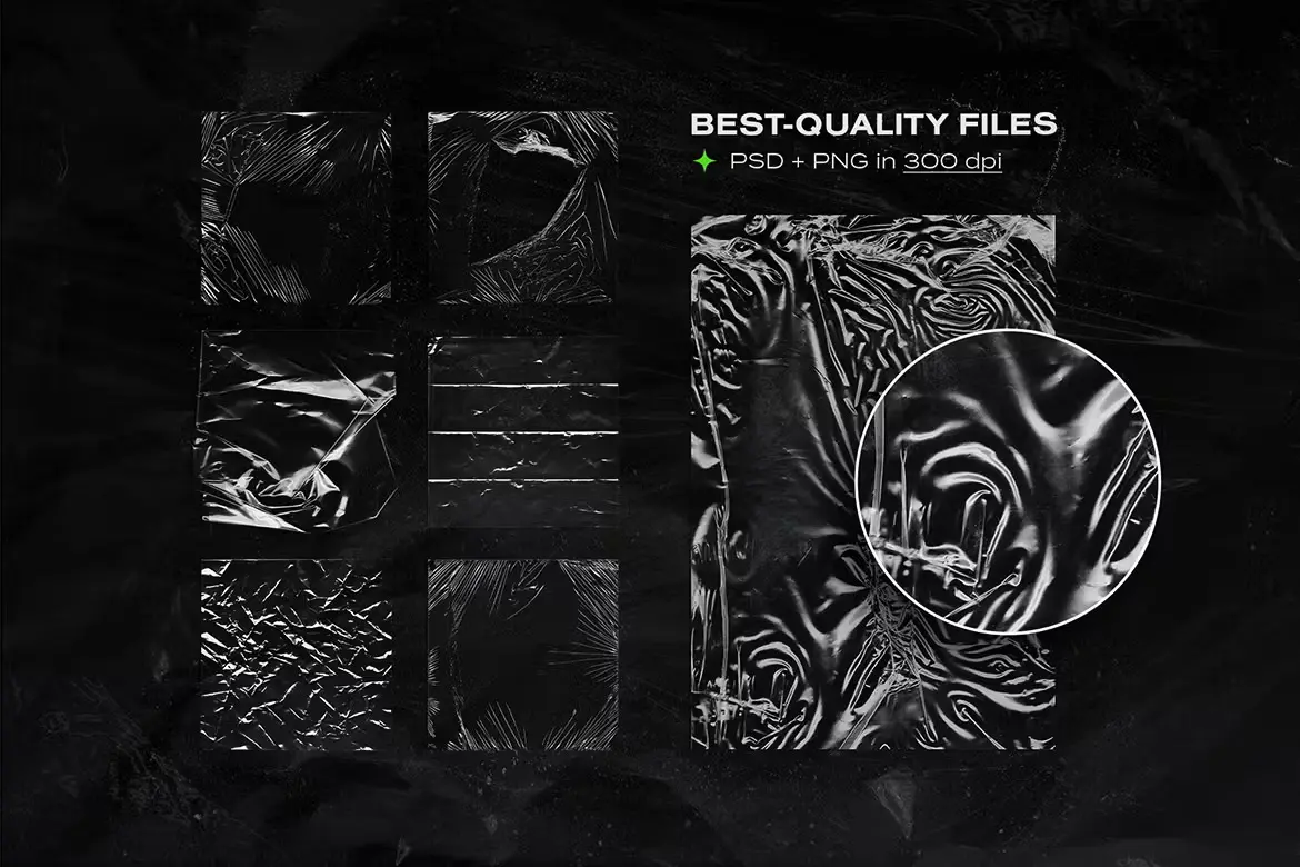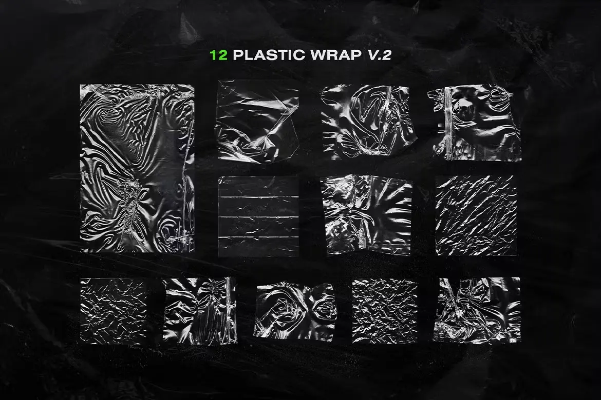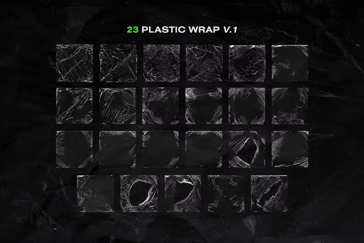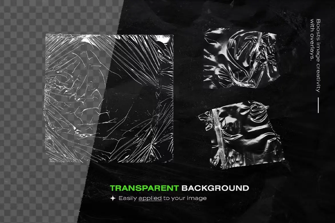 Plastic Wrap Overlay Textures Pack 35款透明复古塑料薄膜包装纸做旧褶皱肌理webp免抠背景图片素材