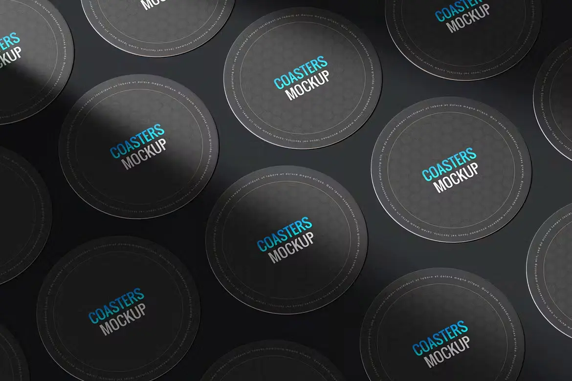 Paper Beverage Coaster Mockup 纸质圆形杯垫木盒模型品牌logo标识设计贴图ps样机素材