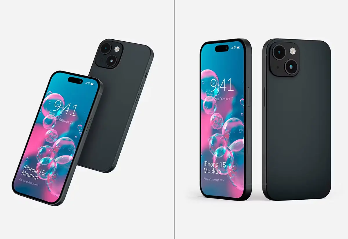 iPhone 15 Mockup Set 苹果15手机模型品牌展示设计贴图ps样机素材