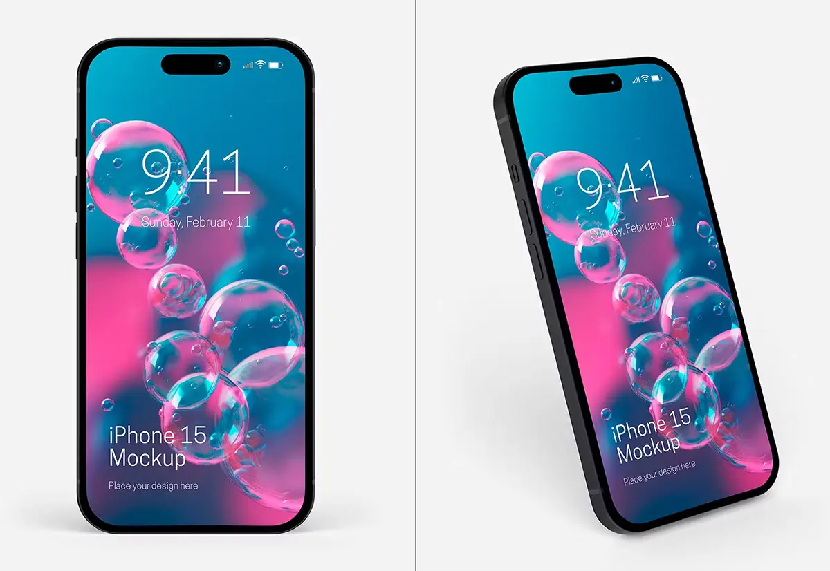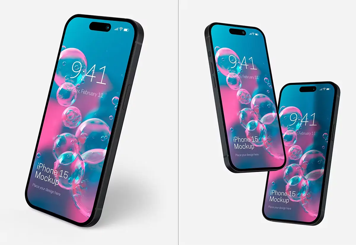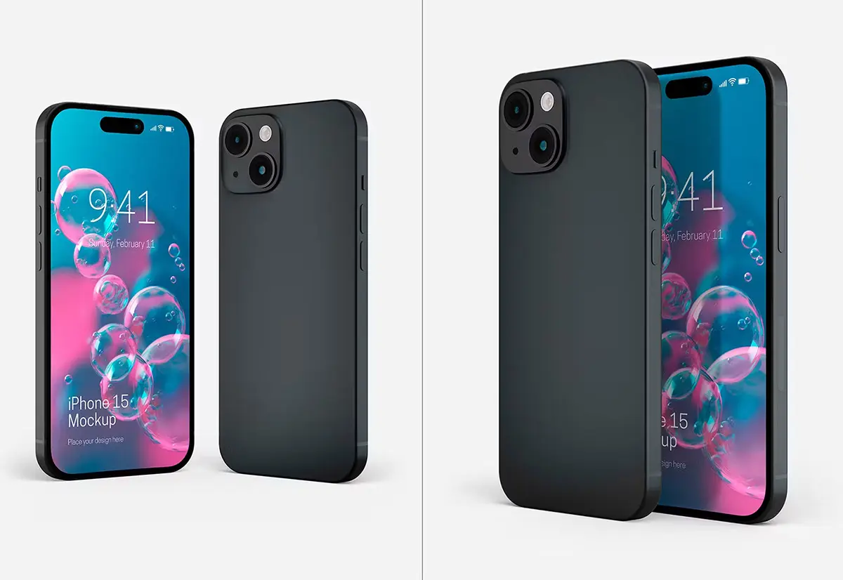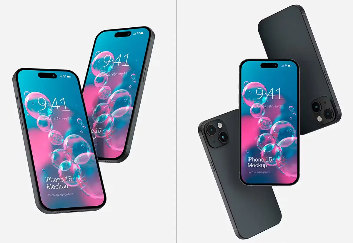 iPhone 15 Mockup Set 苹果15手机模型品牌展示设计贴图ps样机素材