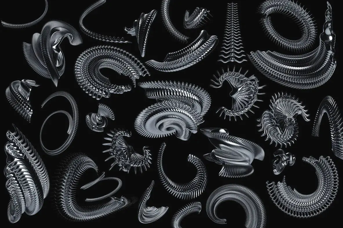 Chrome Elements – 3D Abstract Shapes Graphics 59款3D未来主义科幻抽象立体潮流艺术金属镀铬webp免抠图片素材