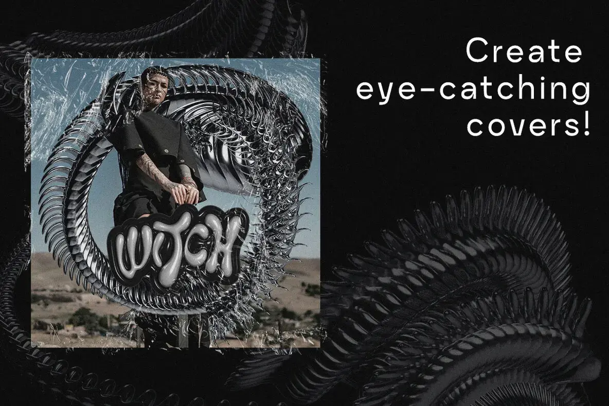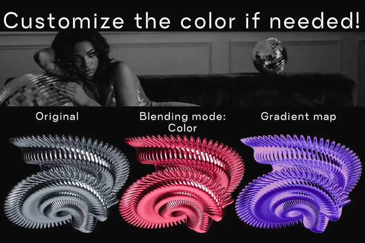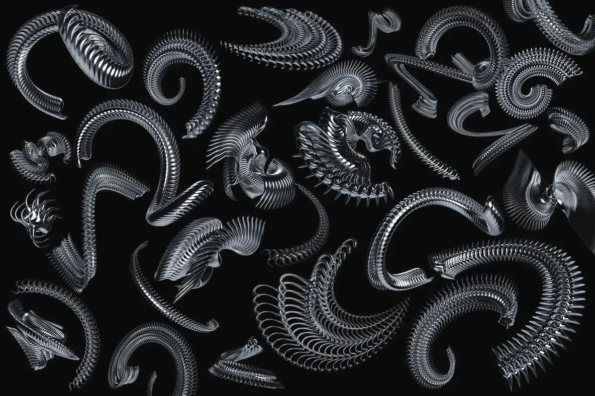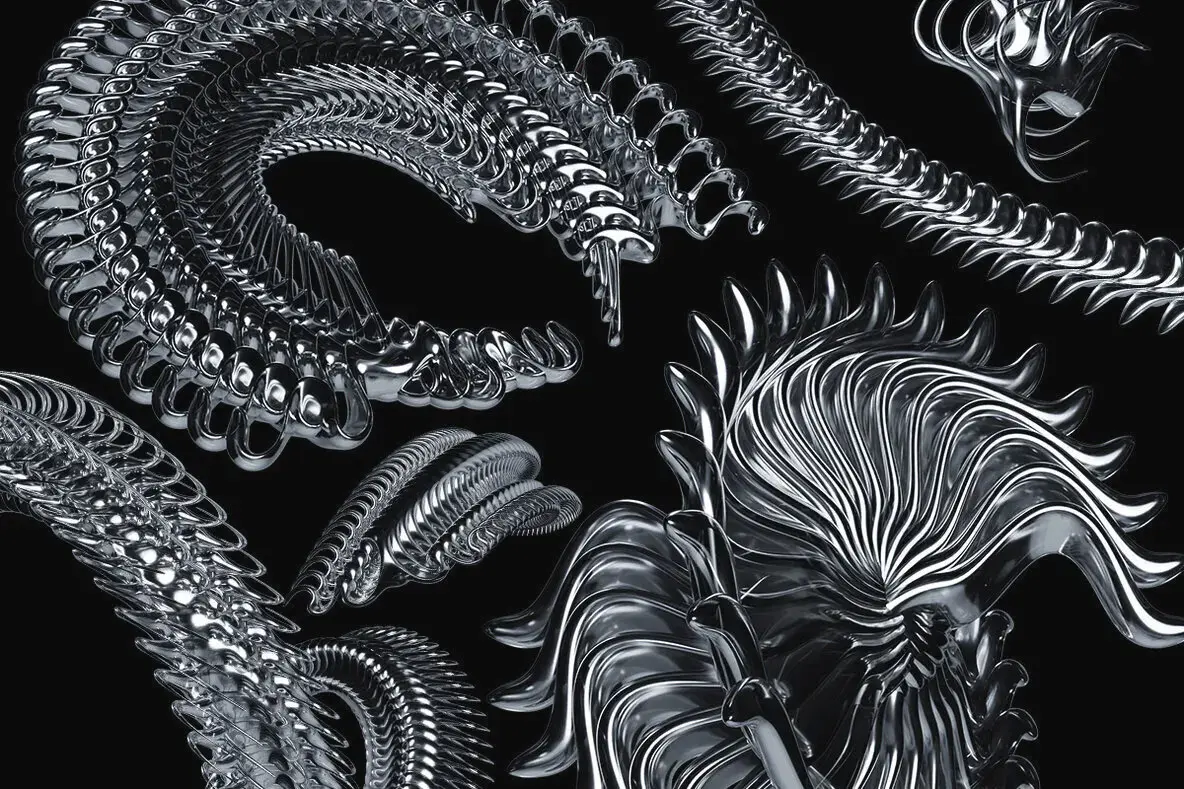 Chrome Elements – 3D Abstract Shapes Graphics 59款3D未来主义科幻抽象立体潮流艺术金属镀铬webp免抠图片素材