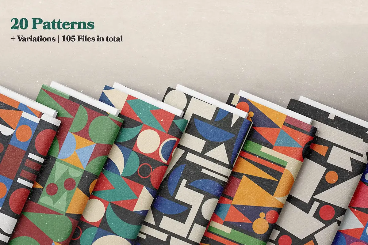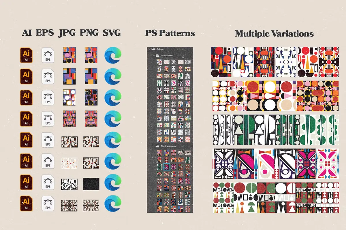 Authentic Cubism Patterns 105款北欧现代简约撞色抽象艺术装饰几何图形图案设计ai矢量素材