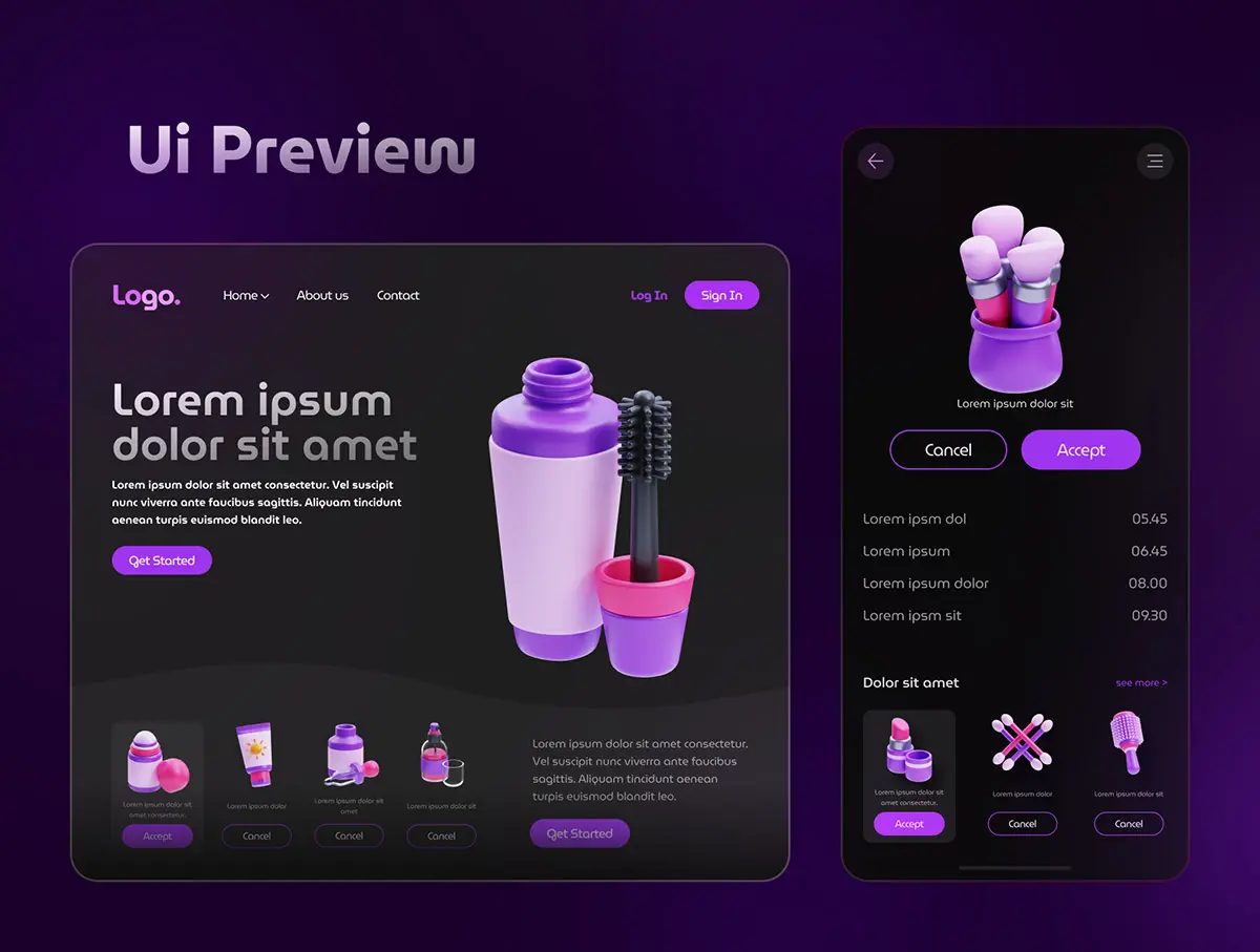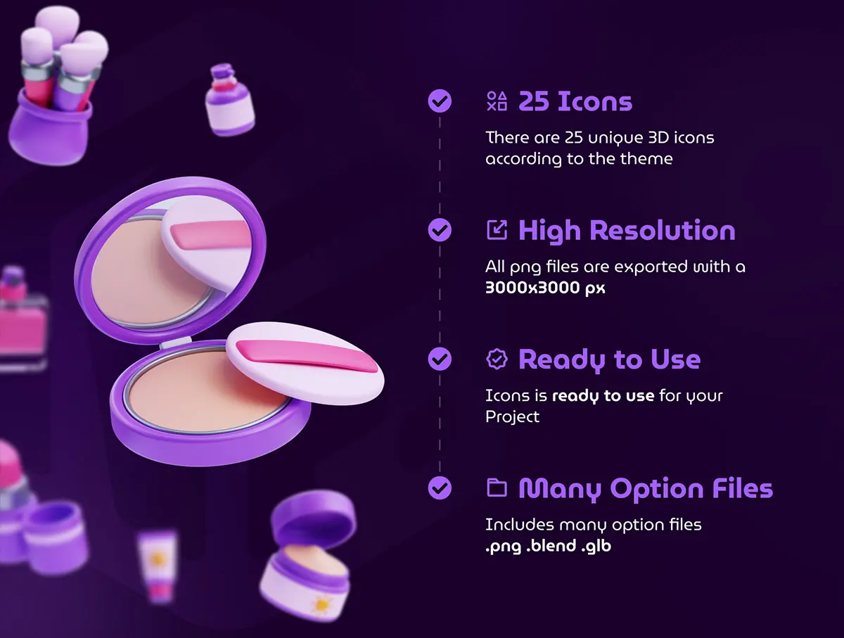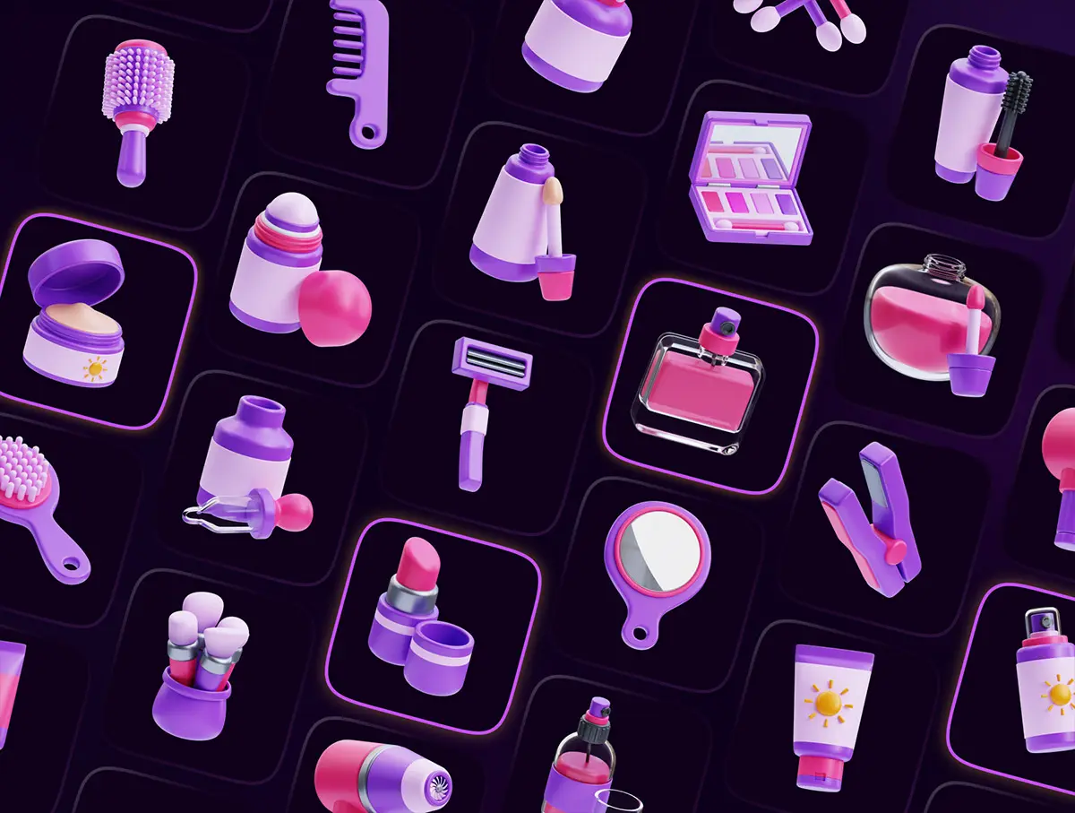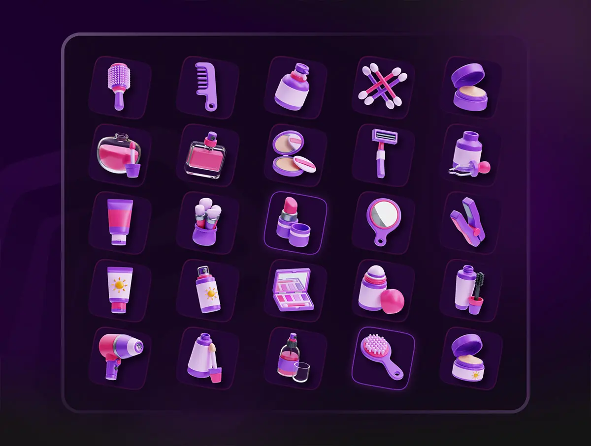Beauty & Treatment 3D Icon Set 25款化妆品护肤品美容美发防晒补妆插图3D图标icon设计素材webp免抠图片