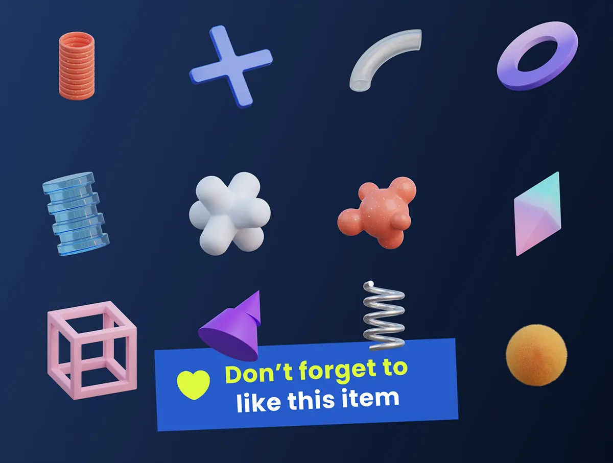 Abstract 3D Object 20款3D抽象艺术科技时尚卡通立体创意几何图形webp免抠图片素材