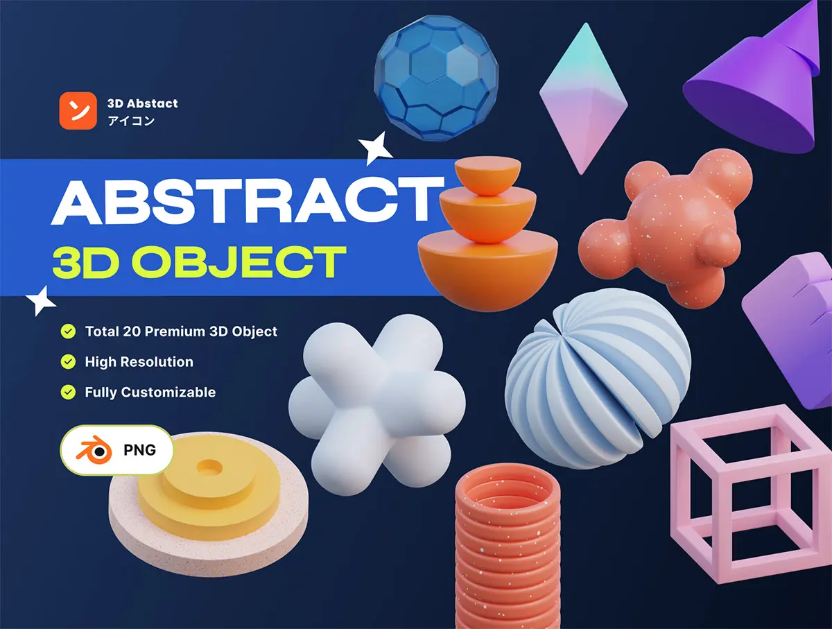 Abstract 3D Object 20款3D抽象艺术科技时尚卡通立体创意几何图形webp免抠图片素材