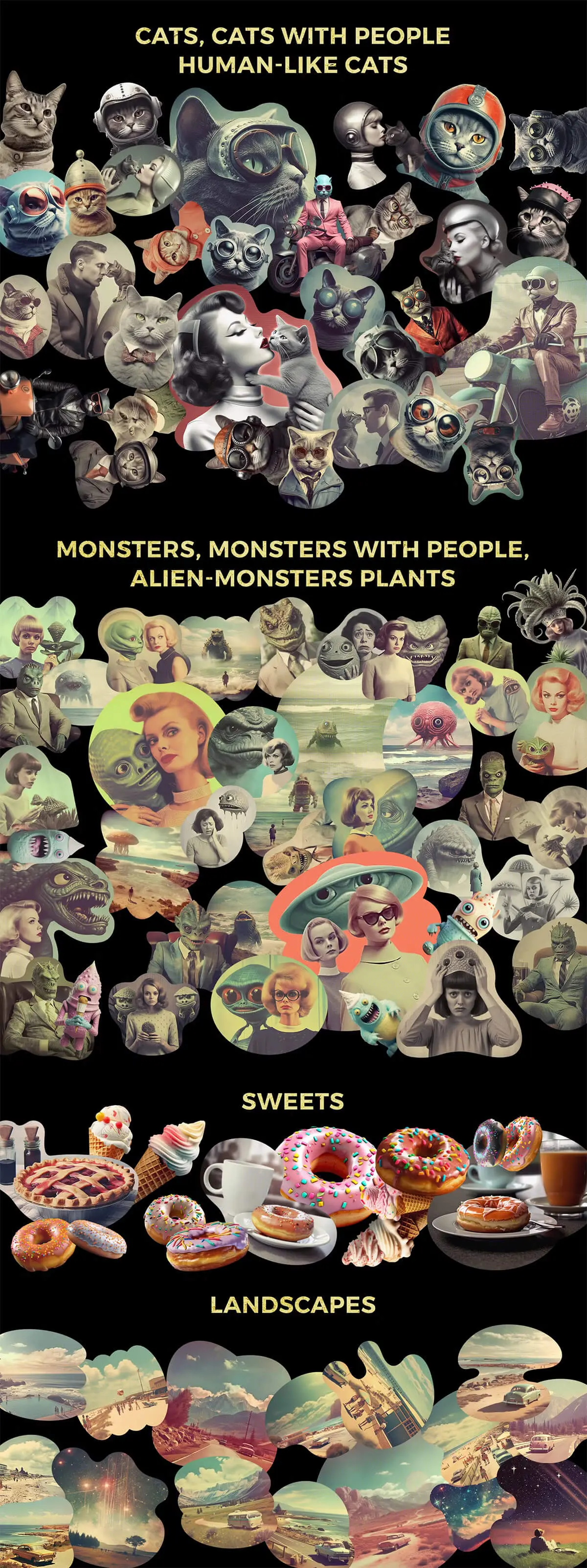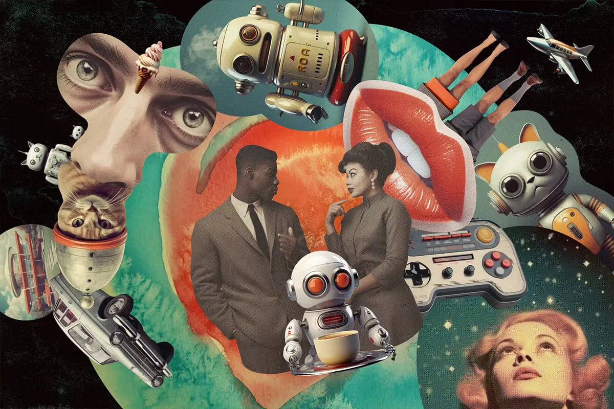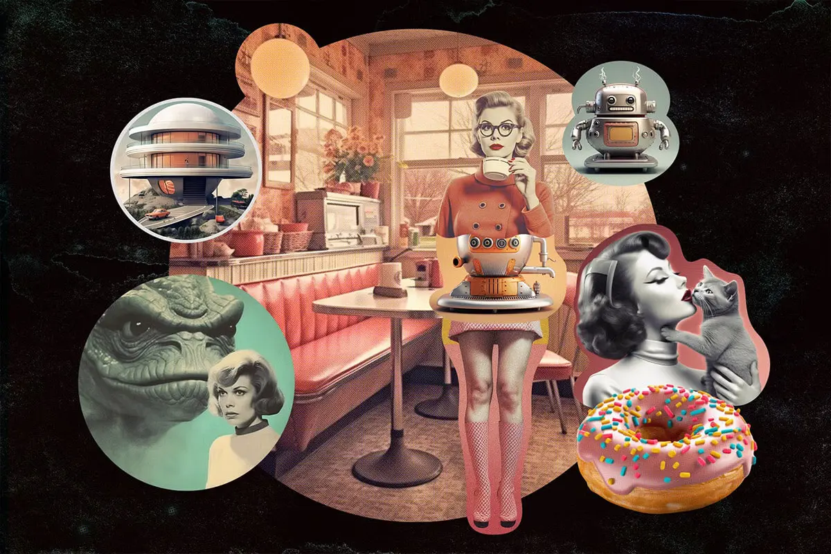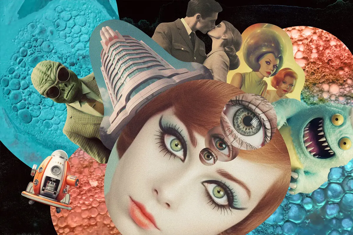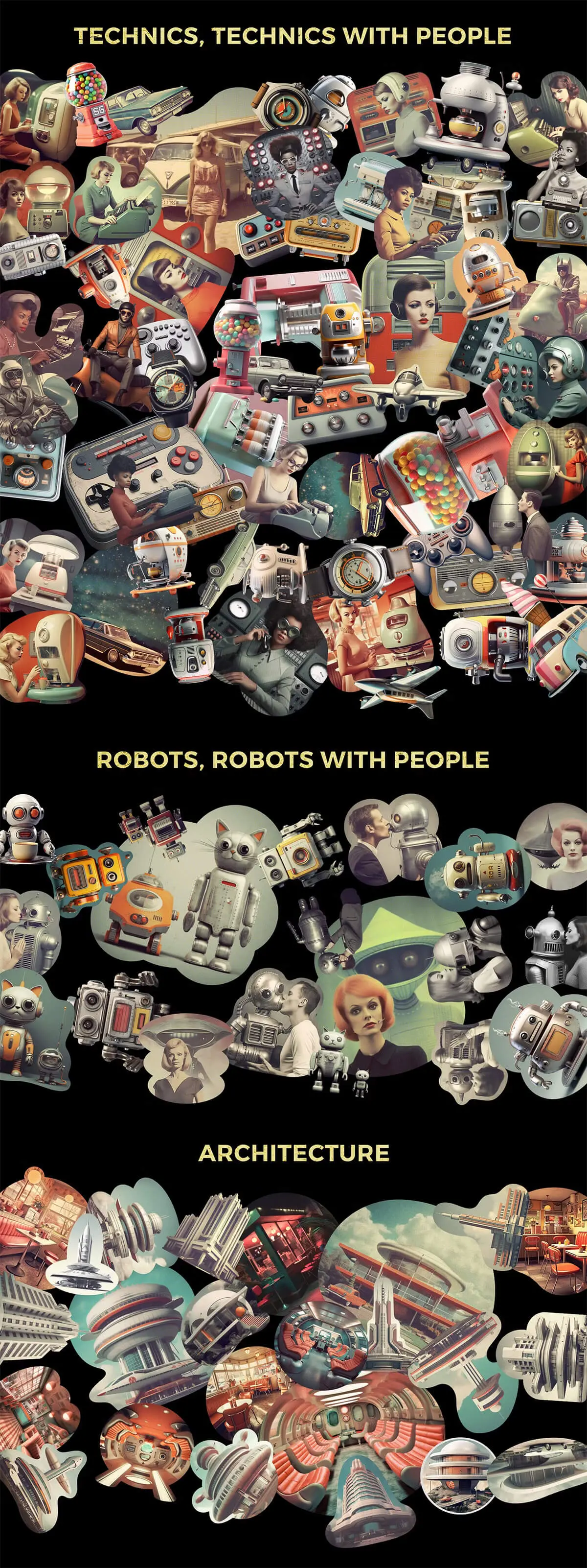 Retro futuristic movies collage kit 354款复古未来科幻半调怀旧电影人物建筑风景webp免抠拼贴图片素材