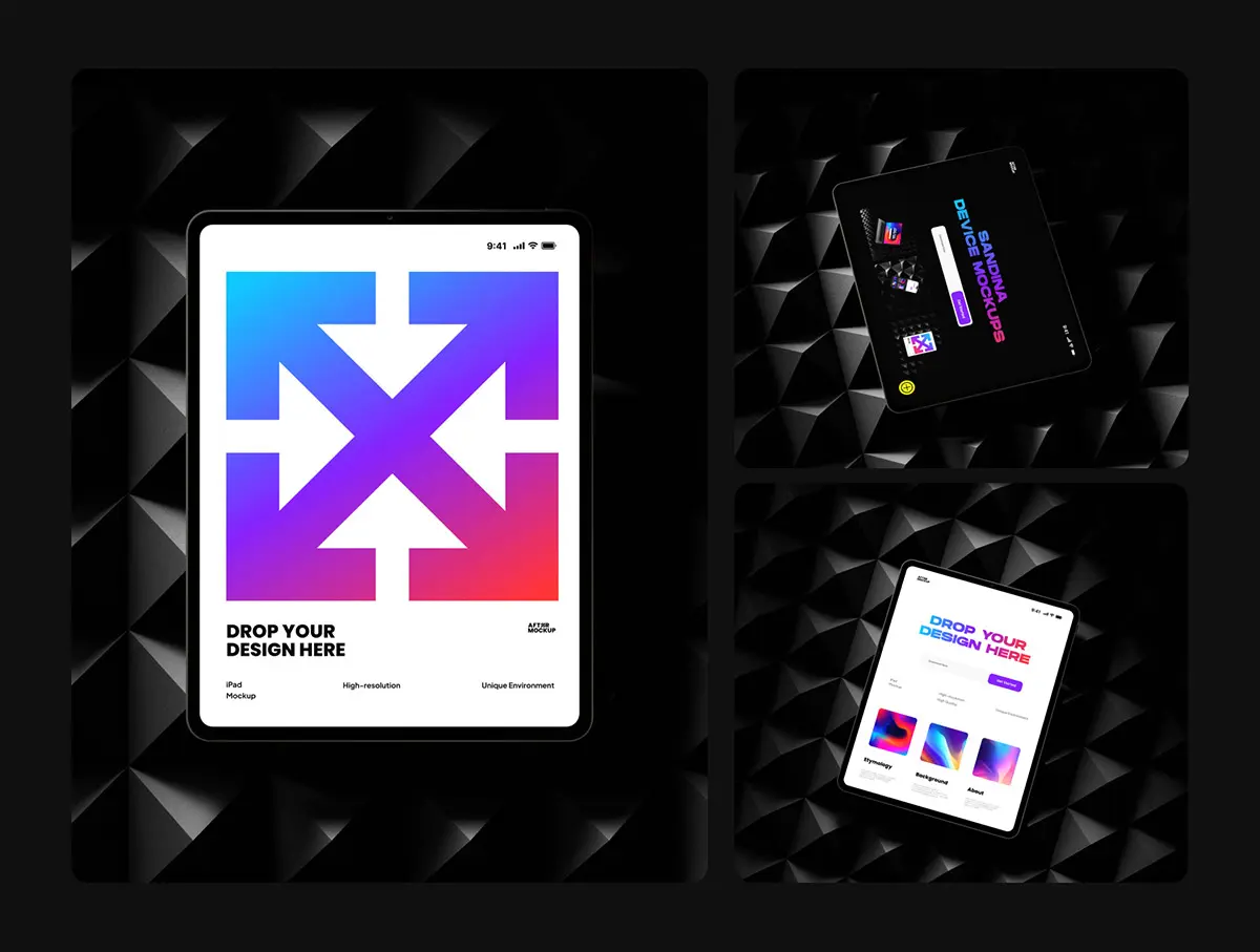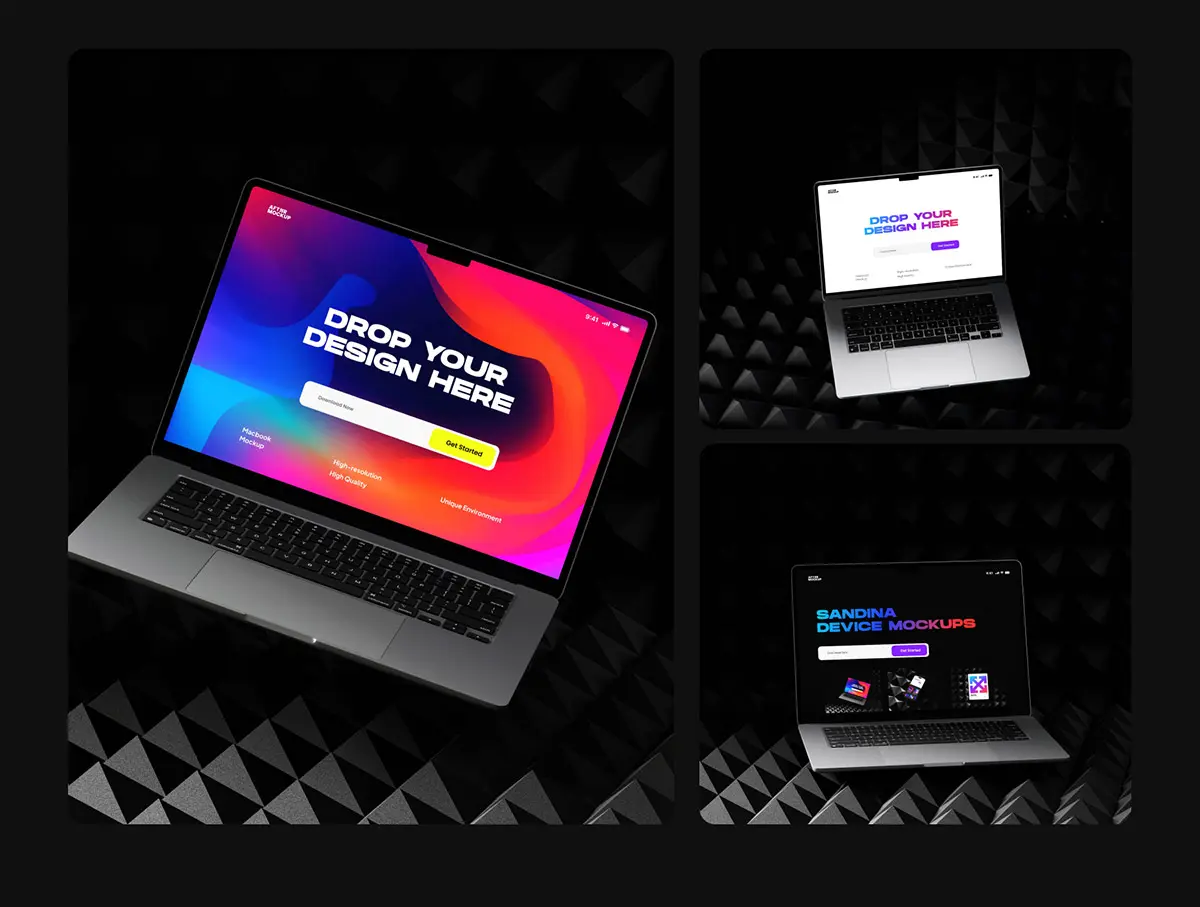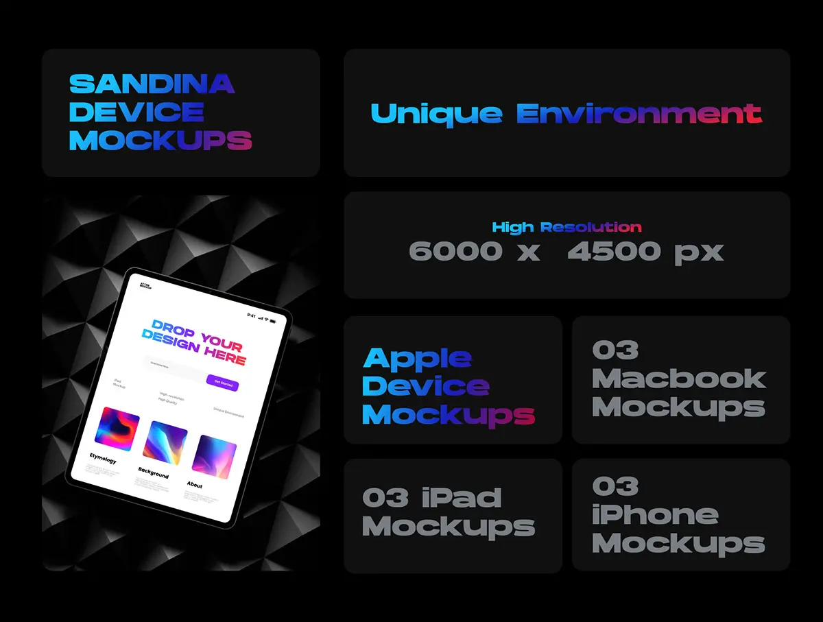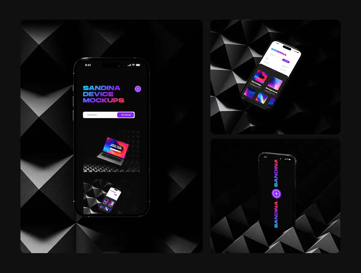 Sandina Bundle Device Mockups 9款暗黑极简工业iPhone手机iPad平板Macbook笔记本电脑ps样机素材