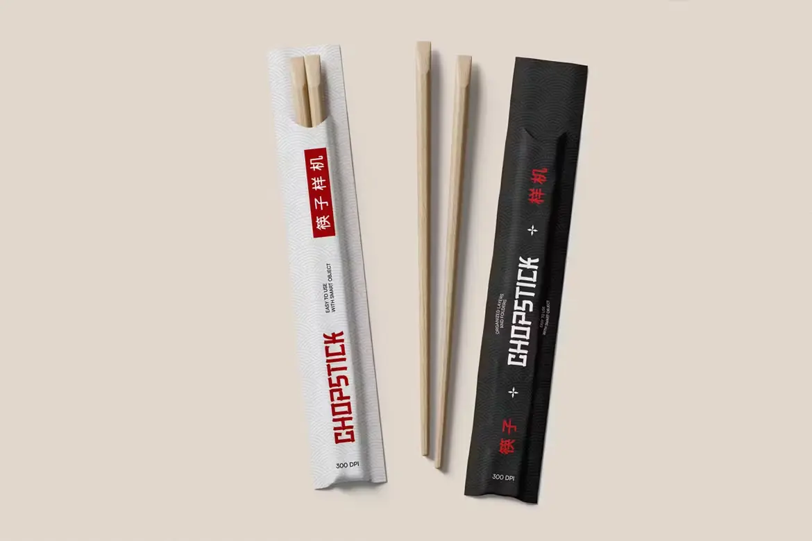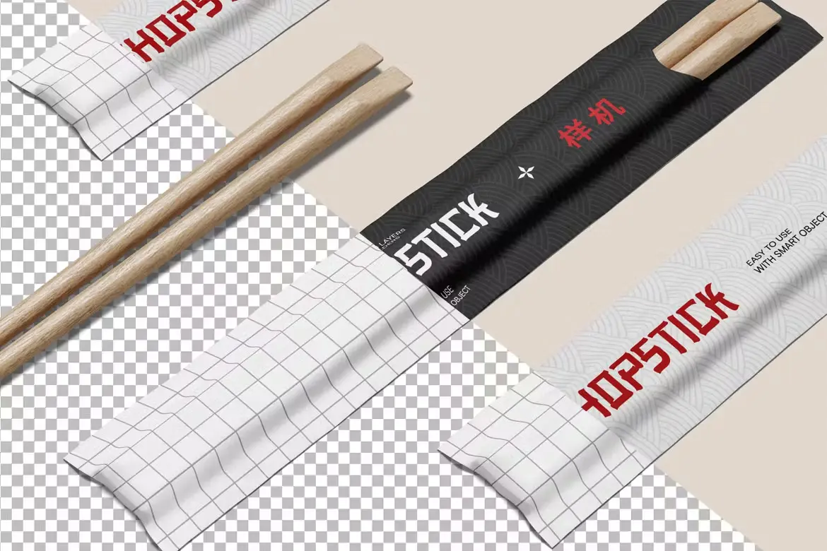 Chopsticks Mockup 一次性木质筷子筷套模型品牌logo标识设计贴图ps样机素材