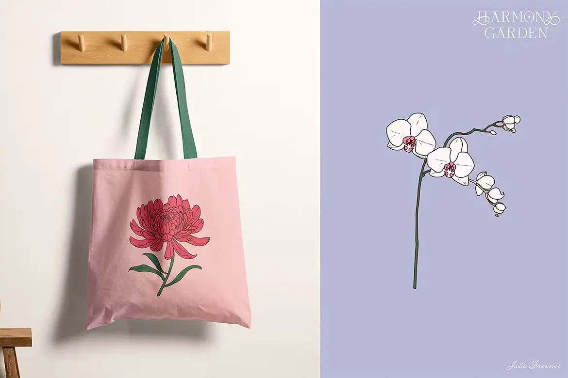 Harmony Garden Flowers SVG Clipart Set 手绘自然花朵花卉剪切画矢量插图插画设计素材