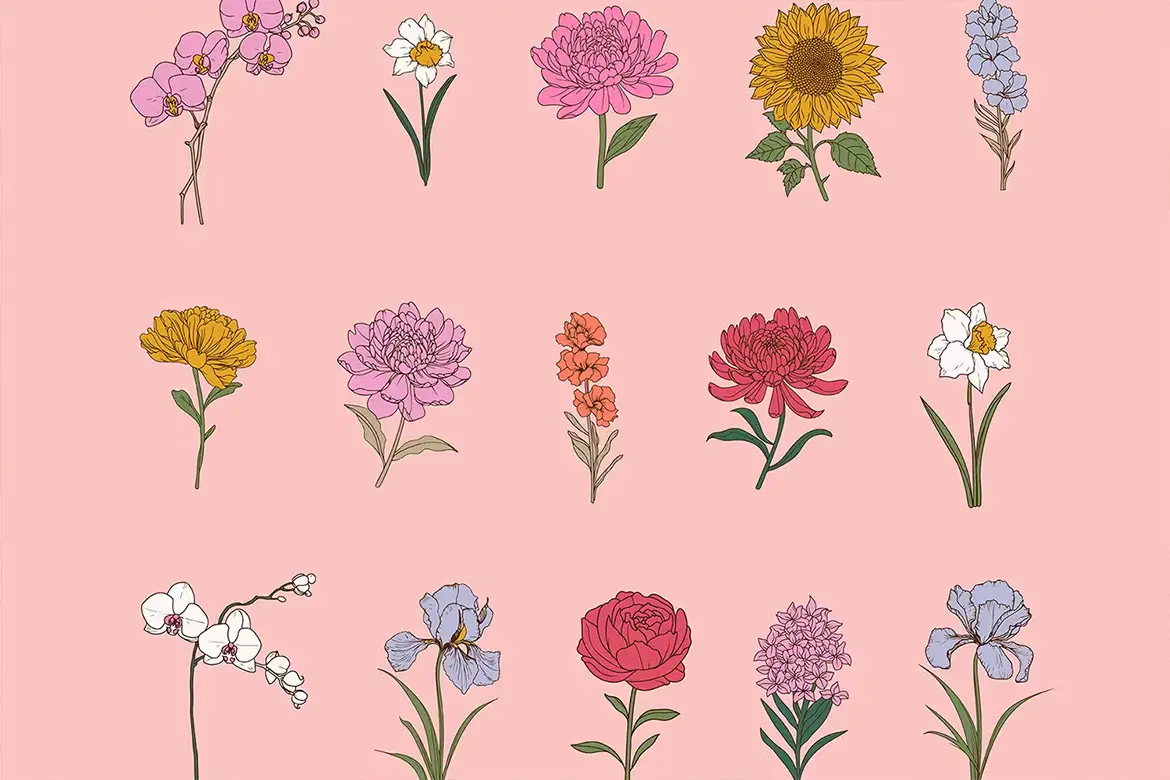 Harmony Garden Flowers SVG Clipart Set 手绘自然花朵花卉剪切画矢量插图插画设计素材