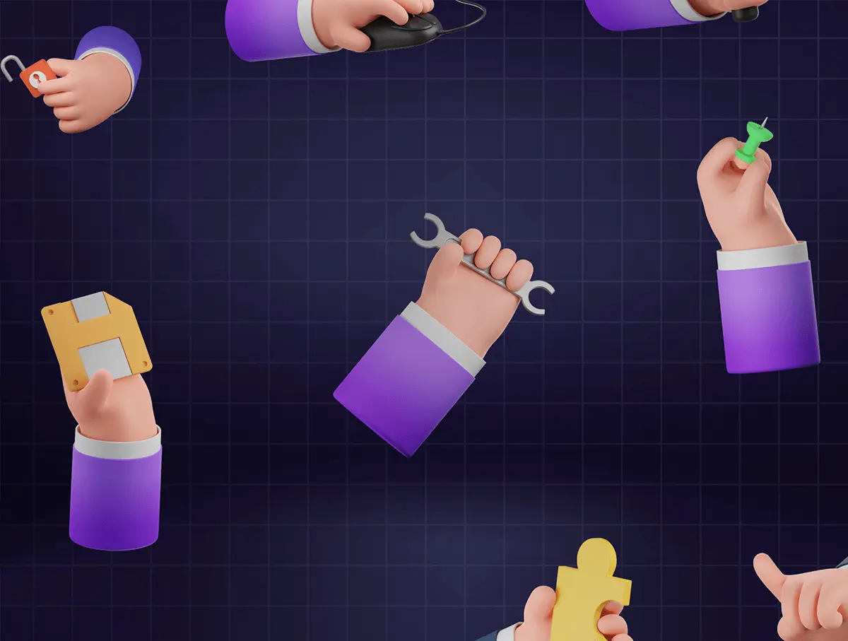 HANDS 3D Icons Set 15款3D卡通人物插画图片,手指动作手势插画素材webp免抠图