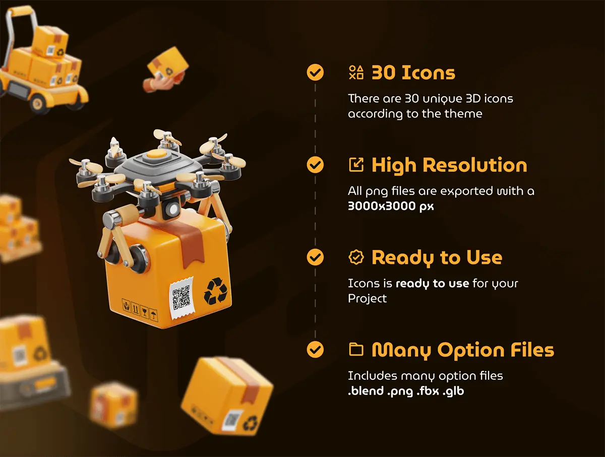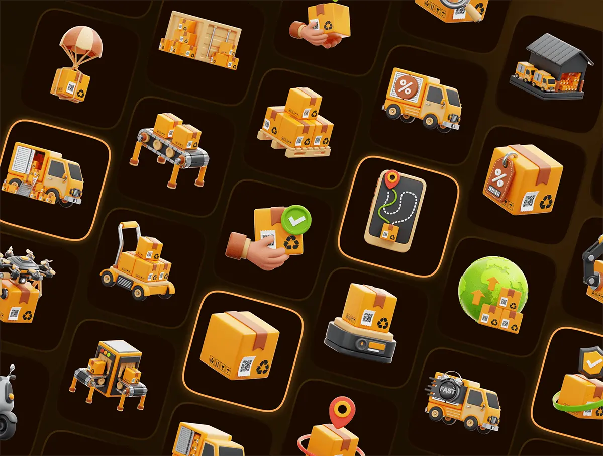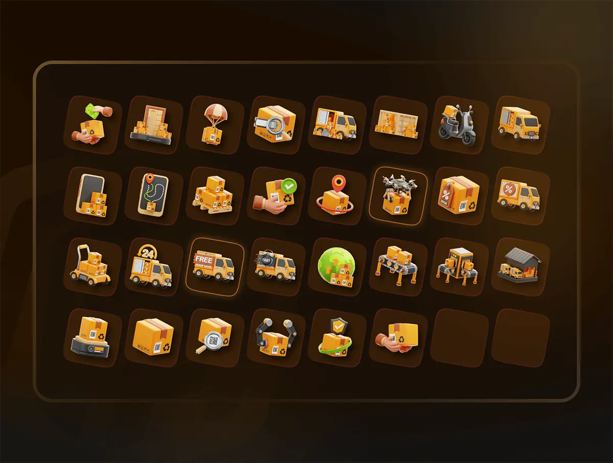 Logistic & Delivery 3D Icon Set 30款高清物流配送3D模型图标合集优质货物运输三维立体icon图标