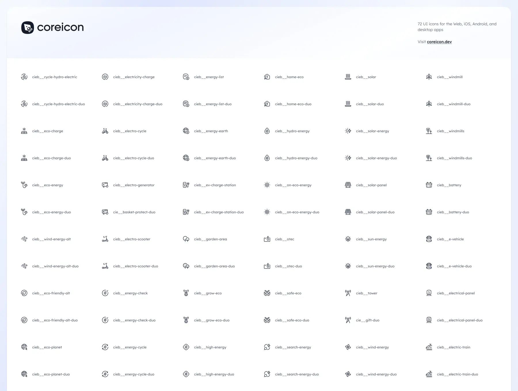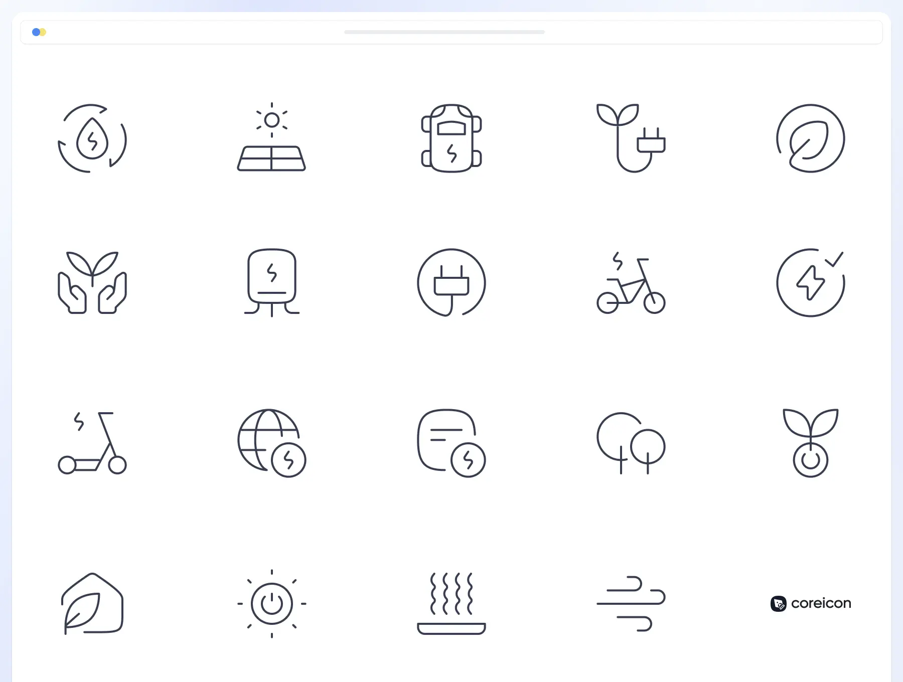 Core Energy 72个新能源太阳能电池风能环保矢量线性小图标
