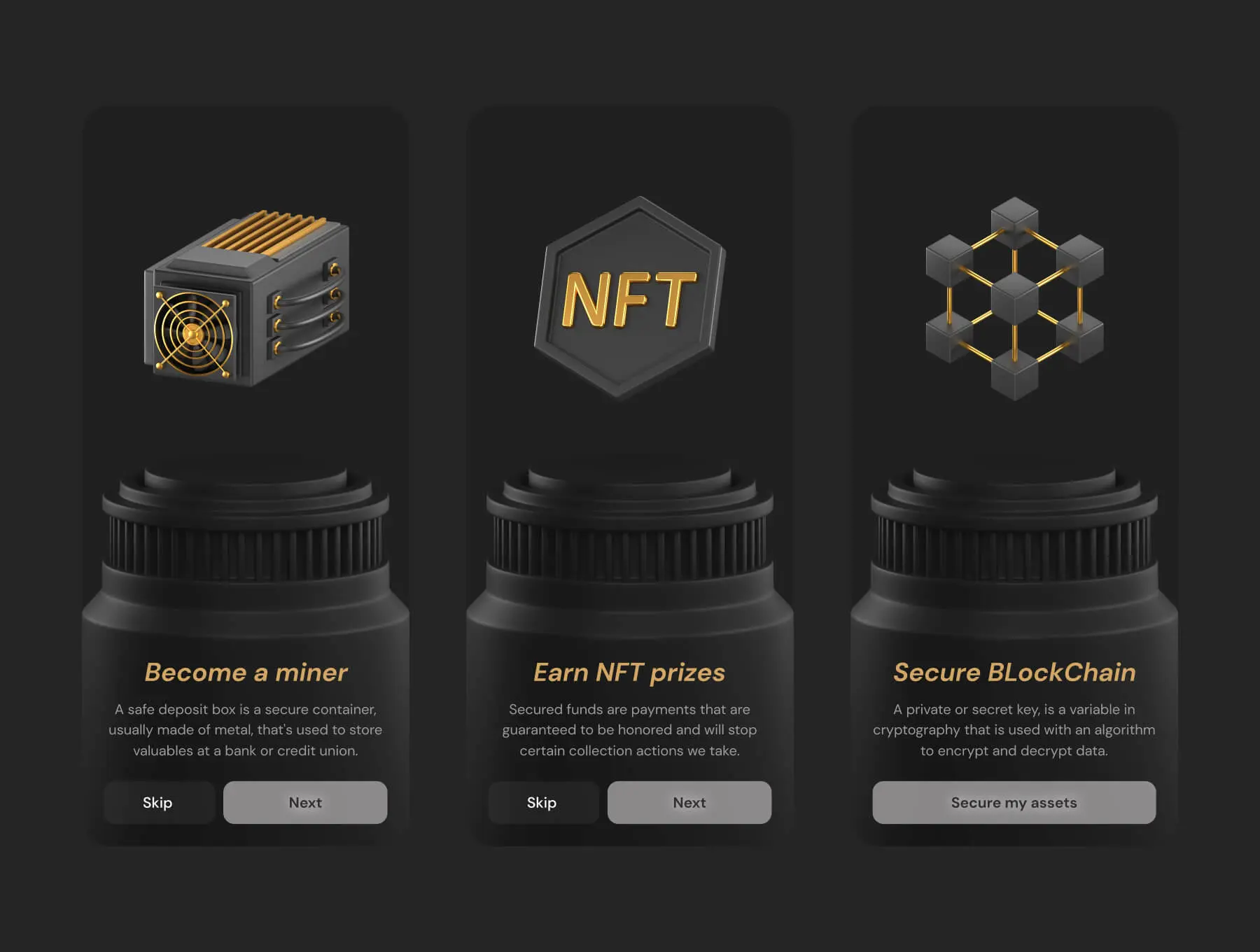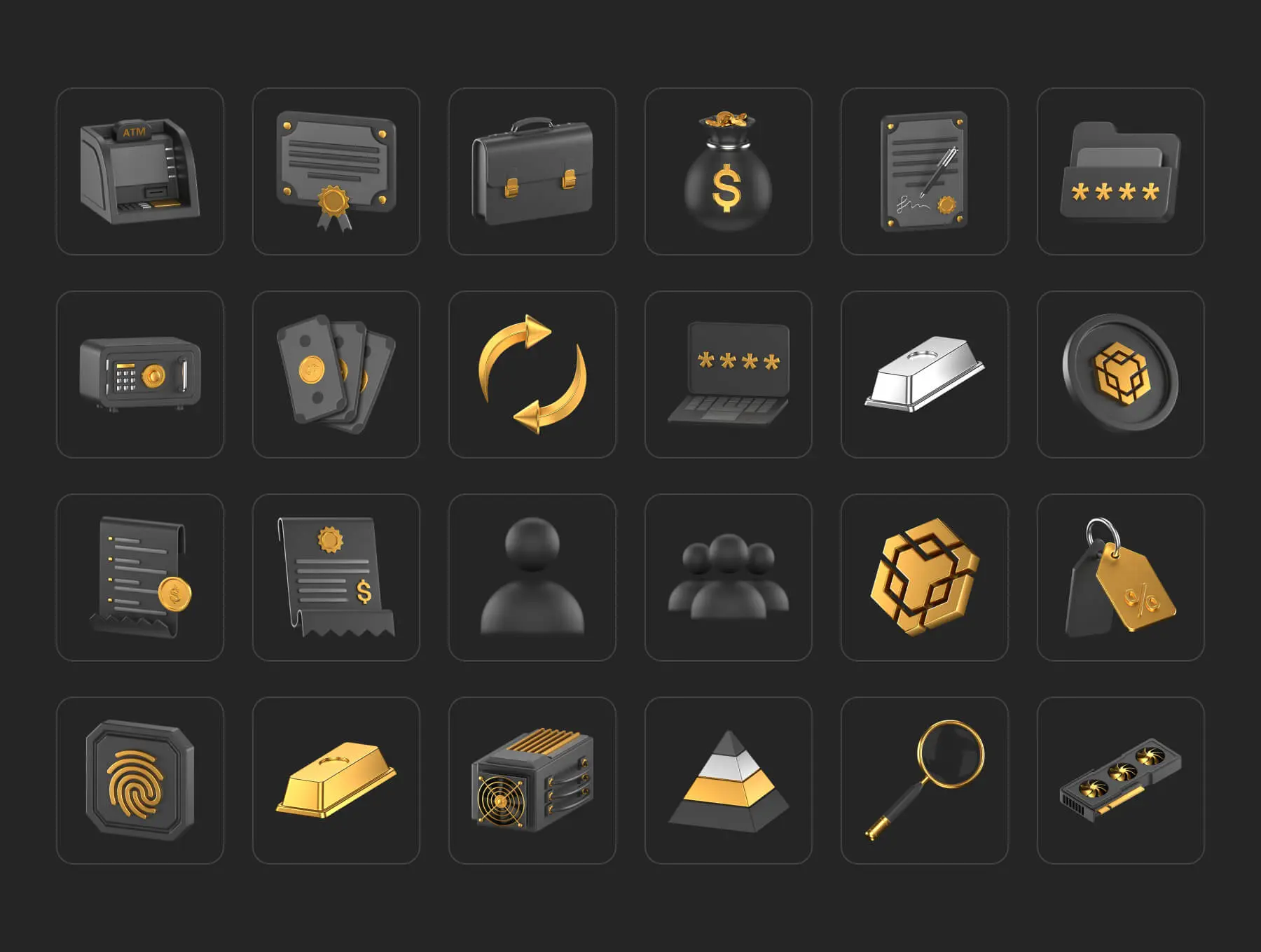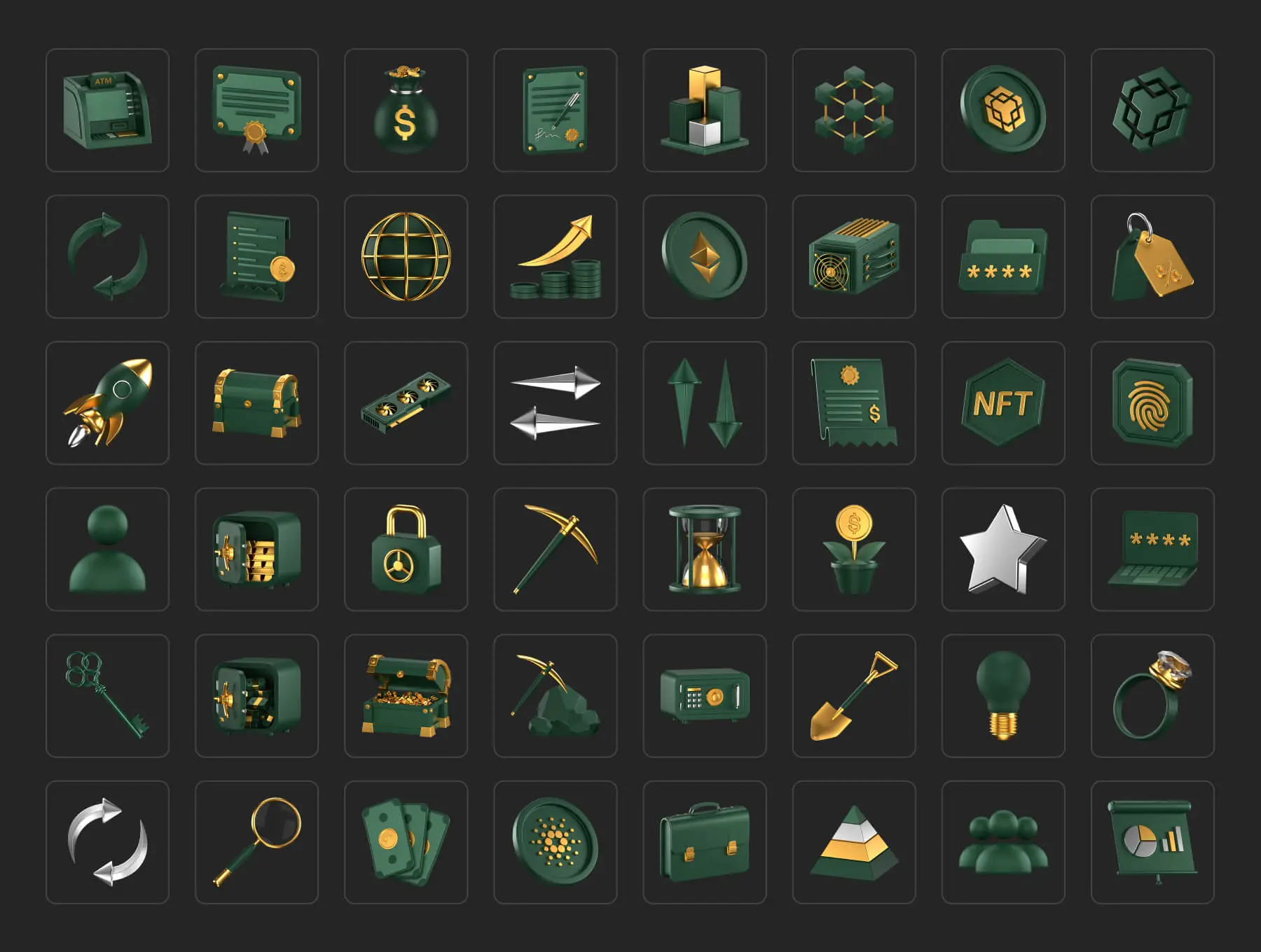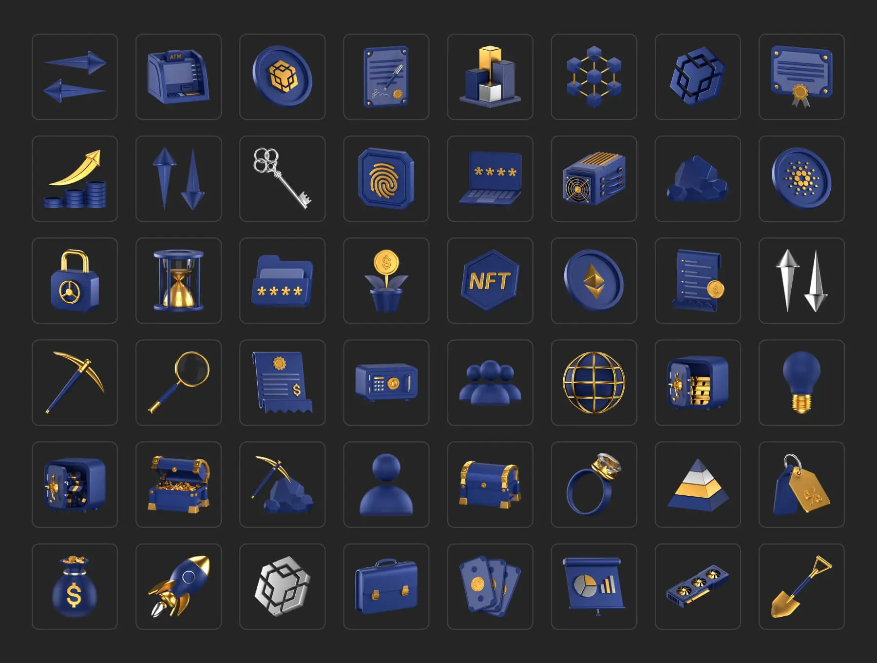 Fintech 3D Icons Pack Vol. 2 金融科技安全加密货币金色3D图标icon设计素材webp免抠图片
