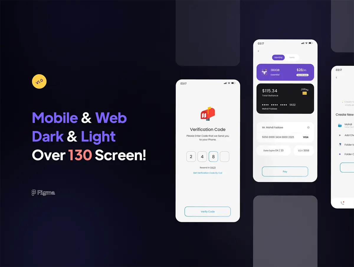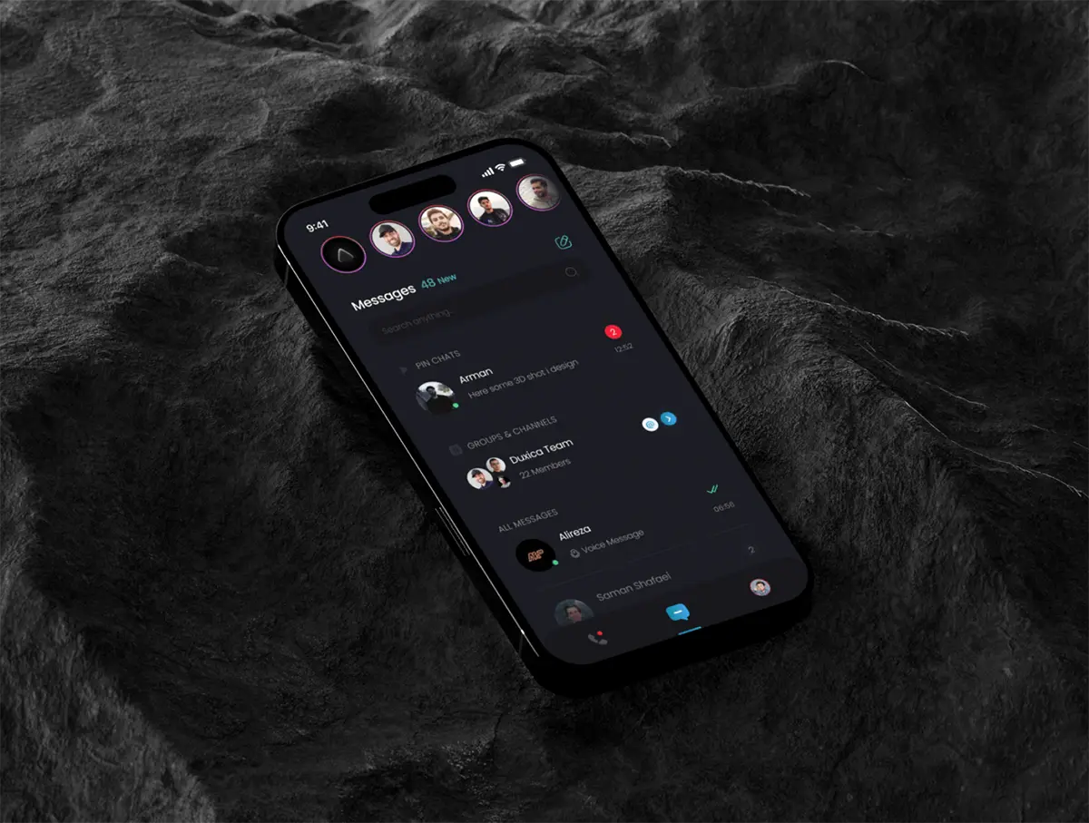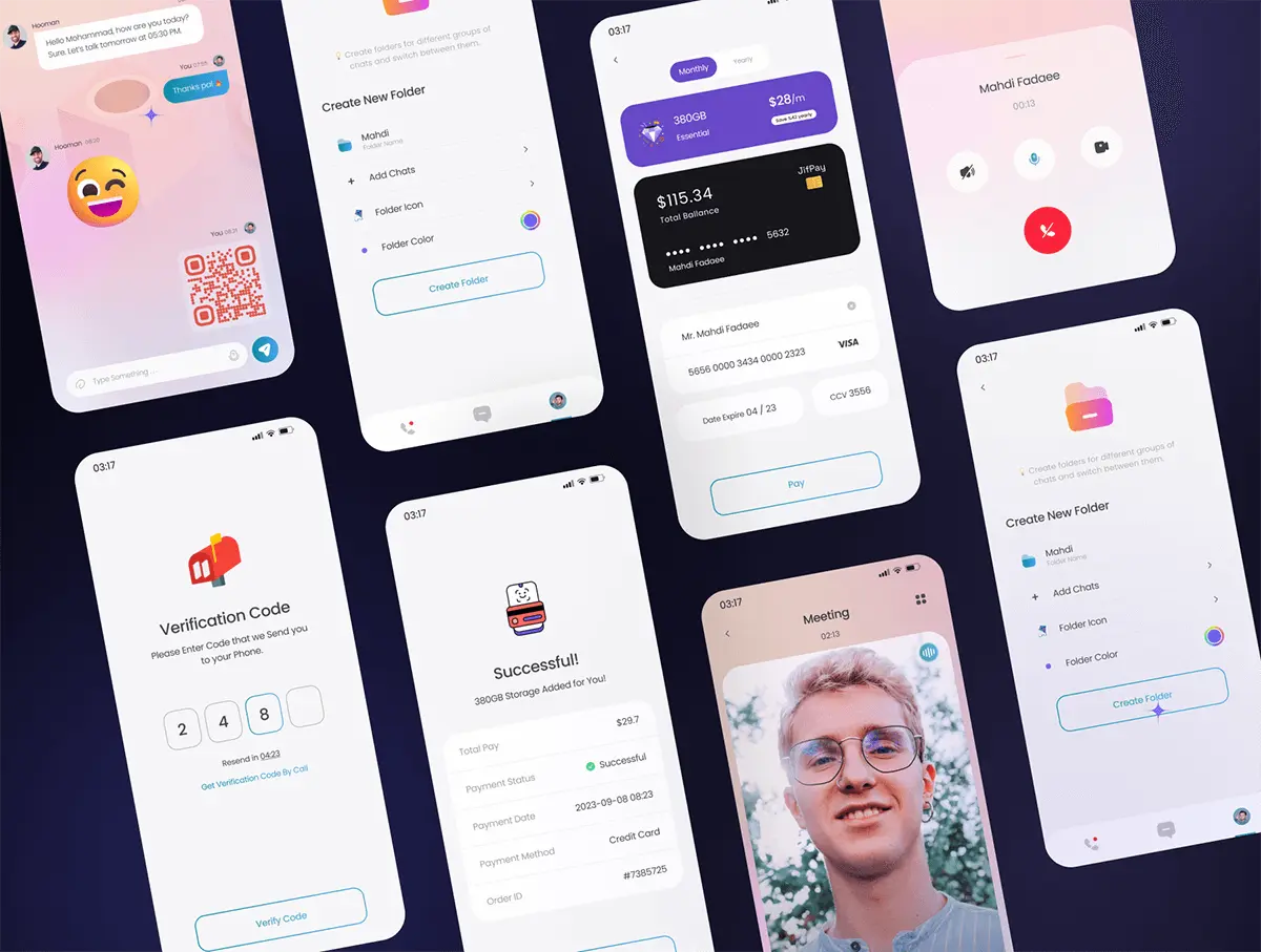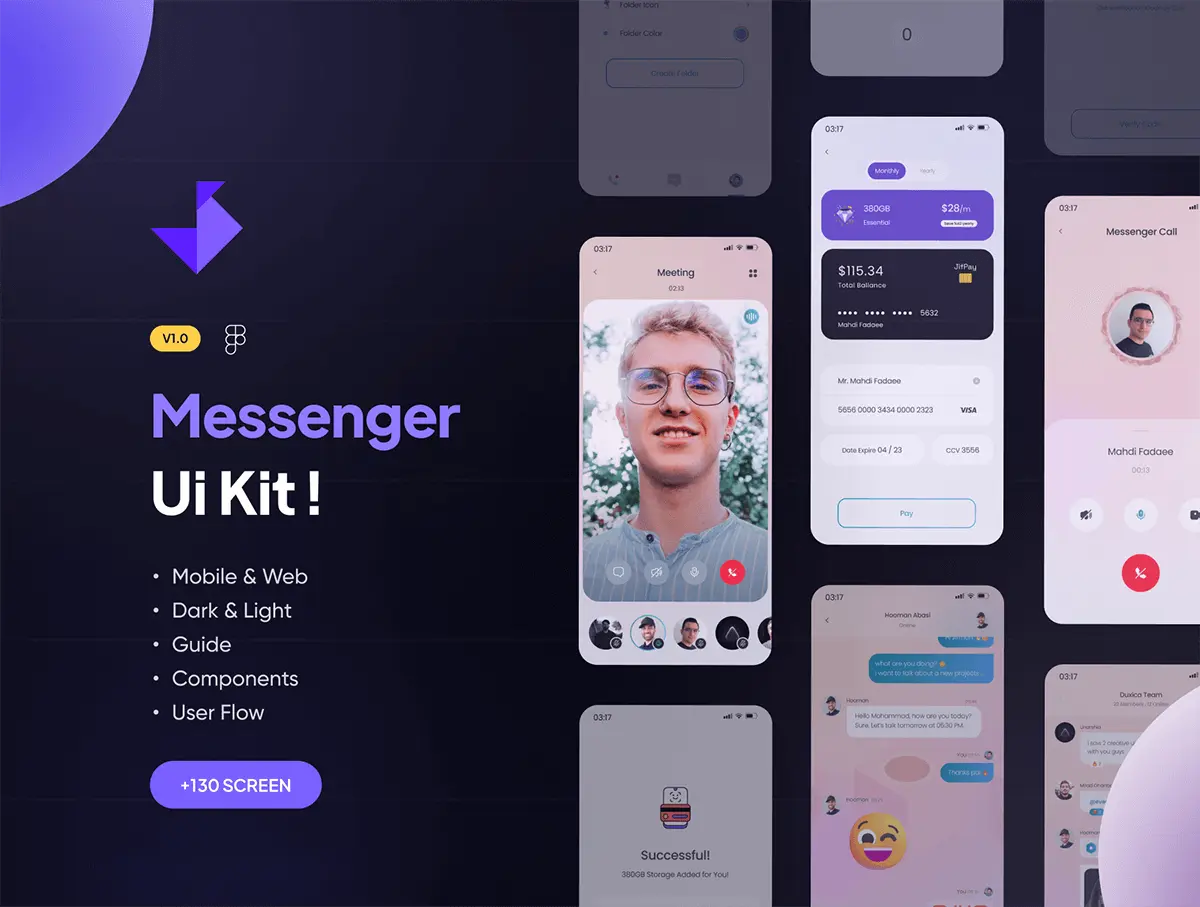 Messenger Mobile and Desktop App UI Kit 130多屏国外类微信在线社交消息聊天app界面设计明暗iu套件模板