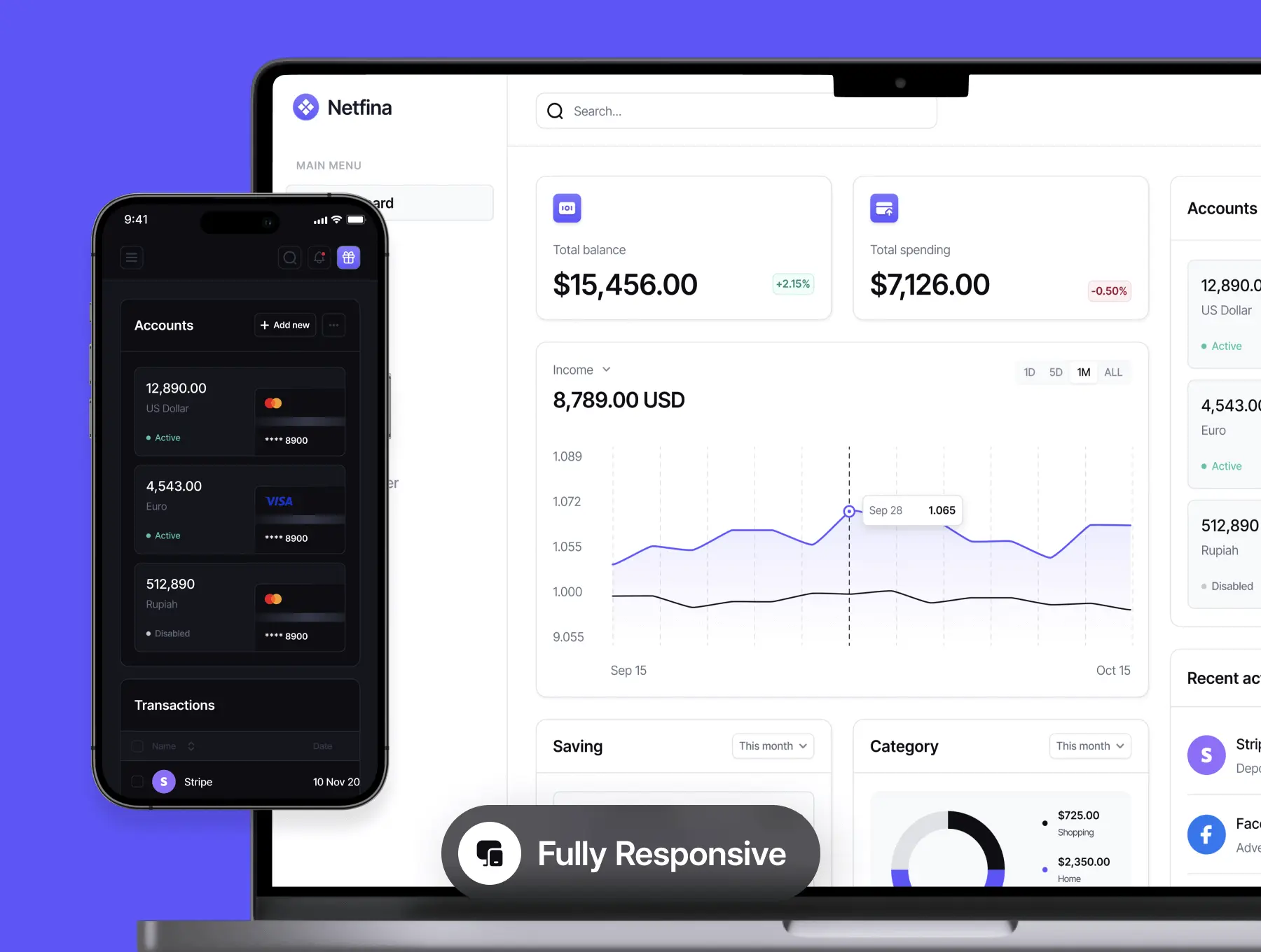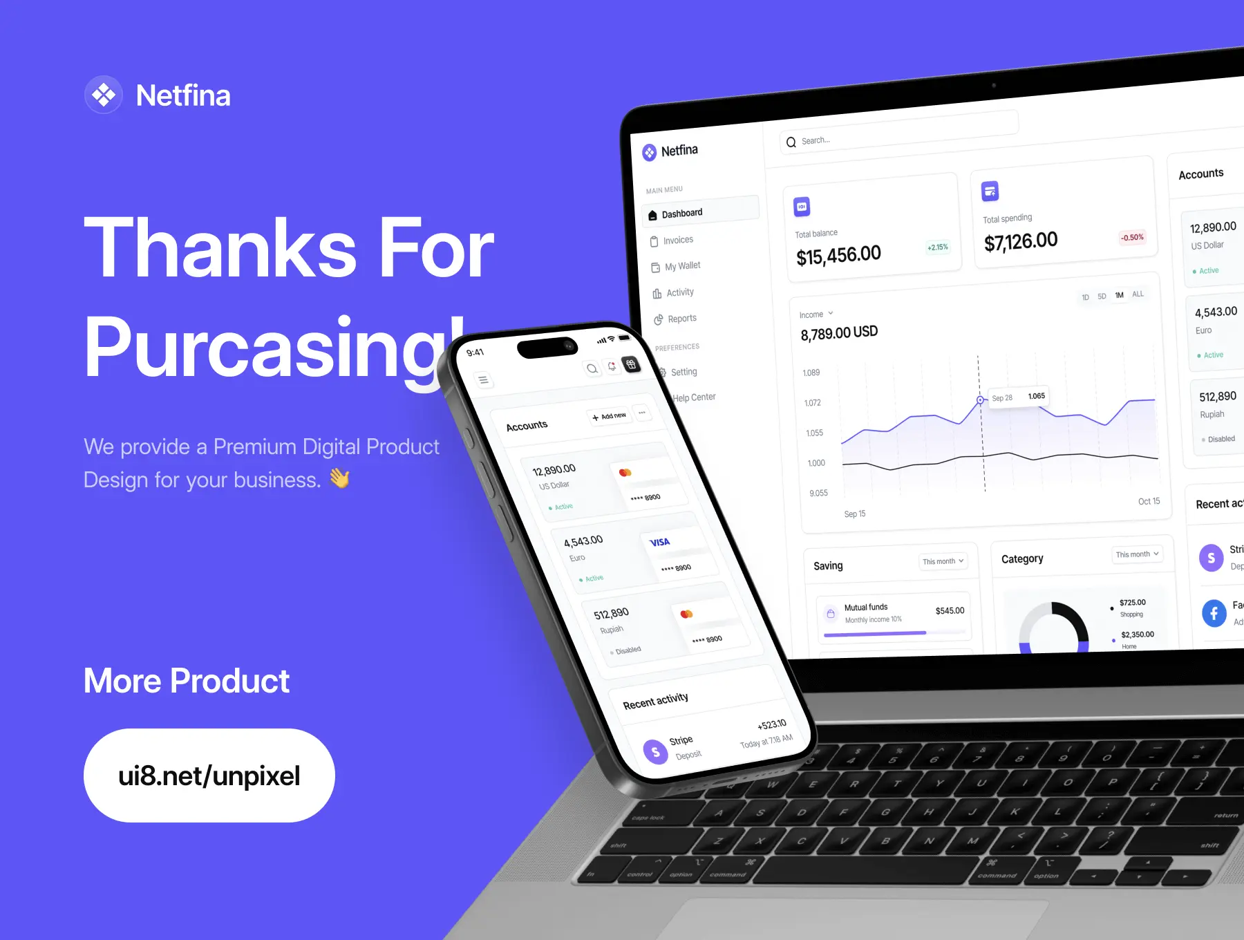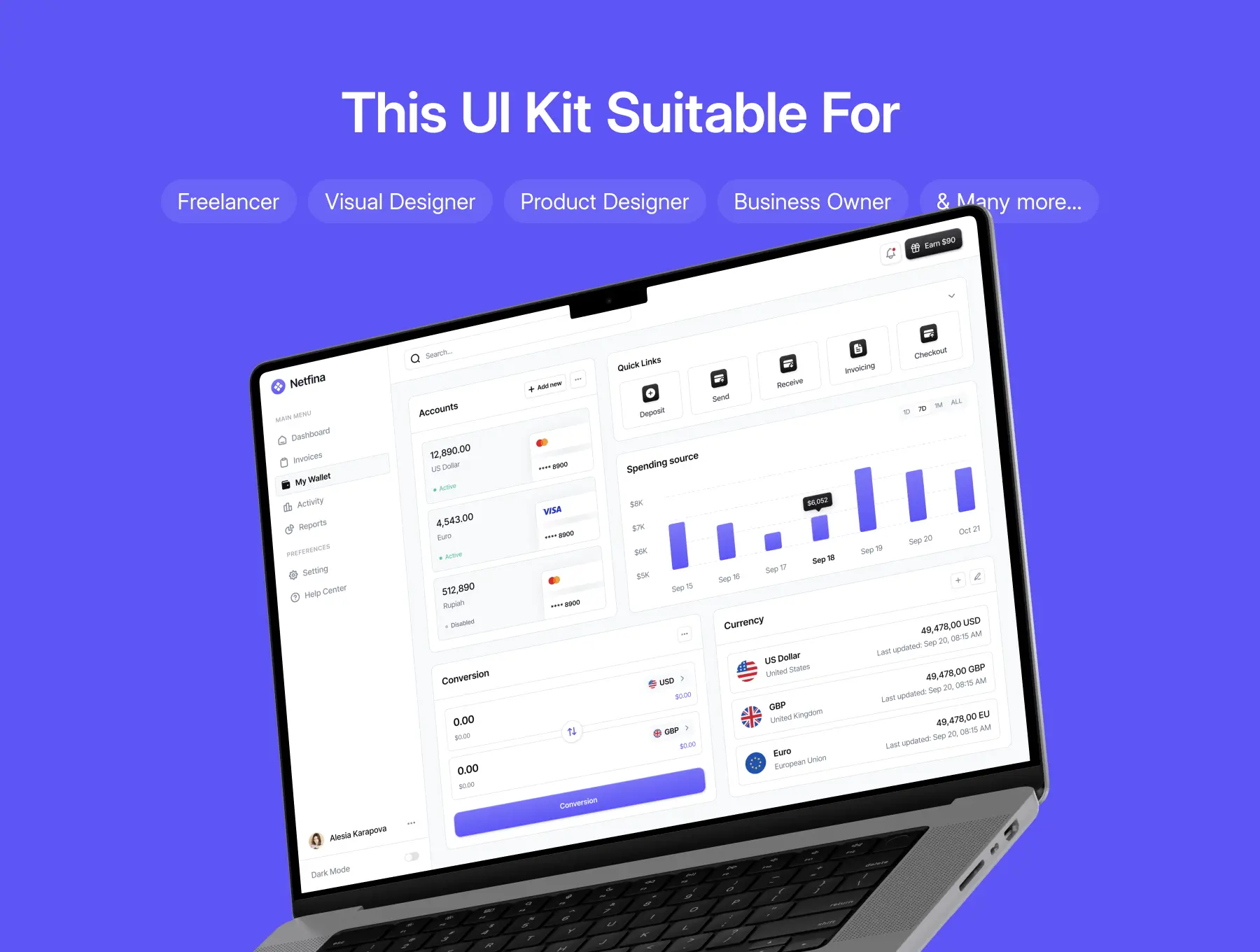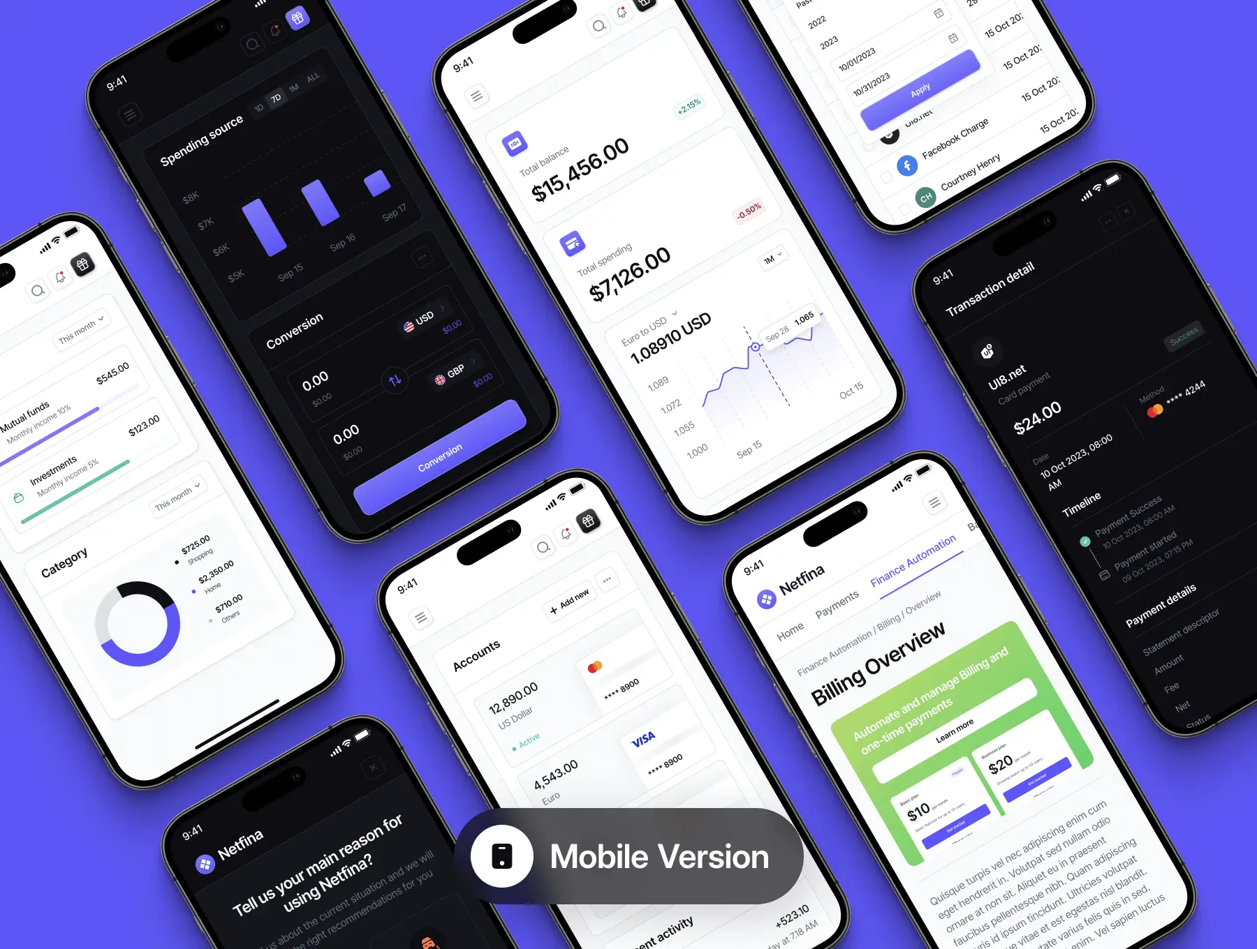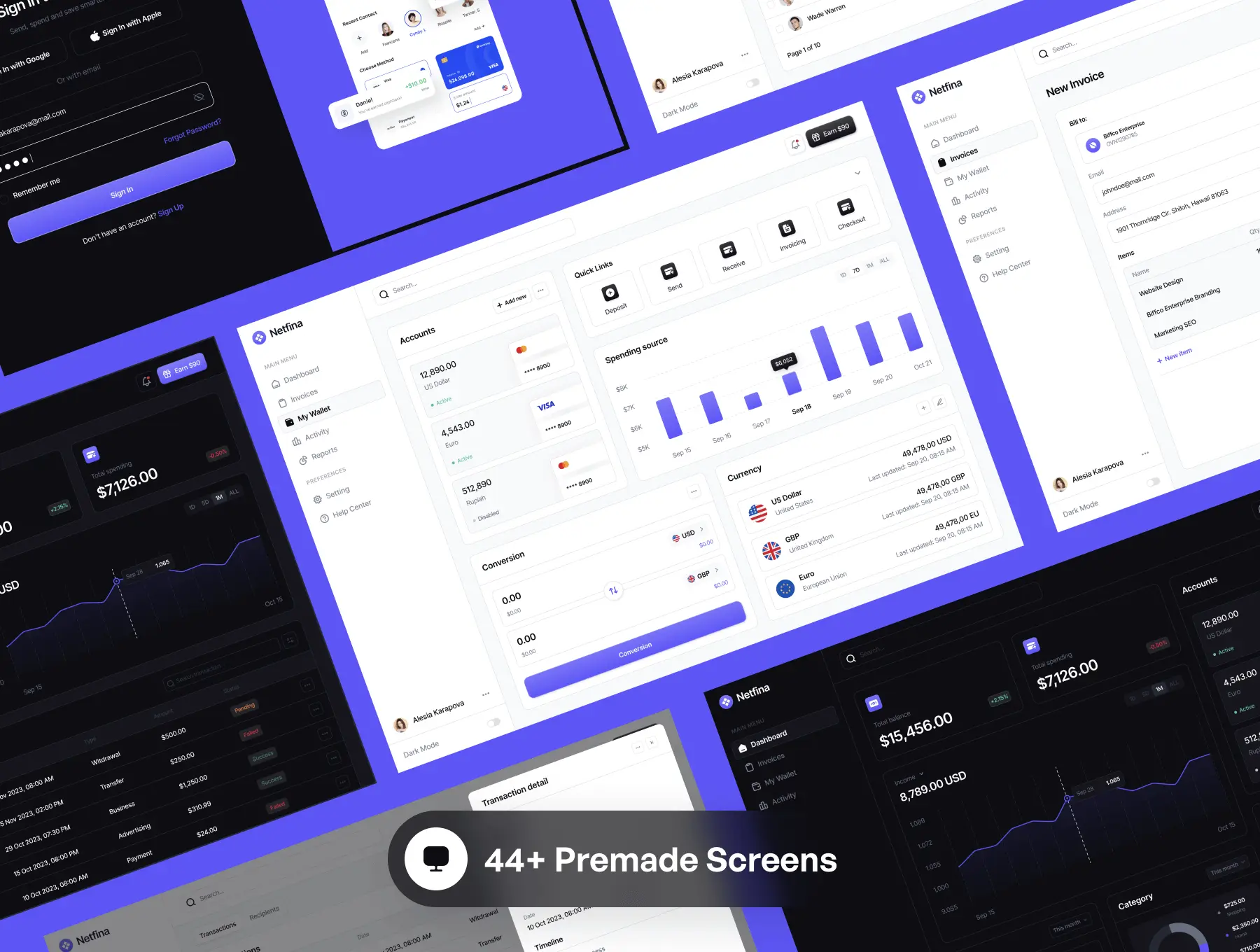 Netfina – Financial Management Dashboard UI Kit 金融财务加密货币资产管理Dashboard后台管理ui操作界面模板