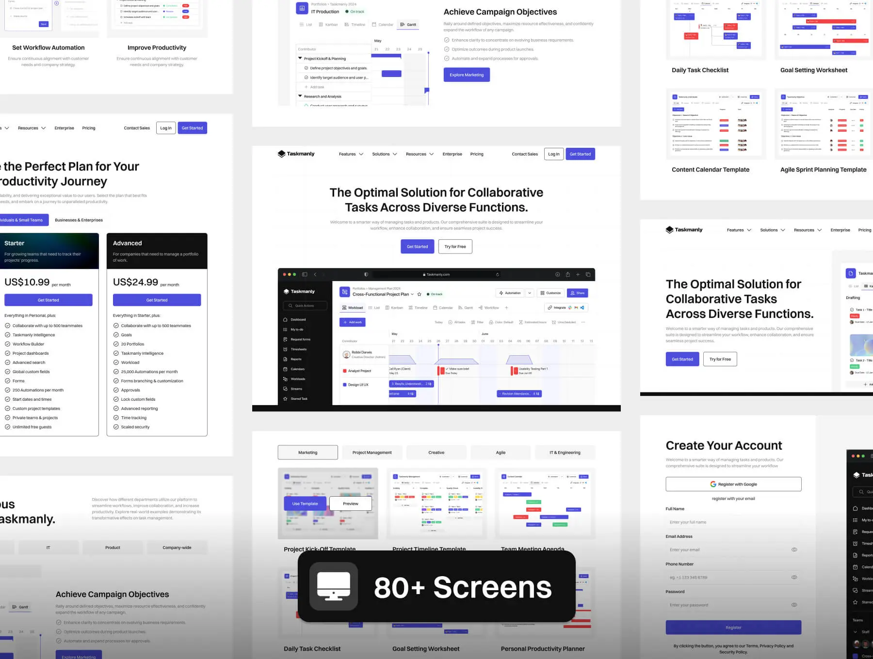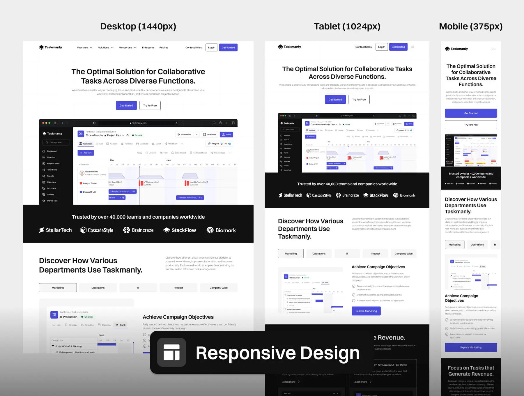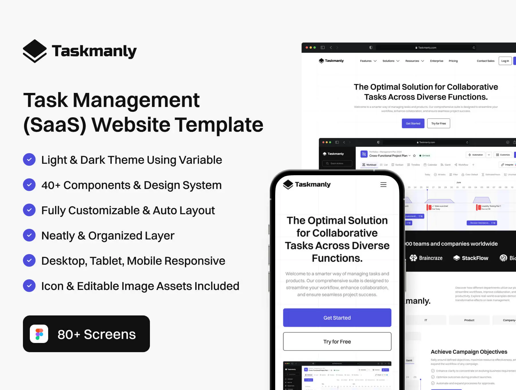 Taskmanly – Task Management Website UI Kit 适用于SaaS网站任务管理办公工具响应式应用程序UI套件