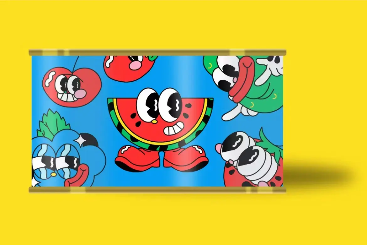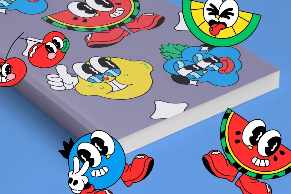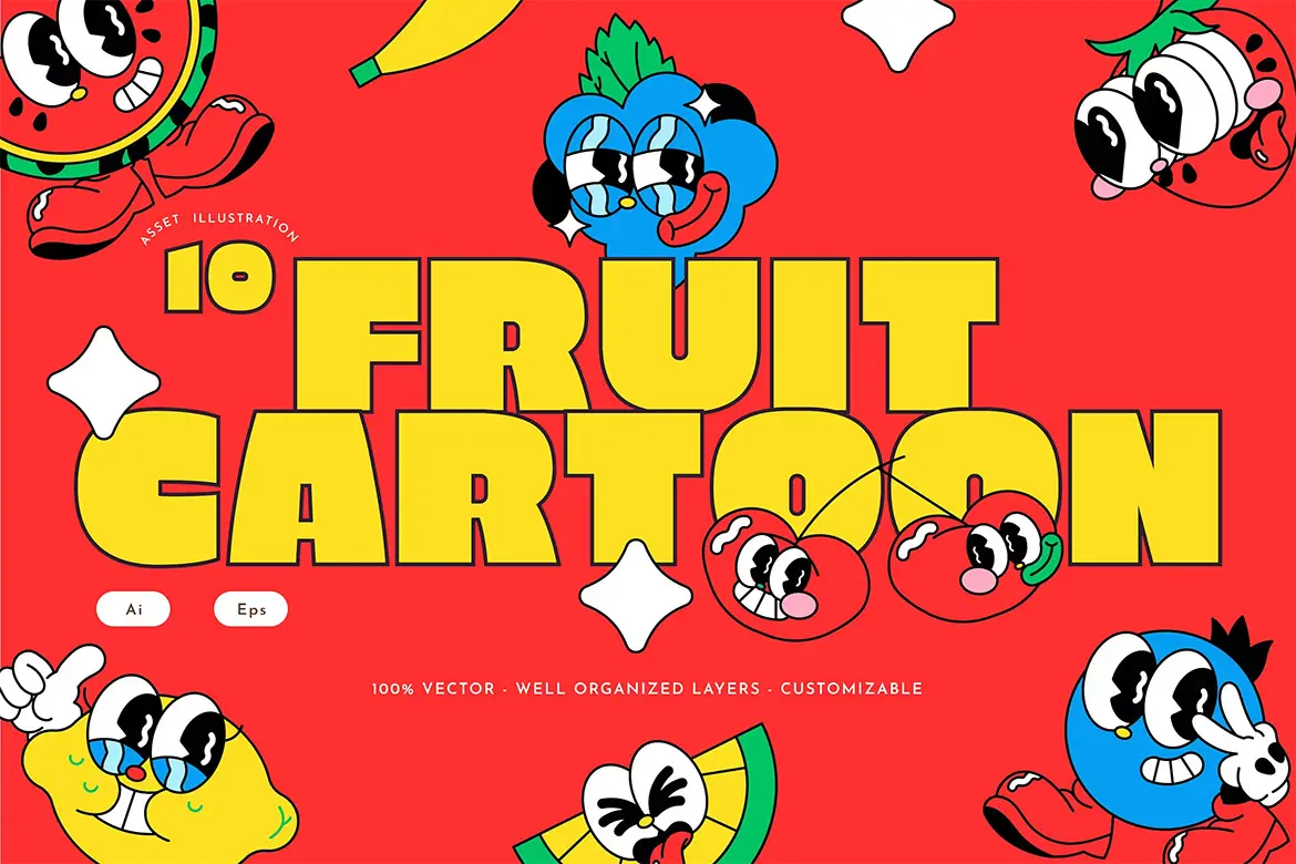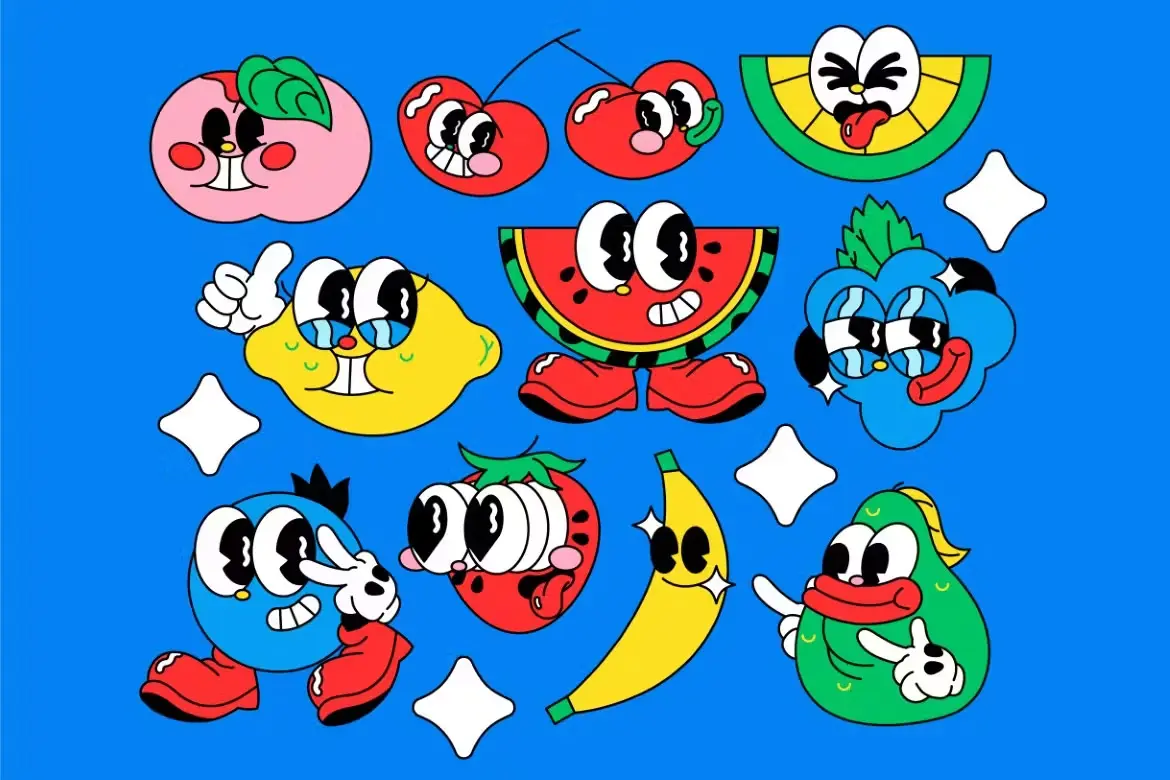Blue Cartoon Fruit Illustration Set 趣味可爱卡通拟人水果形象插图插画矢量设计素材