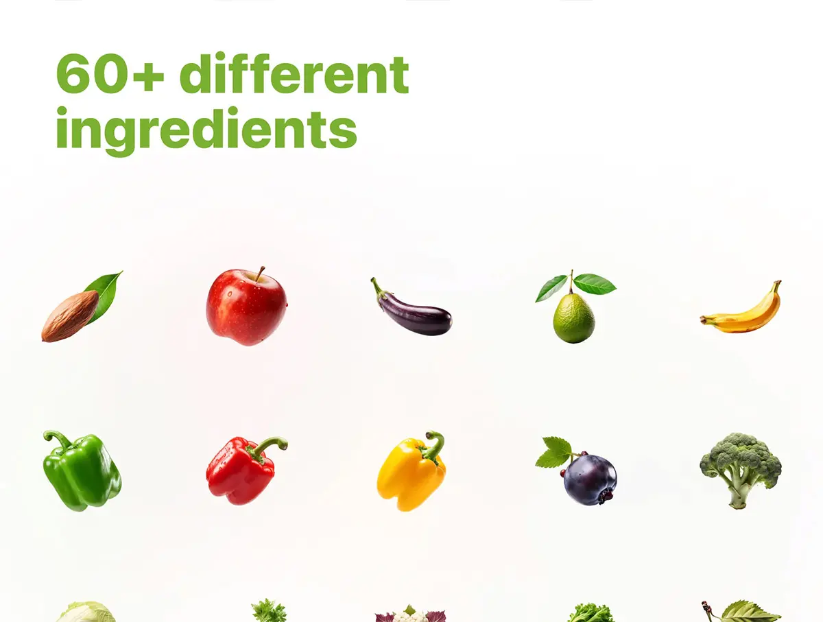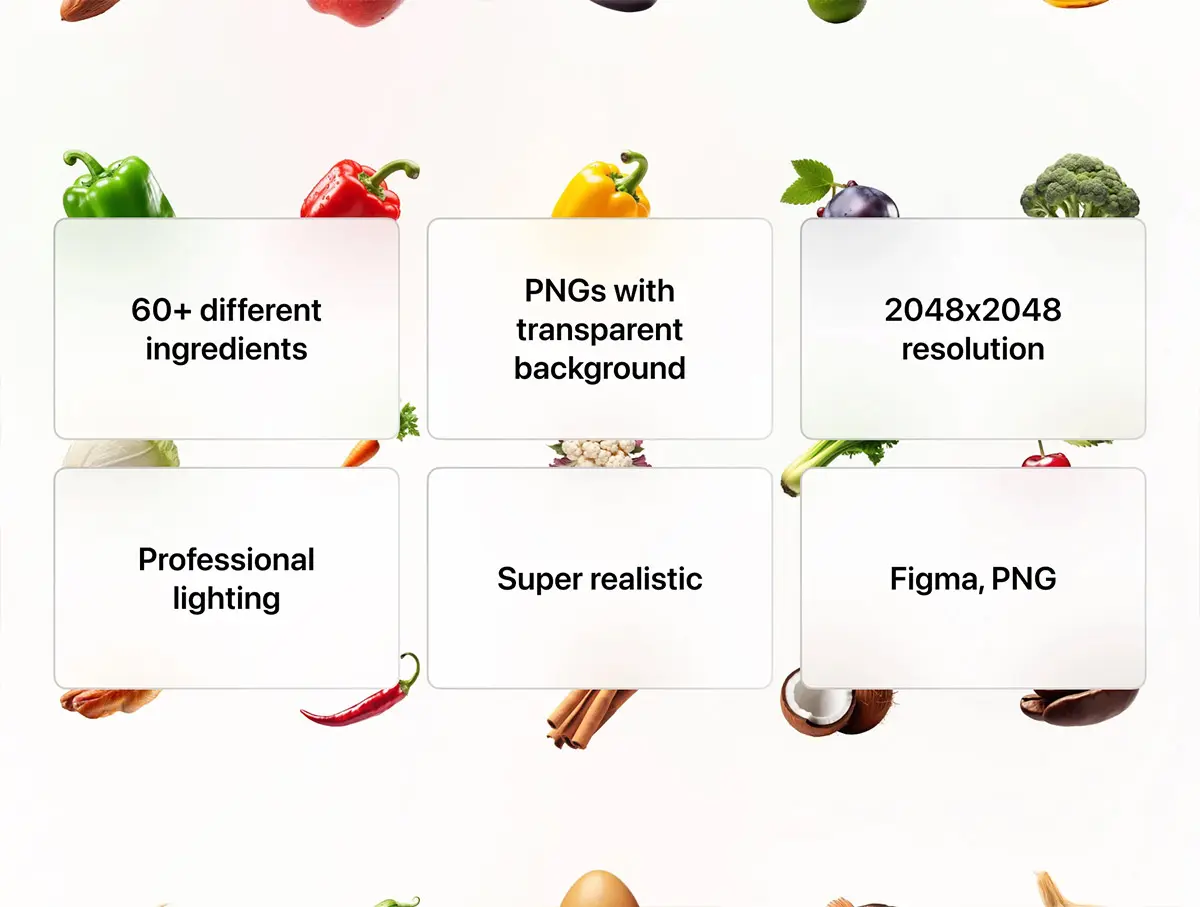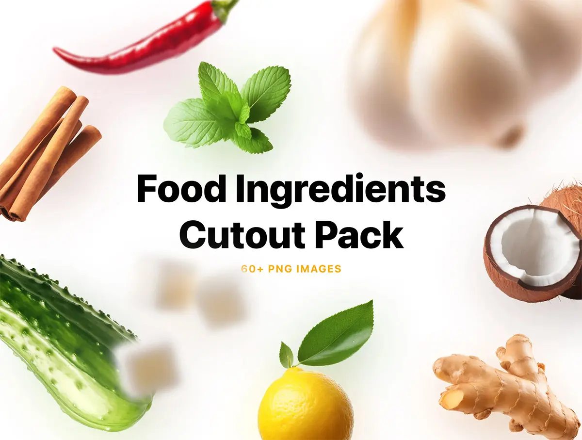 Food Ingredients Cutout Pack 60+高清真实感蔬菜水果食物食品成分配料美食外卖UI设计素材
