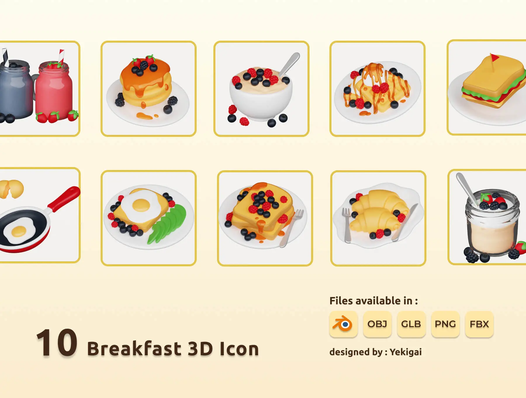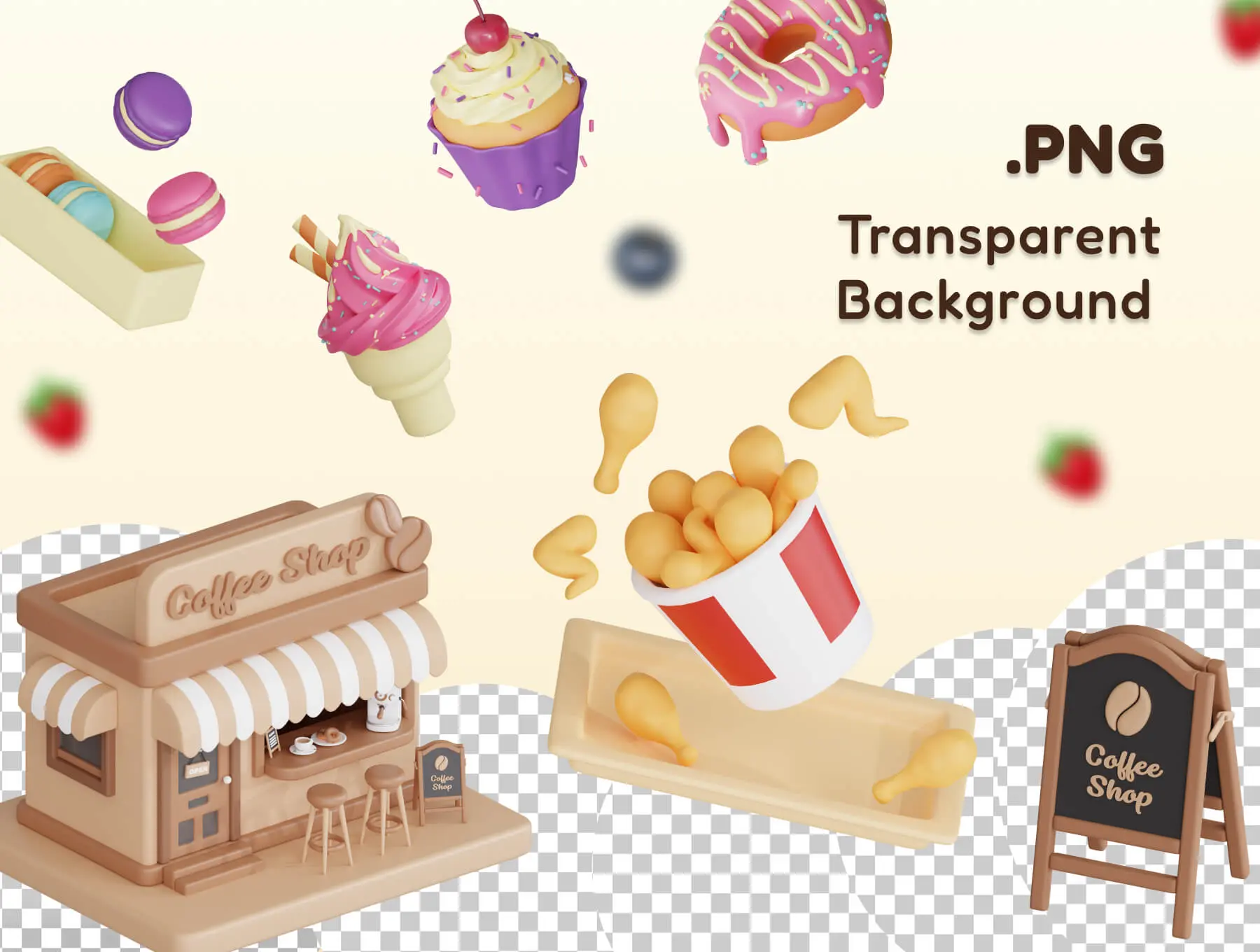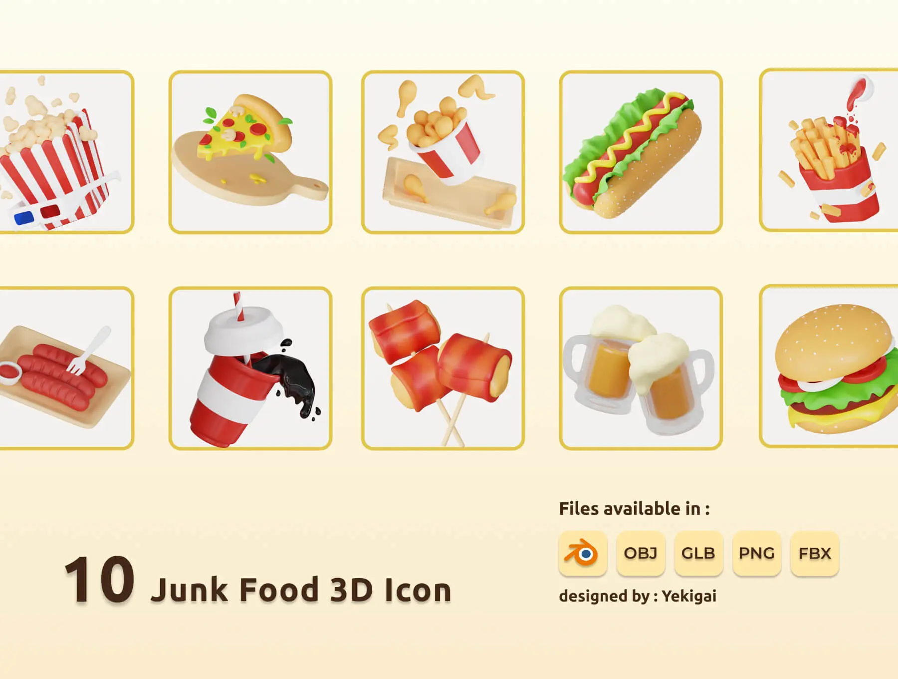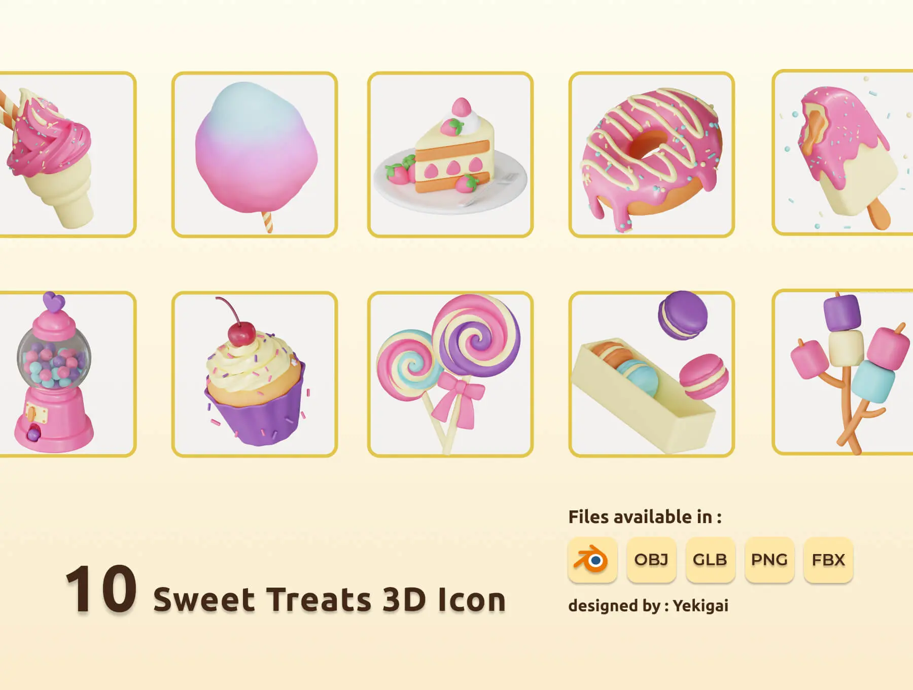 Tasty Temptations Ultimate Food 3D Icon Bundle 食物美食甜品主题插图3D立体图标icon设计素材