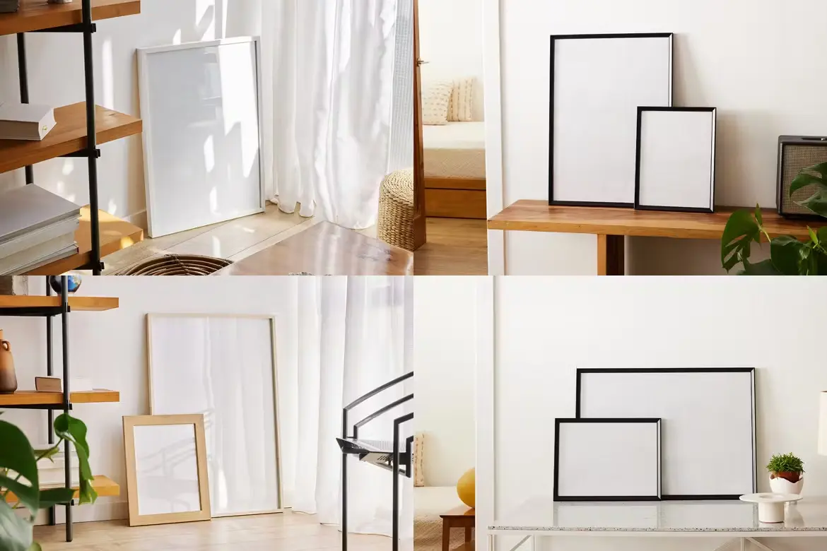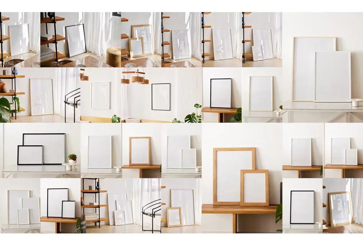 25 Frame Mockup Bundle 25款落地装饰画原木画框实木相框挂画ps样机客厅场景展示效果图