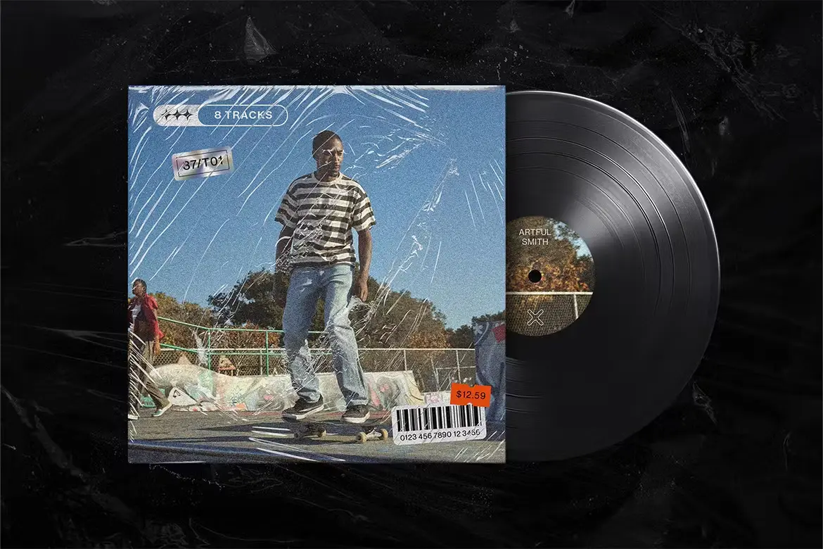 Vinyl Record Mockup Template 塑料透明CD音乐专辑包装薄膜模型展示设计贴图ps样机素材
