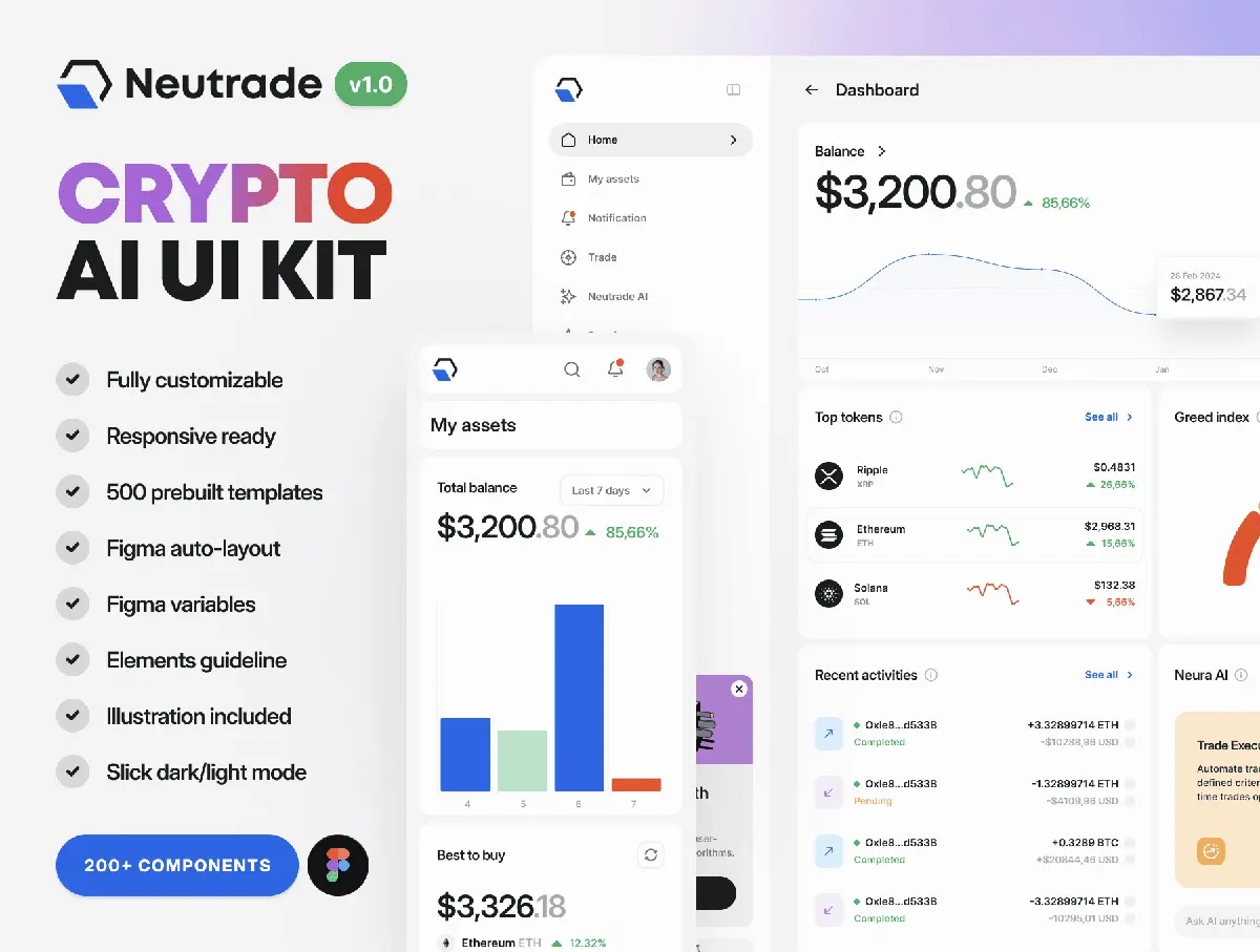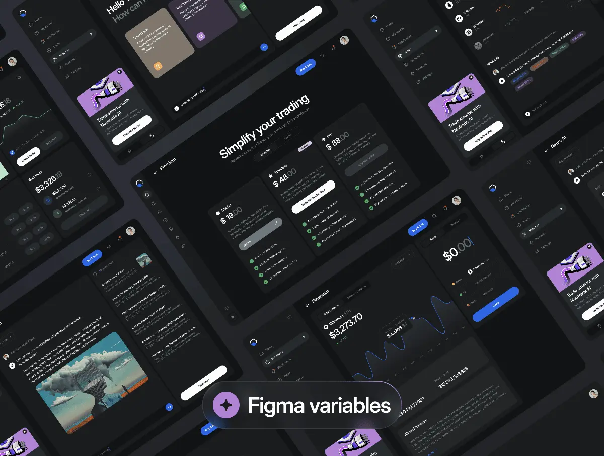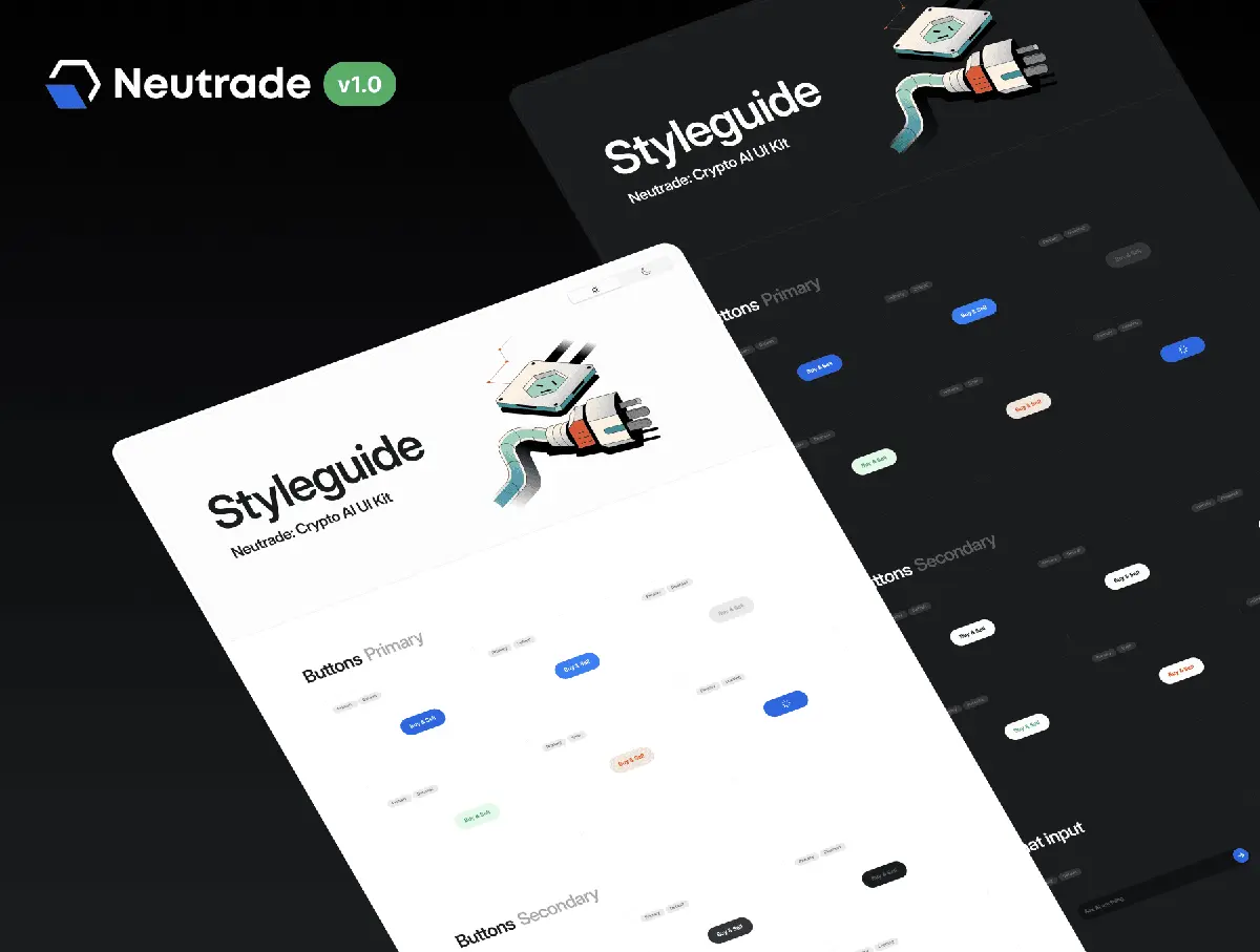 Neutrade – Crypto AI UI Kit 双配色金融财务交易加密货币后台仪表盘数据分析图表ui套件模板