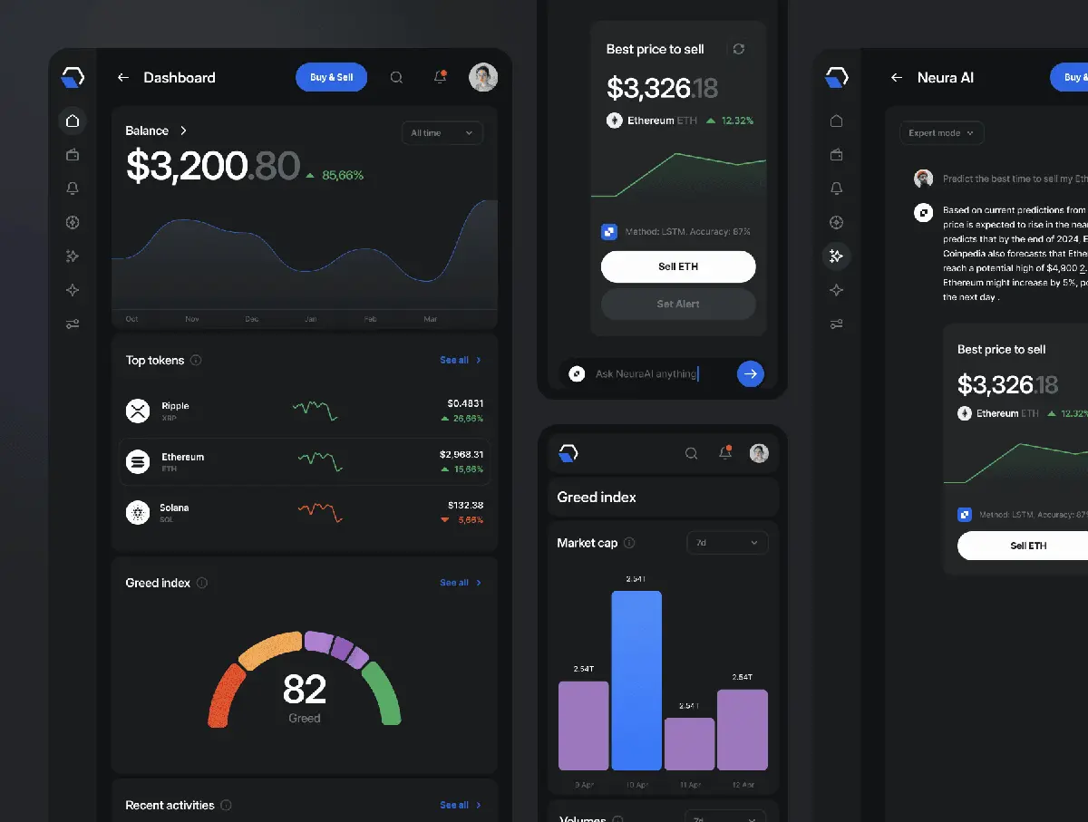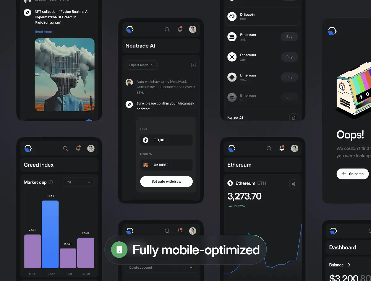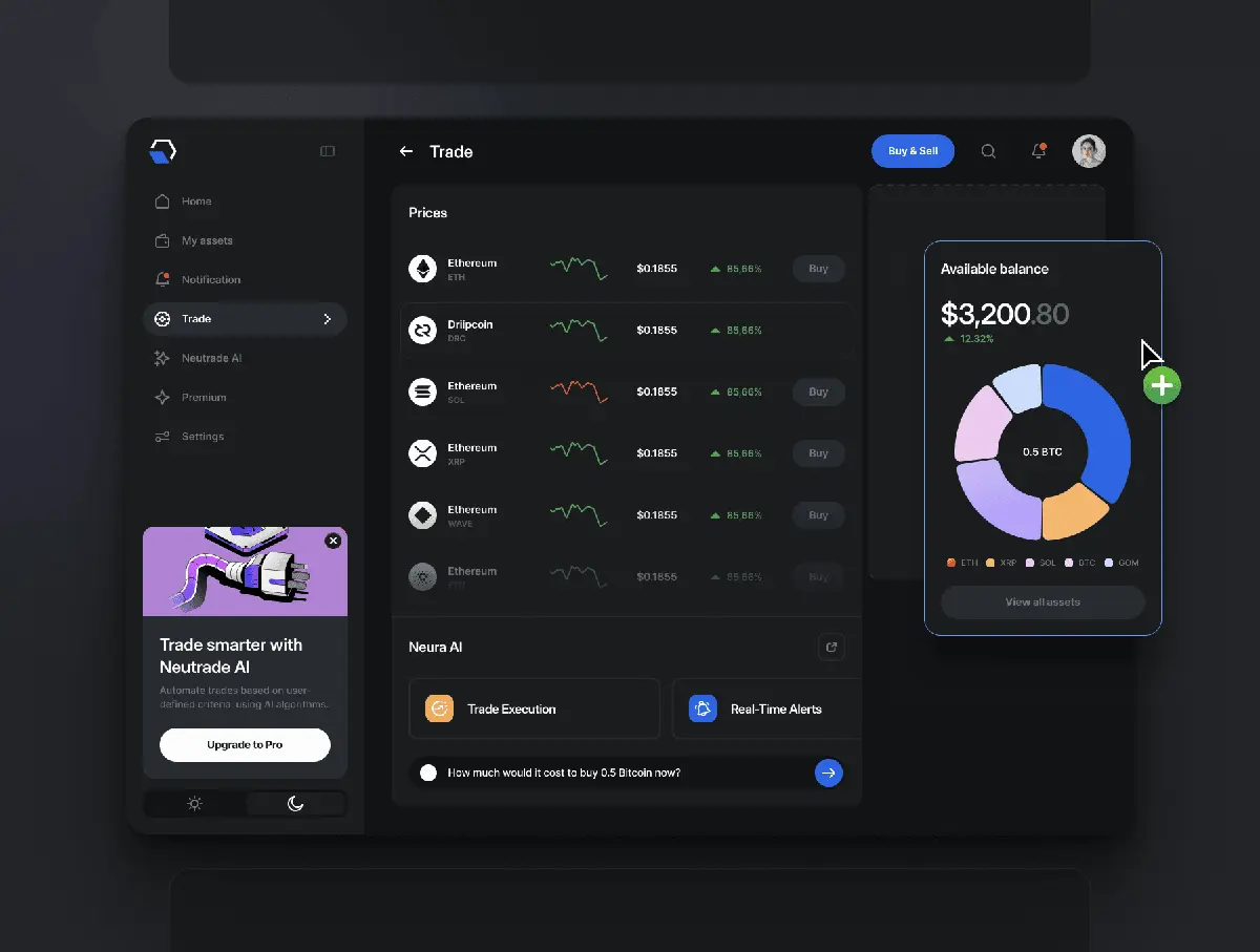 Neutrade – Crypto AI UI Kit 双配色金融财务交易加密货币后台仪表盘数据分析图表ui套件模板