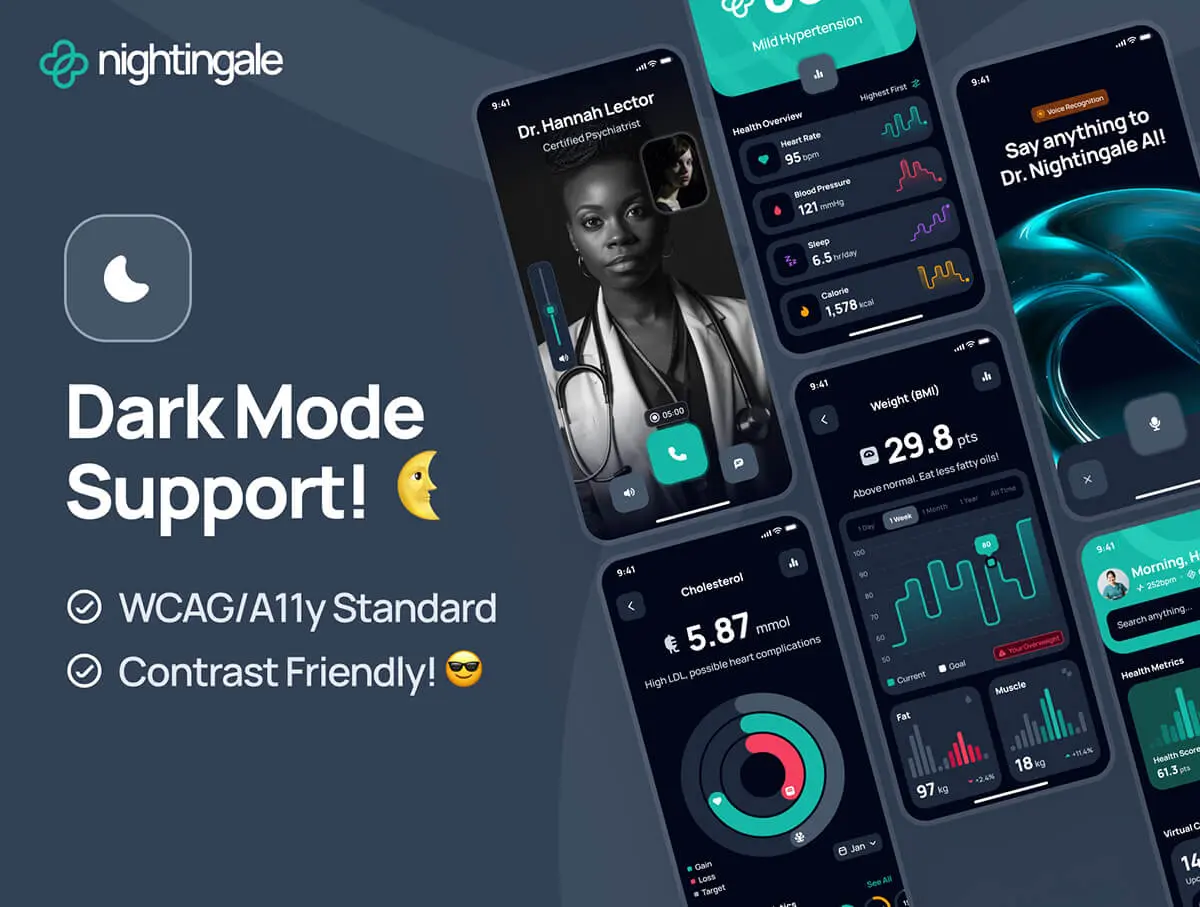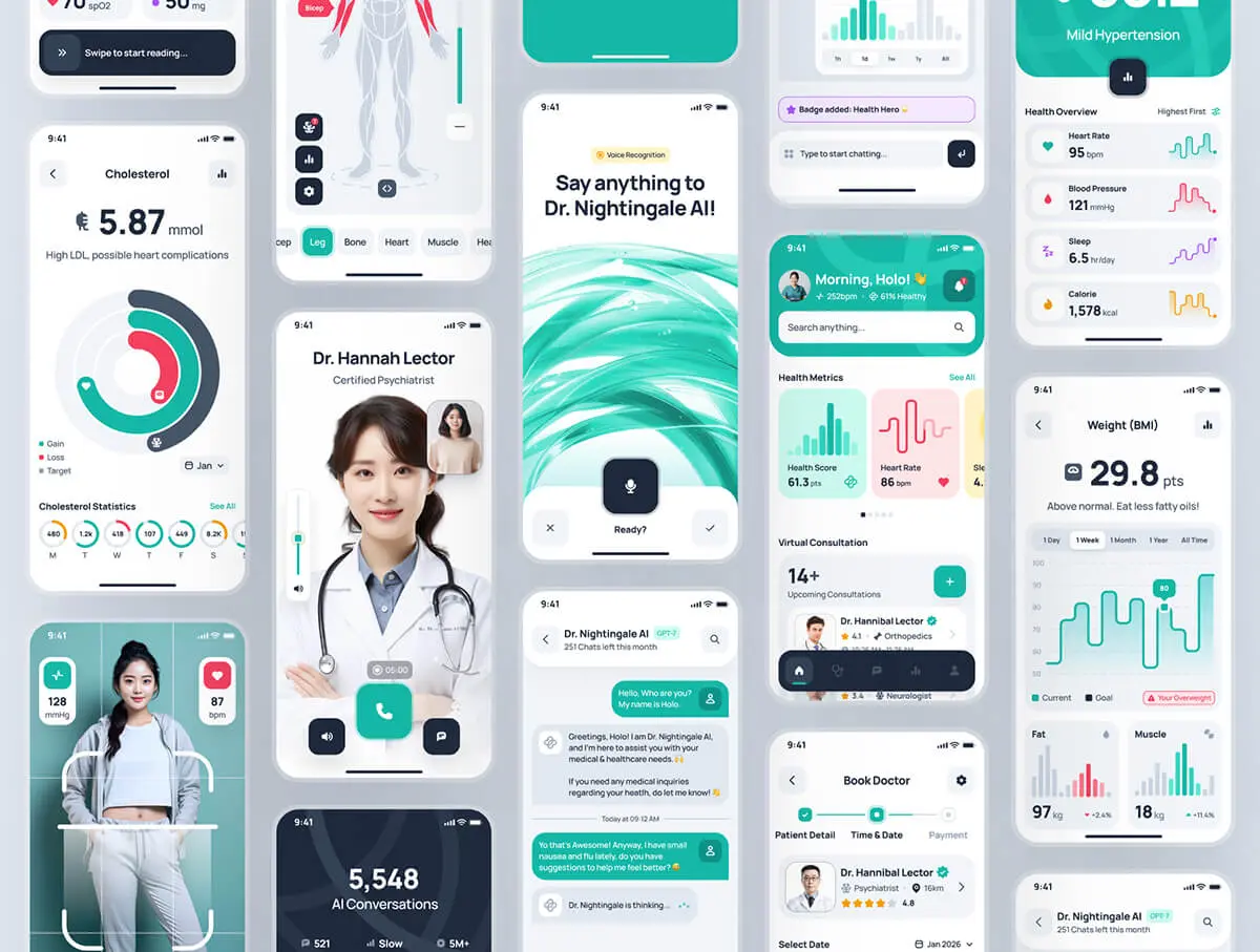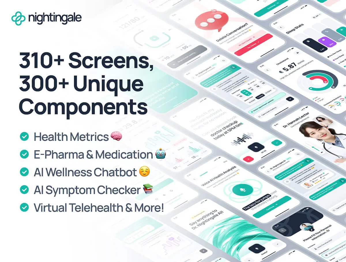 nightingale UI Kit AI Medical & E-Pharmacy App 310屏AI 医疗和电子药房在线门诊健康医疗应用app界面ui设计