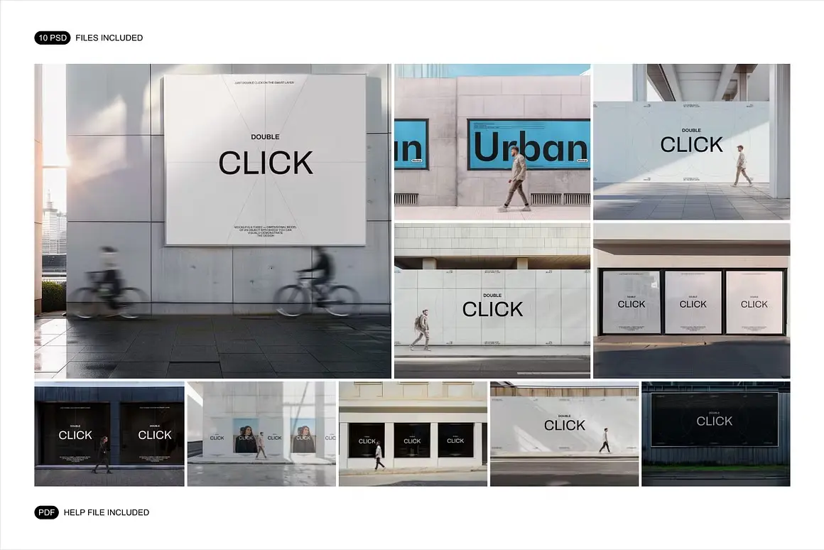Poster and Billboard Mockup Set 10款户外广告牌围挡招贴灯箱海报设计ps样机素材街拍展示效果图
