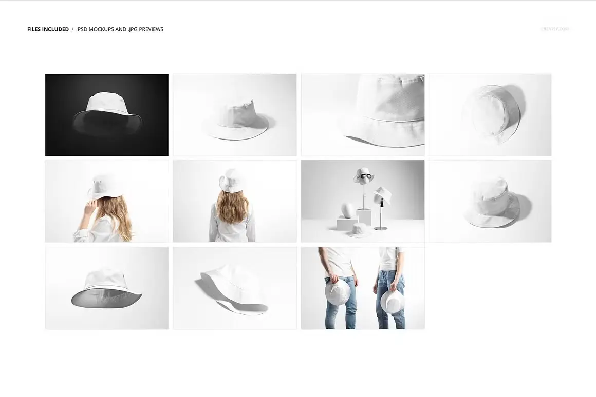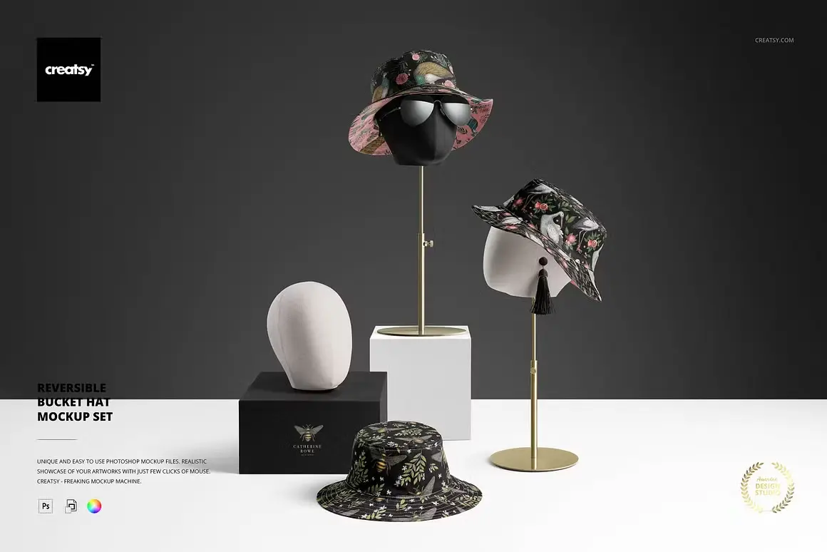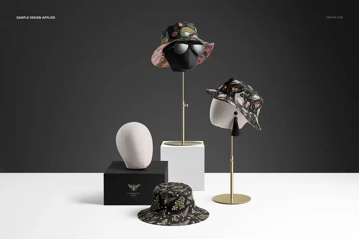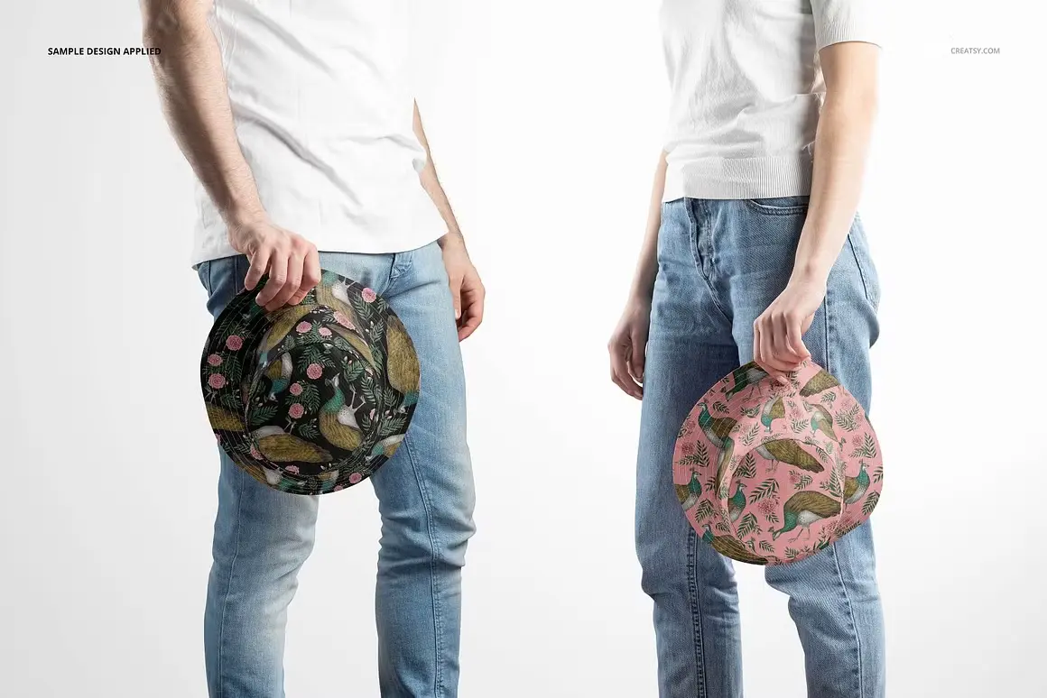 Reversible Bucket Hat Mockup Set 11款户外双面渔夫帽遮阳帽子印花图案设计ps样机素材展示效果图