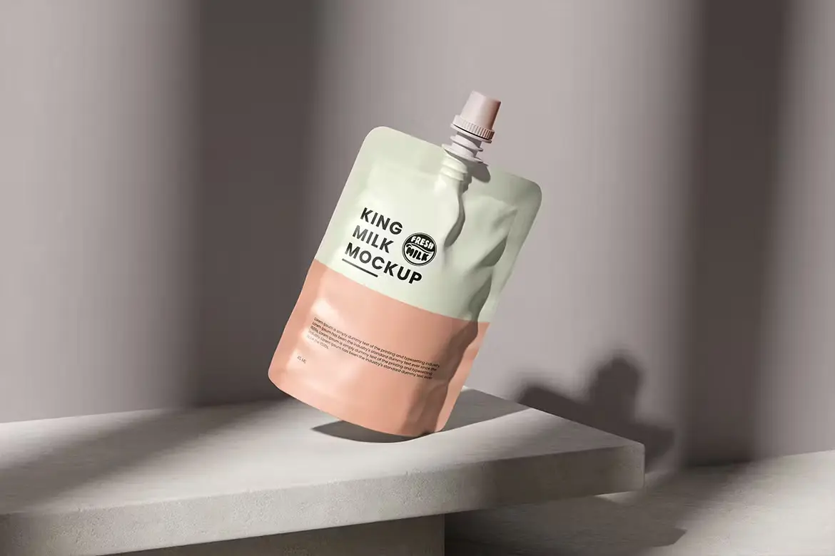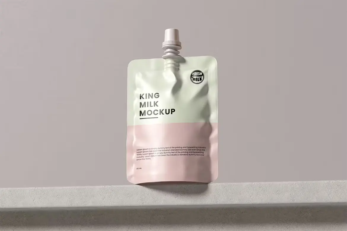 Milk Pouch Mockup 带吸嘴的果冻果汁饮料自立袋模型品牌包装设计贴图ps样机素材