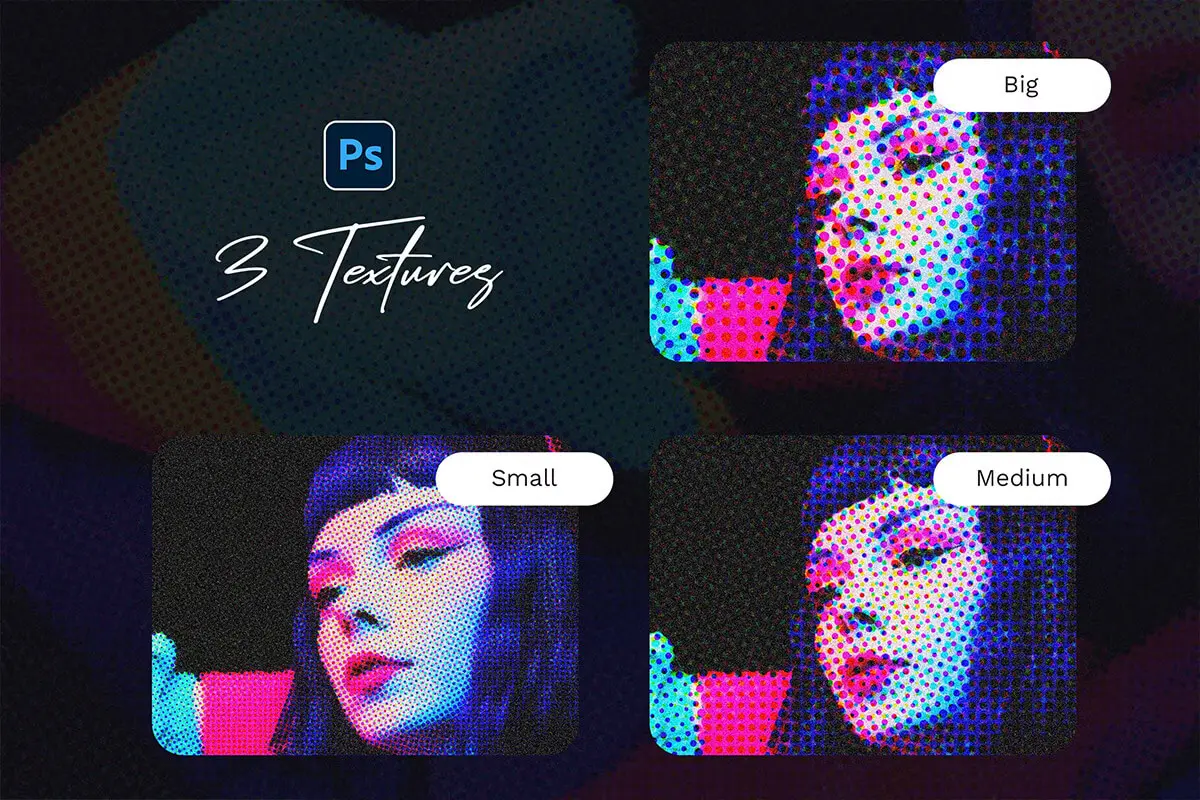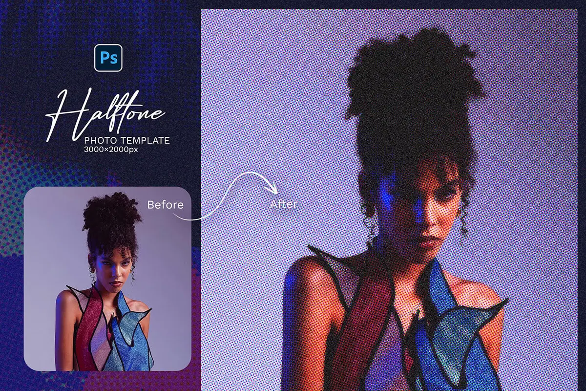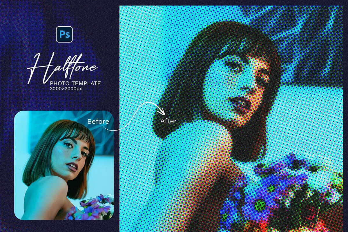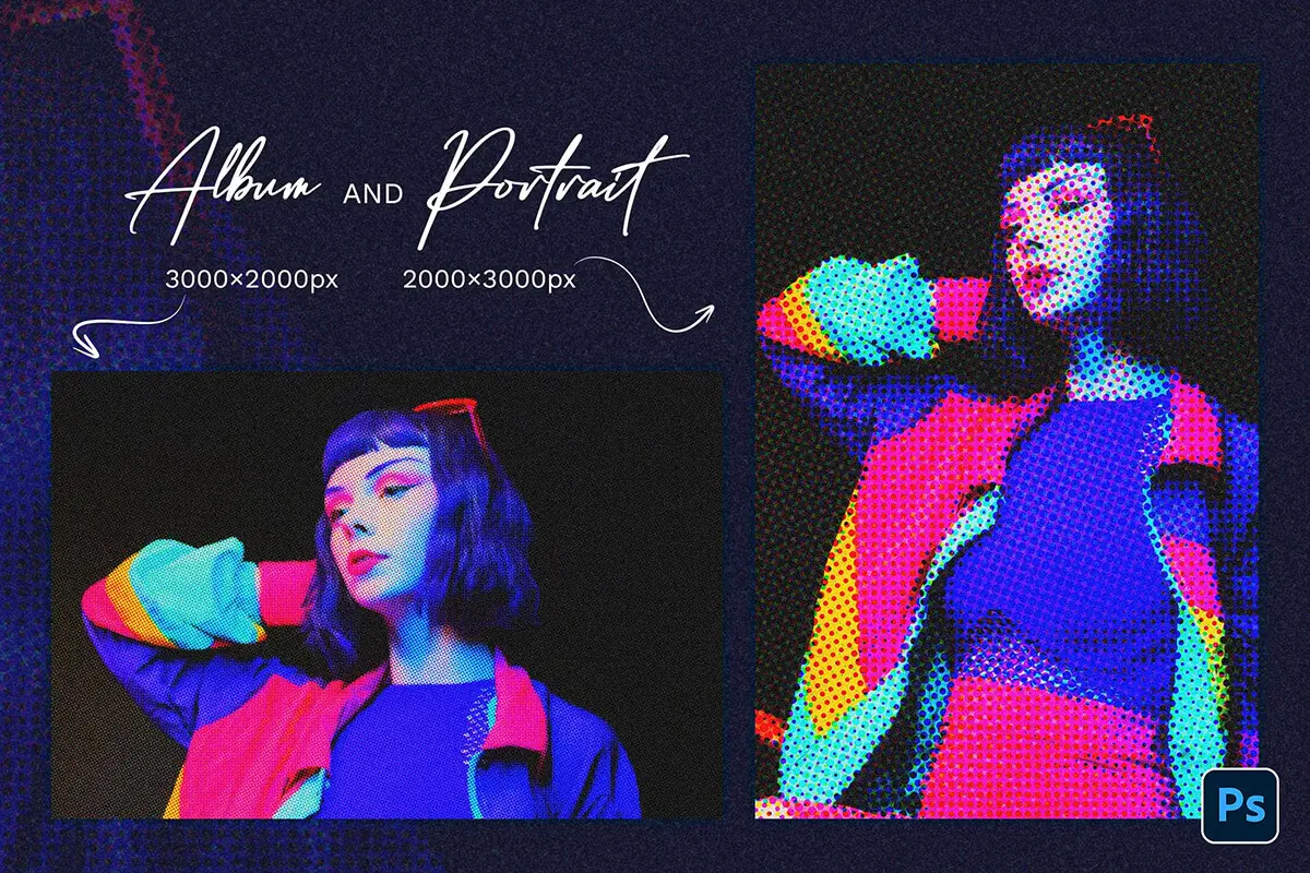 Halftone Photo Template 潮流复古网眼Halftone半调颗粒图片照片滤镜ps样机素材特效模板