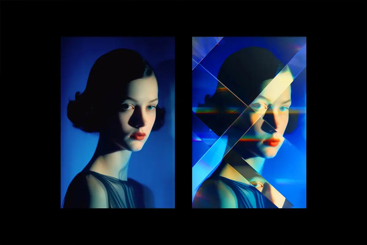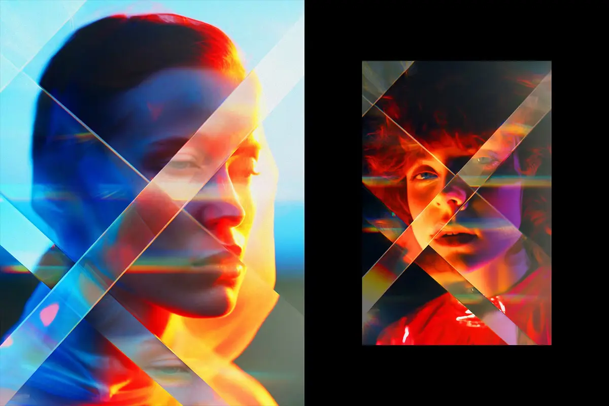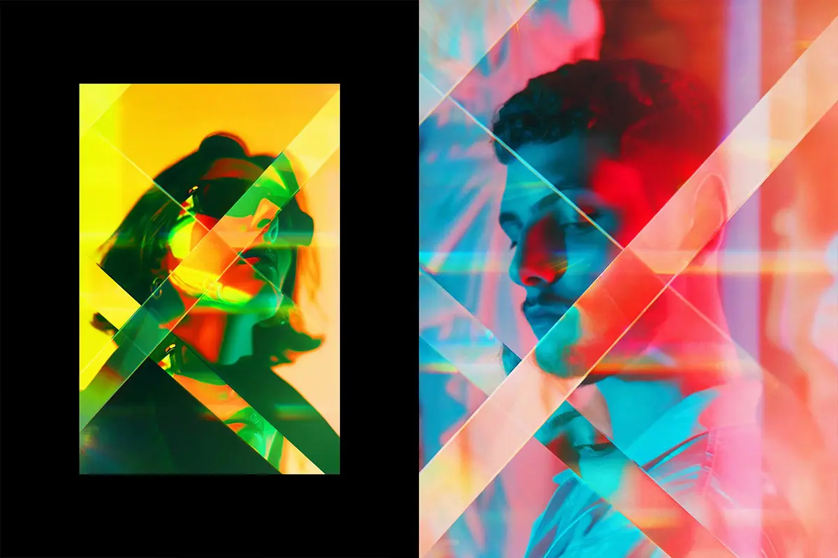 Prism Refraction Photo Effect 潮流艺术玻璃棱镜折射晶体反射几何光束图像照片滤镜ps特效模板