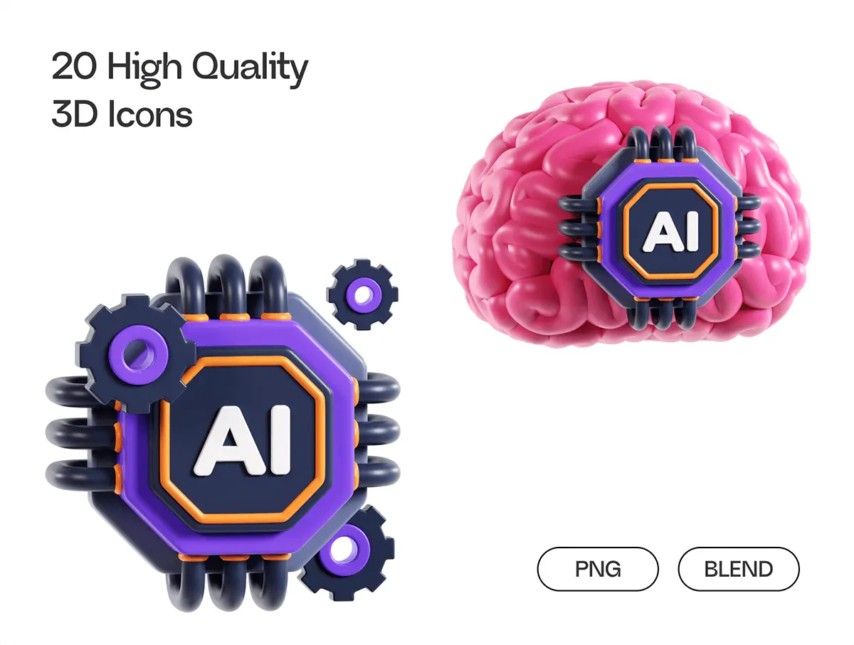 Artificial Inteligence 3D Icons 20款3D立体AI人工智能科技芯片算法系统插图插画webp免抠图标素材