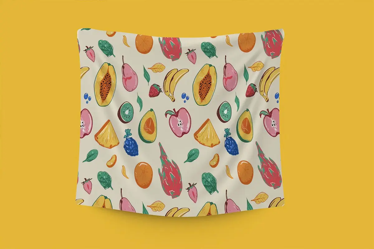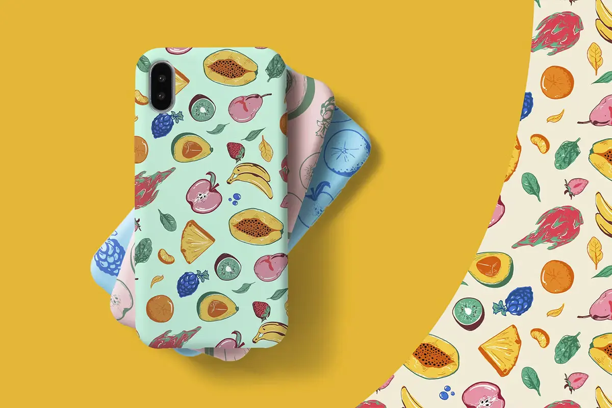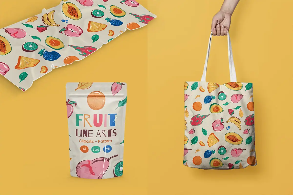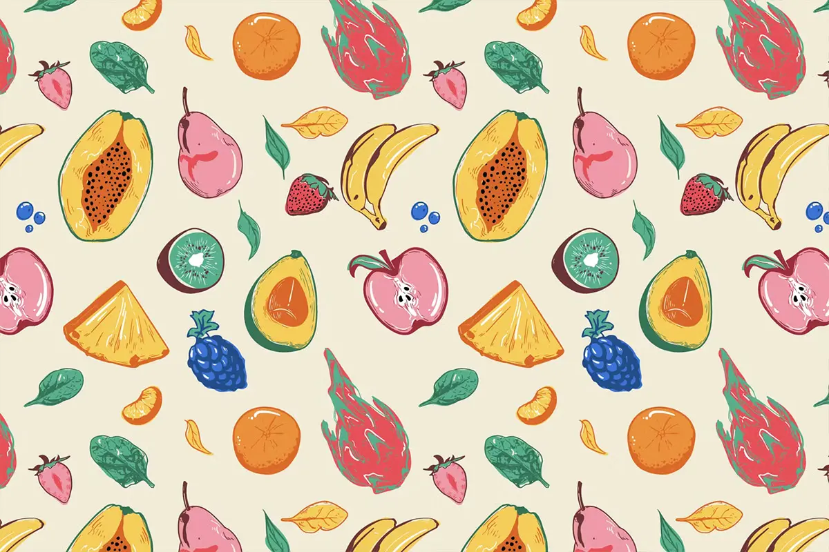 Seamless Fruit Line Art Pattern 手绘艺术水果无缝图案图片矢量设计素材
