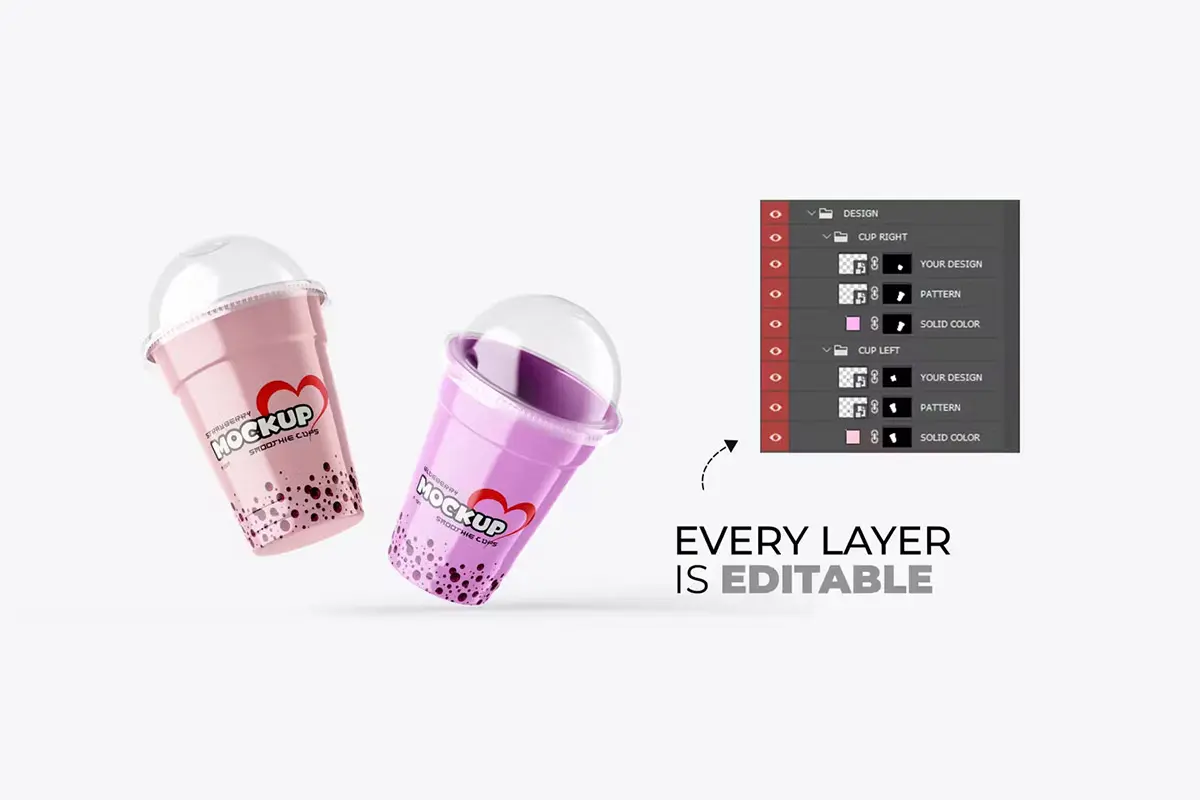 Smoothie Plastic Juice Cup PSD Mockup 一次性透明果汁饮料杯模型杯身设计贴图ps包装样机素材模板