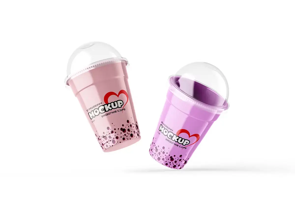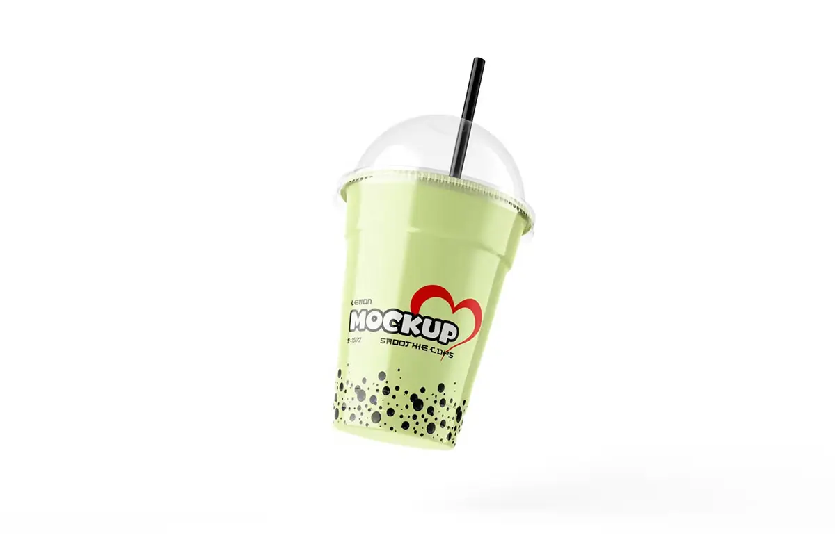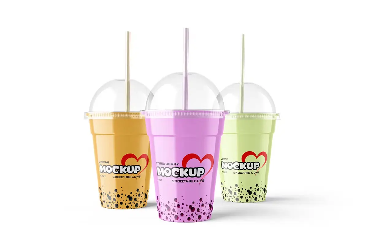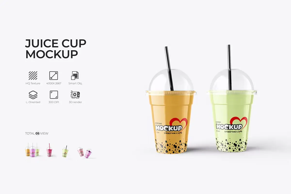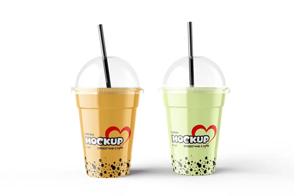 Smoothie Plastic Juice Cup PSD Mockup 一次性透明果汁饮料杯模型杯身设计贴图ps包装样机素材模板
