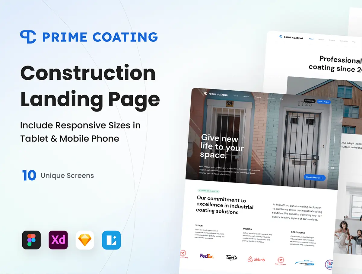 Prime Coating – Construction Landing Page 适用于专业公司的多用途登陆页面 UI 套件