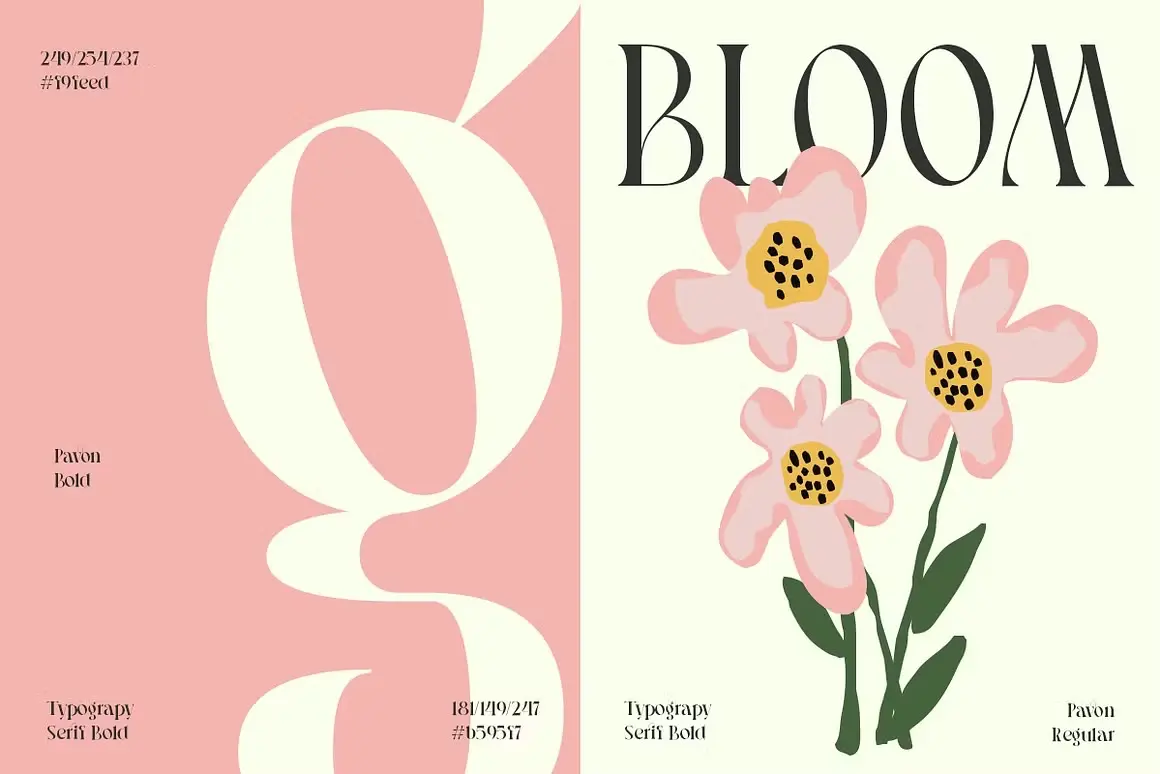 Pavon – Tropical Display Family 6字重Pavon复古优雅潮流艺术装饰海报封面标题衬线英文字体家族