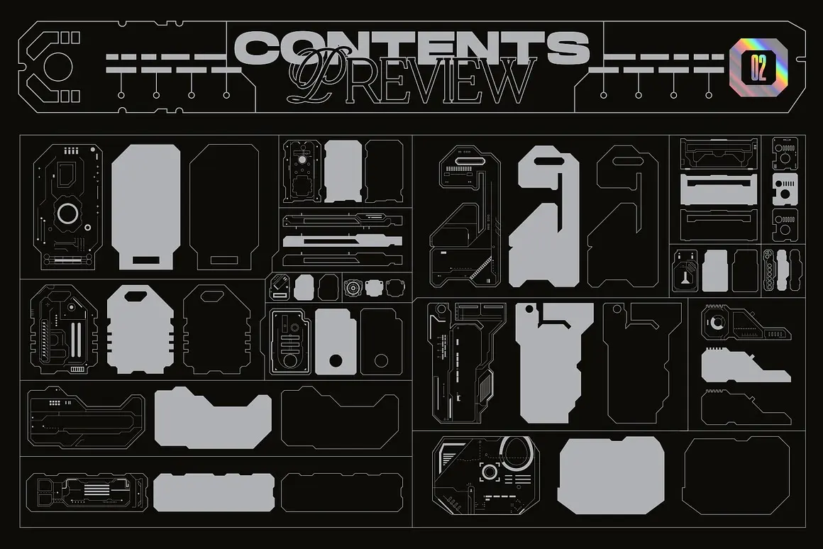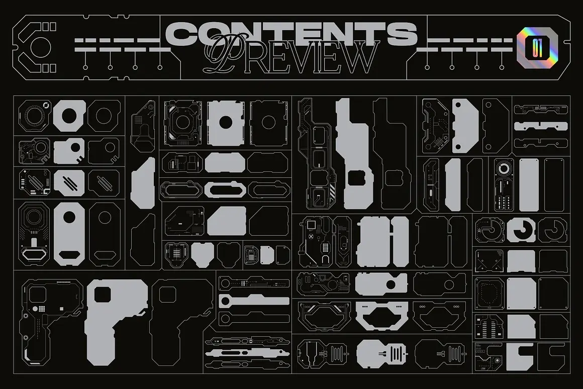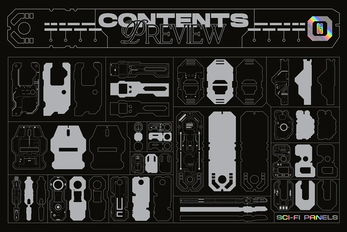 Sci-Fi Panels Vector Pack 未来科幻赛博朋克机能科技人工智能面板轮廓几何图形ai设计素材