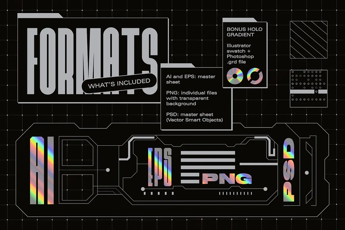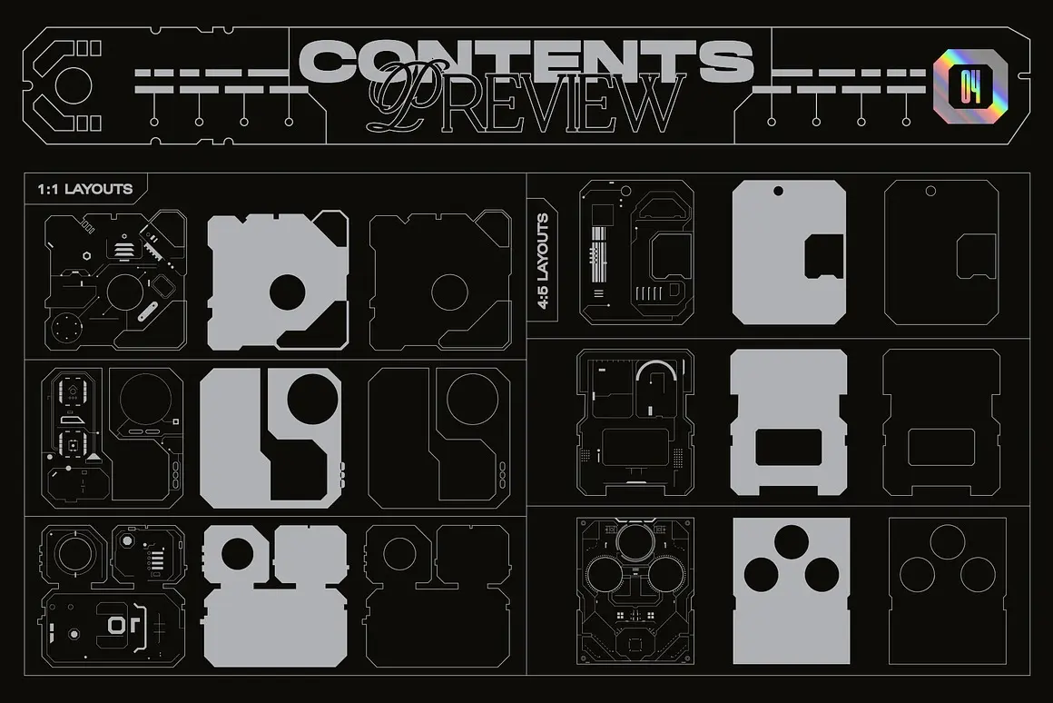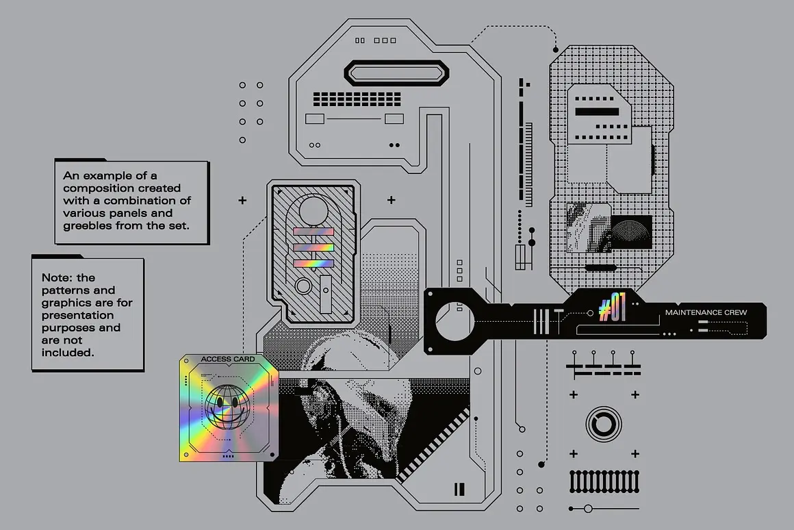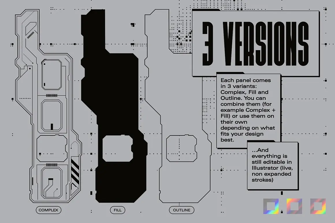 Sci-Fi Panels Vector Pack 未来科幻赛博朋克机能科技人工智能面板轮廓几何图形ai设计素材