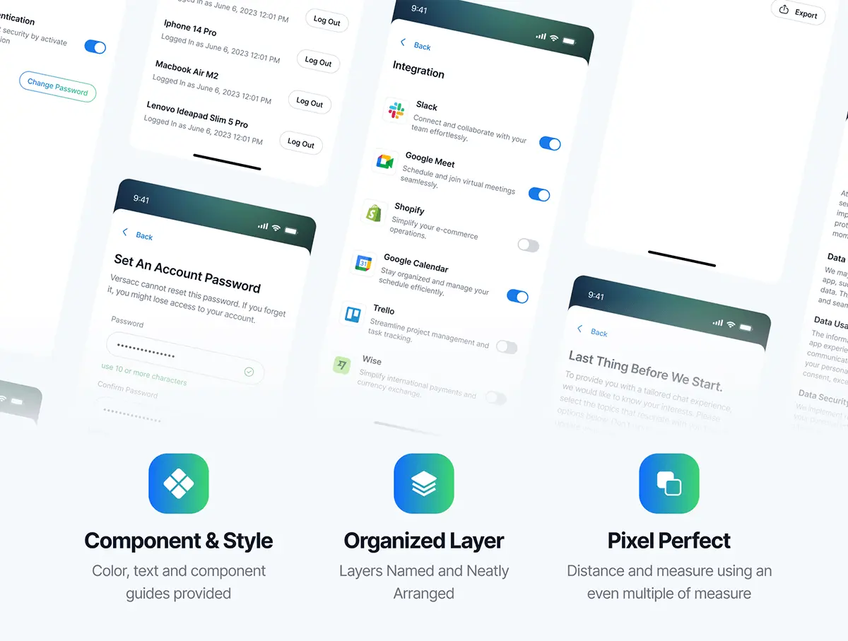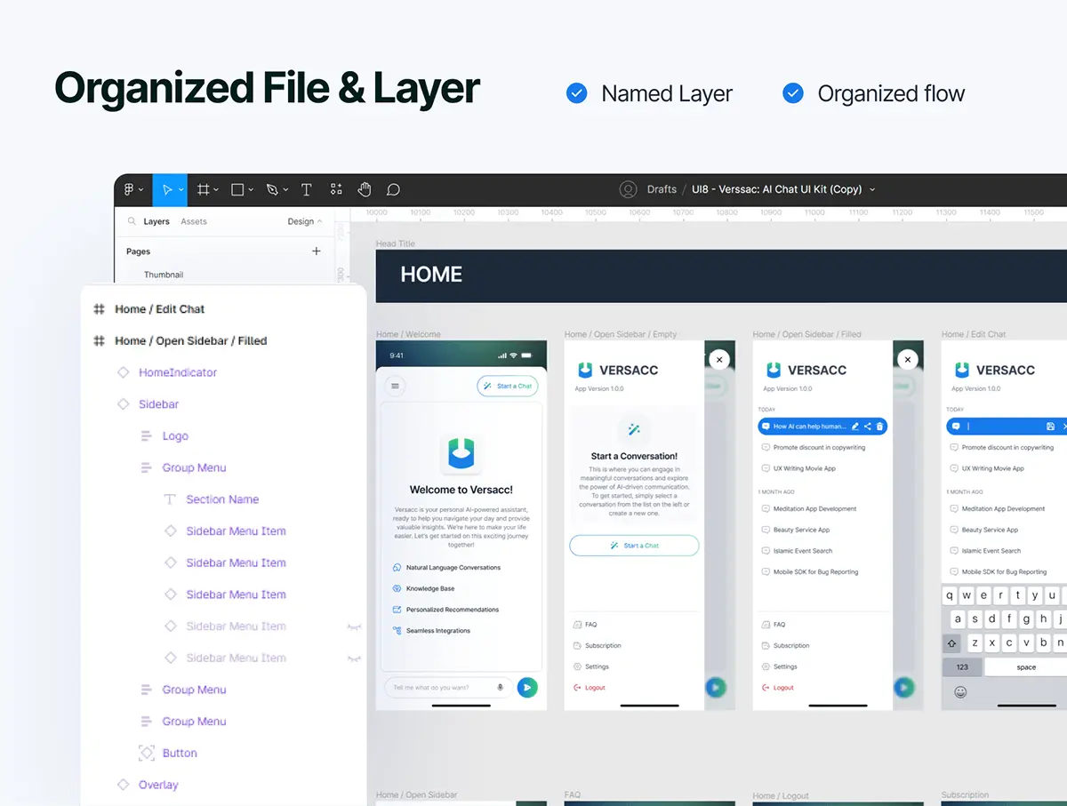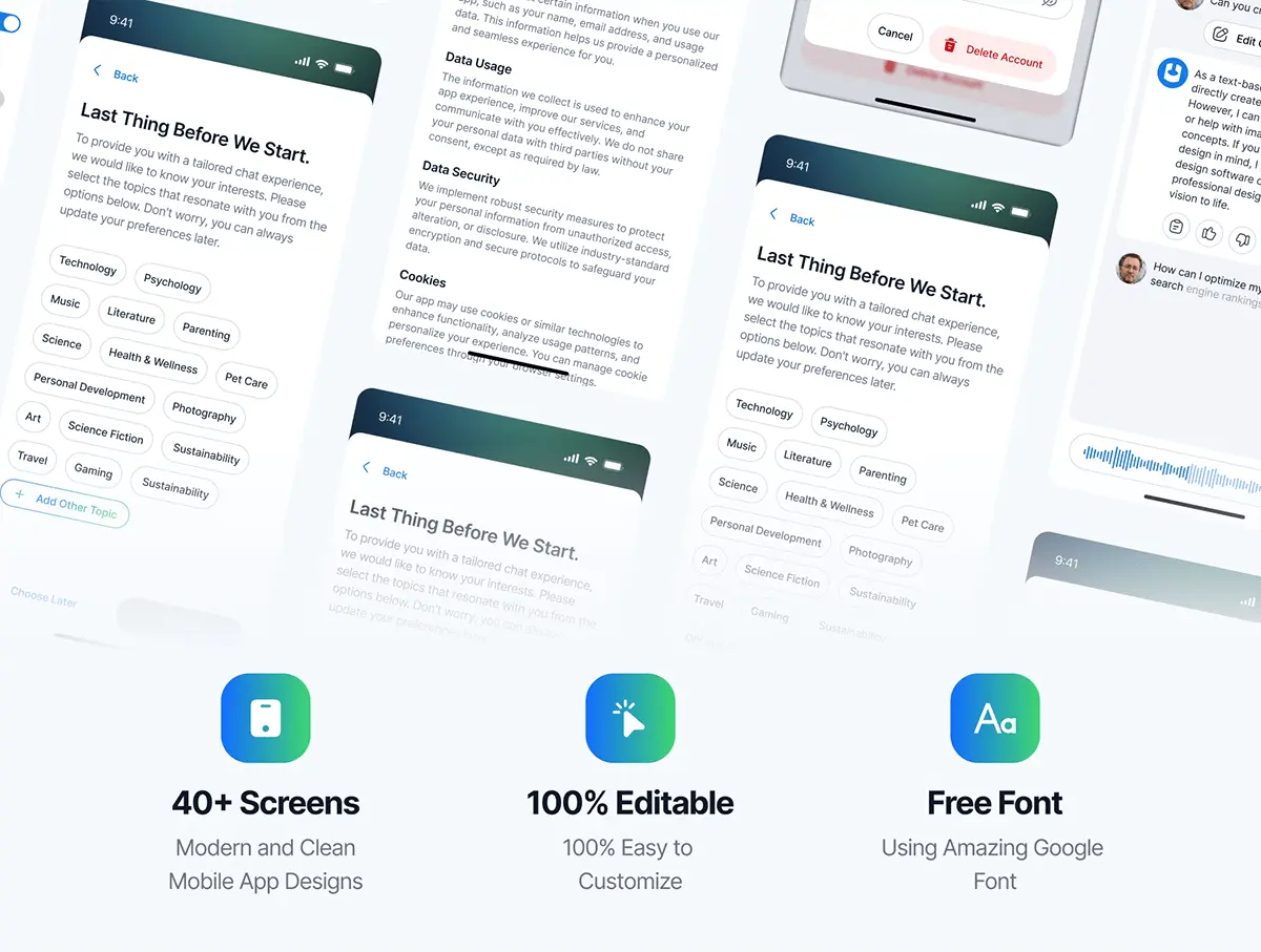 Versacc AI Chat Mobile App UI KIT 50屏移动手机Ai人工智能机器人聊天对话问答用户界面app设计ui套件模板