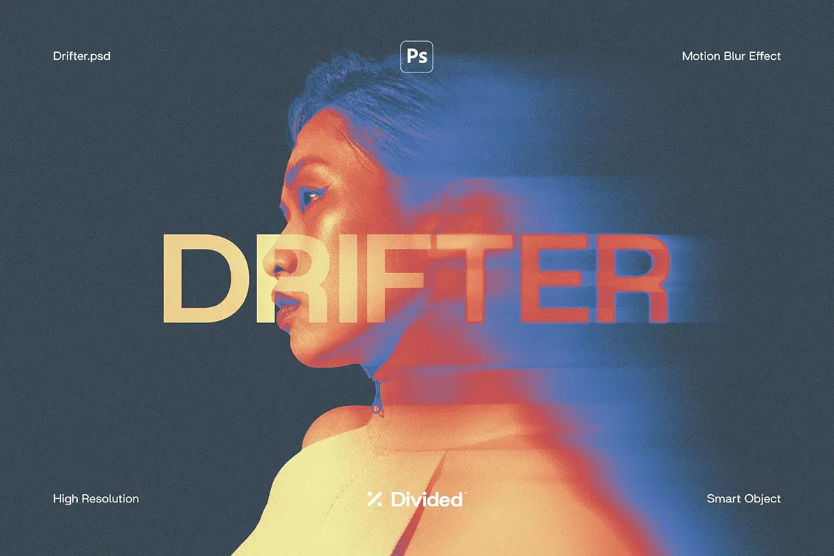 Drifter Motion Blur Effect 质感潮流复古动感模糊拖影人物肖像图像照片滤镜ps样机特效模板