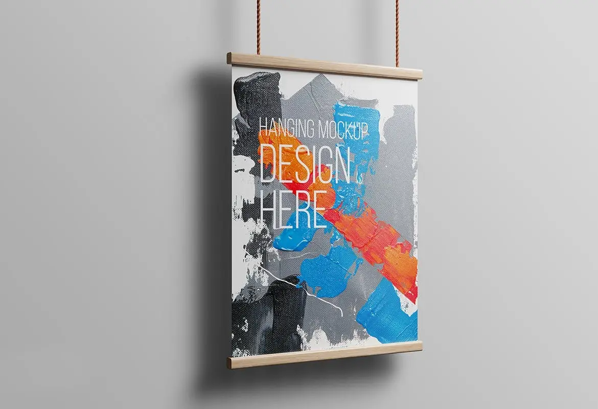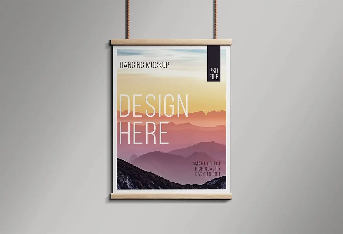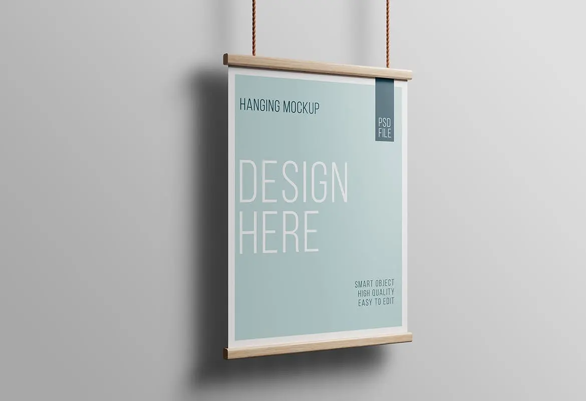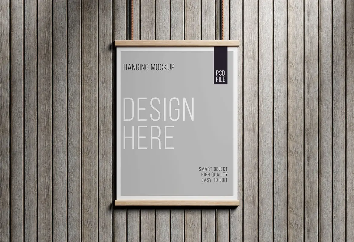 Hanging Poster Mockup 2款挂壁悬挂海报木质边框框架模型展示设计贴图psd样机素材