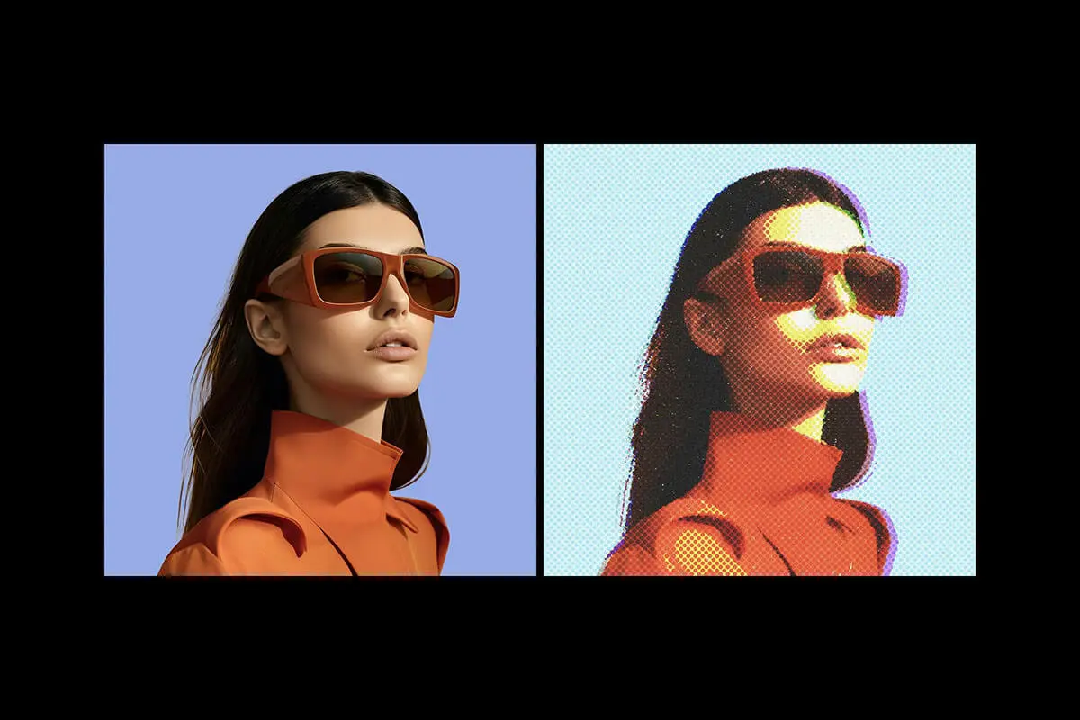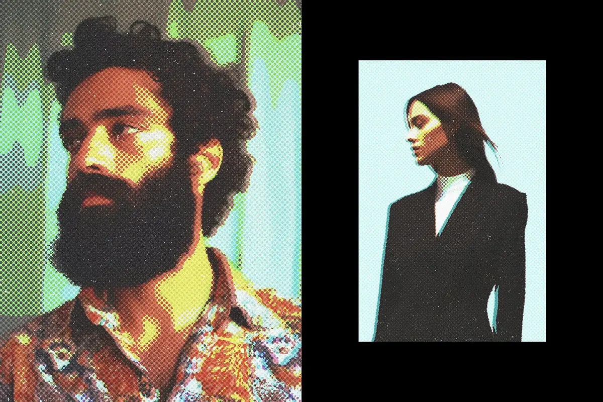 Retro Halftone Dots Photo Effect 潮流复古褪色点阵怀旧低保真半调肌理图像照片滤镜ps样机特效模板